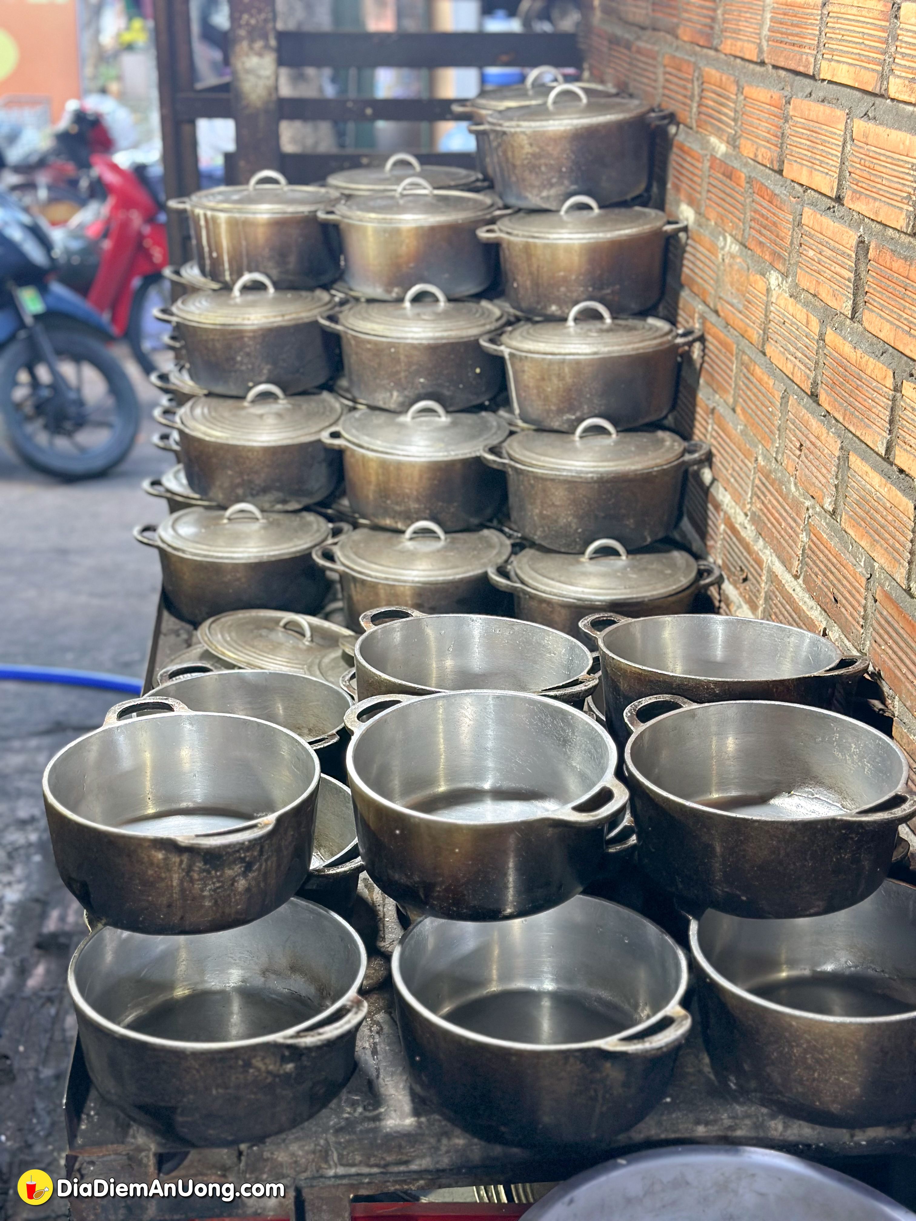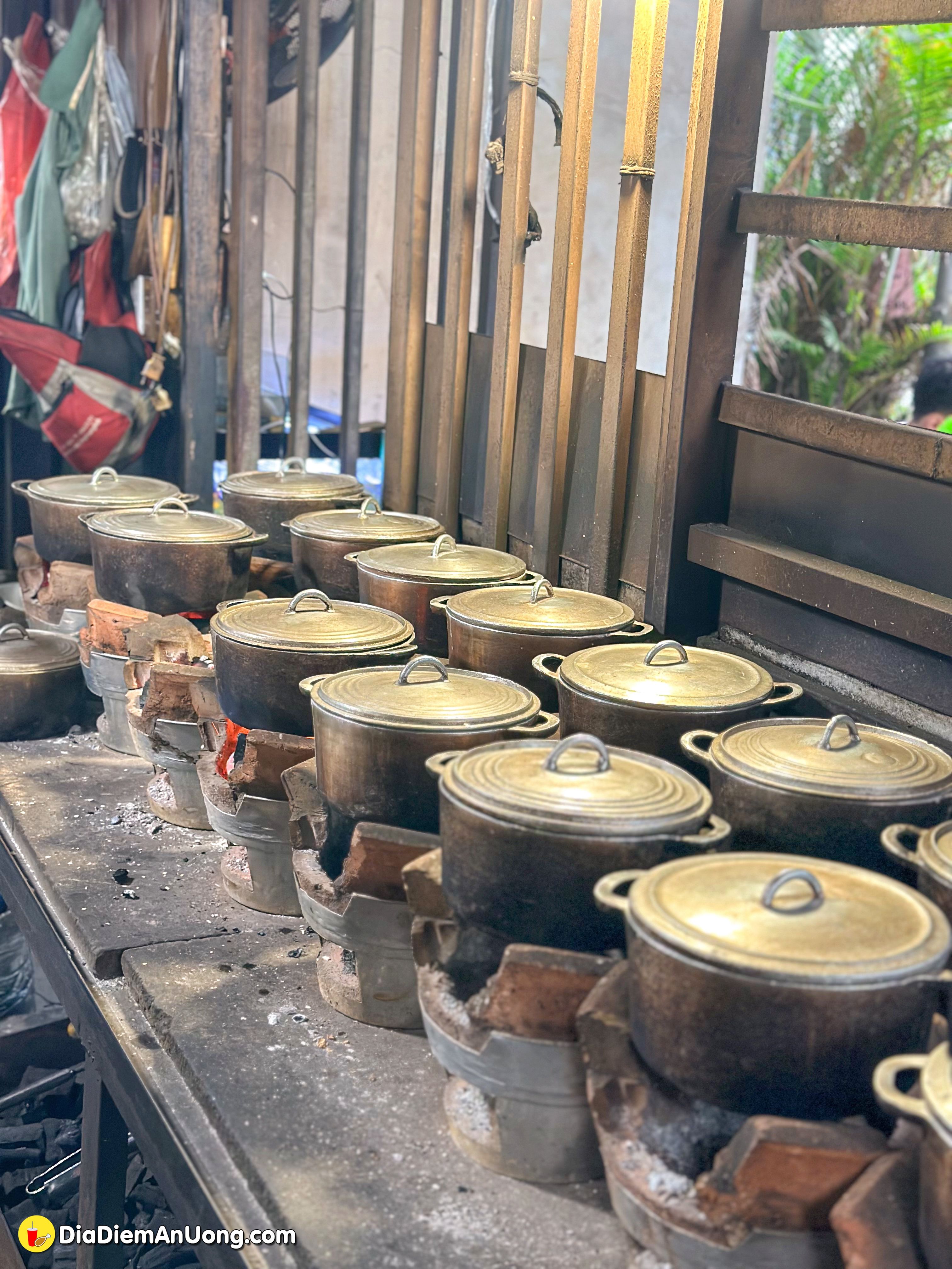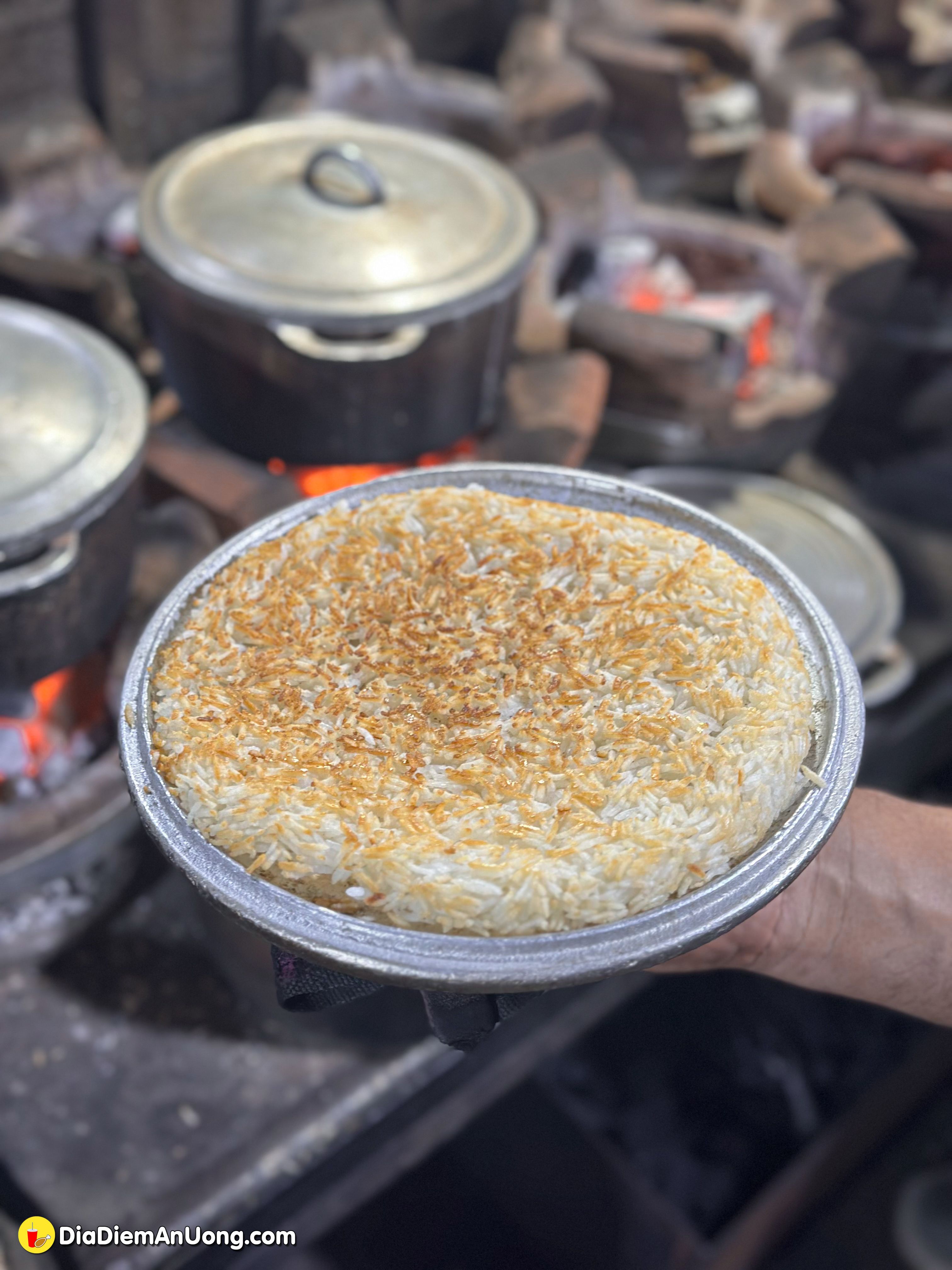 Không phải kiểu cơm cháy công nghiệp đâu nha, cơm ở đây được nấu thủ công trong từng nồi nhỏ để tạo lớp cháy vàng giòn, thơm lừng mùi gạo mới.