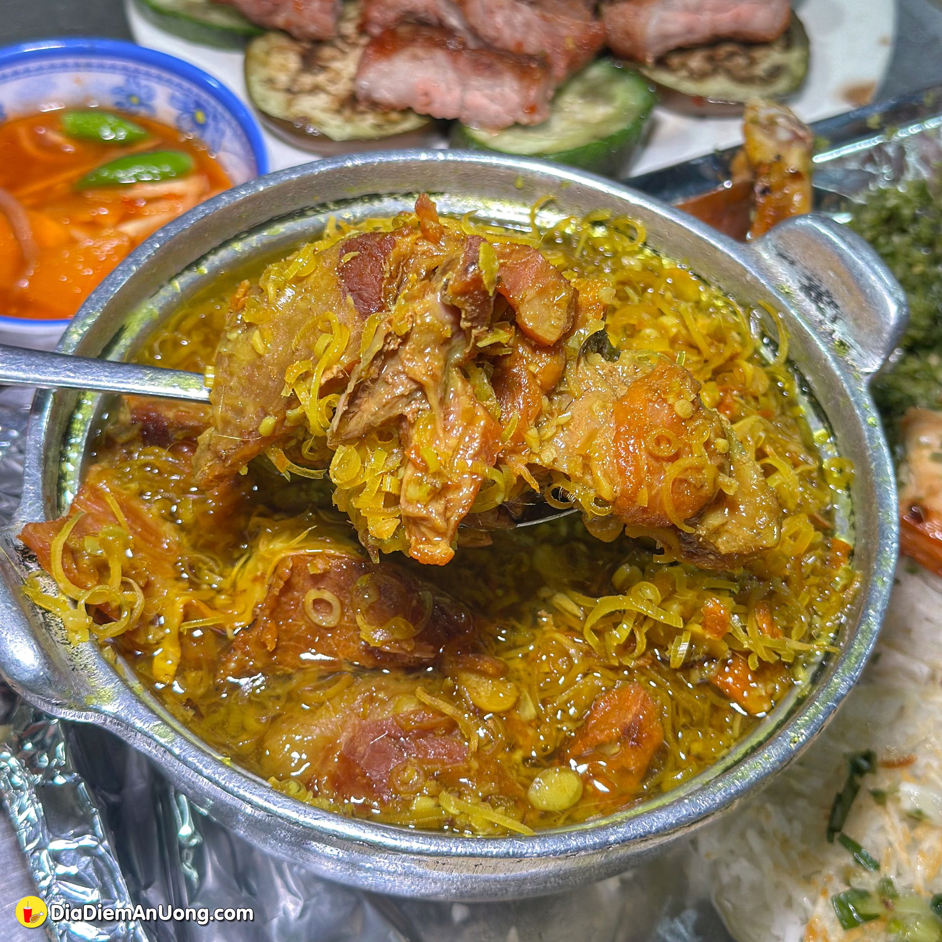 Khi khách gọi quán mới bắt đầu nấu nên cơm cháy lúc nào cũng vàng giòn, nóng hổi. Trên mặt còn có lớp mỡ hành ngon đúng điệu.
