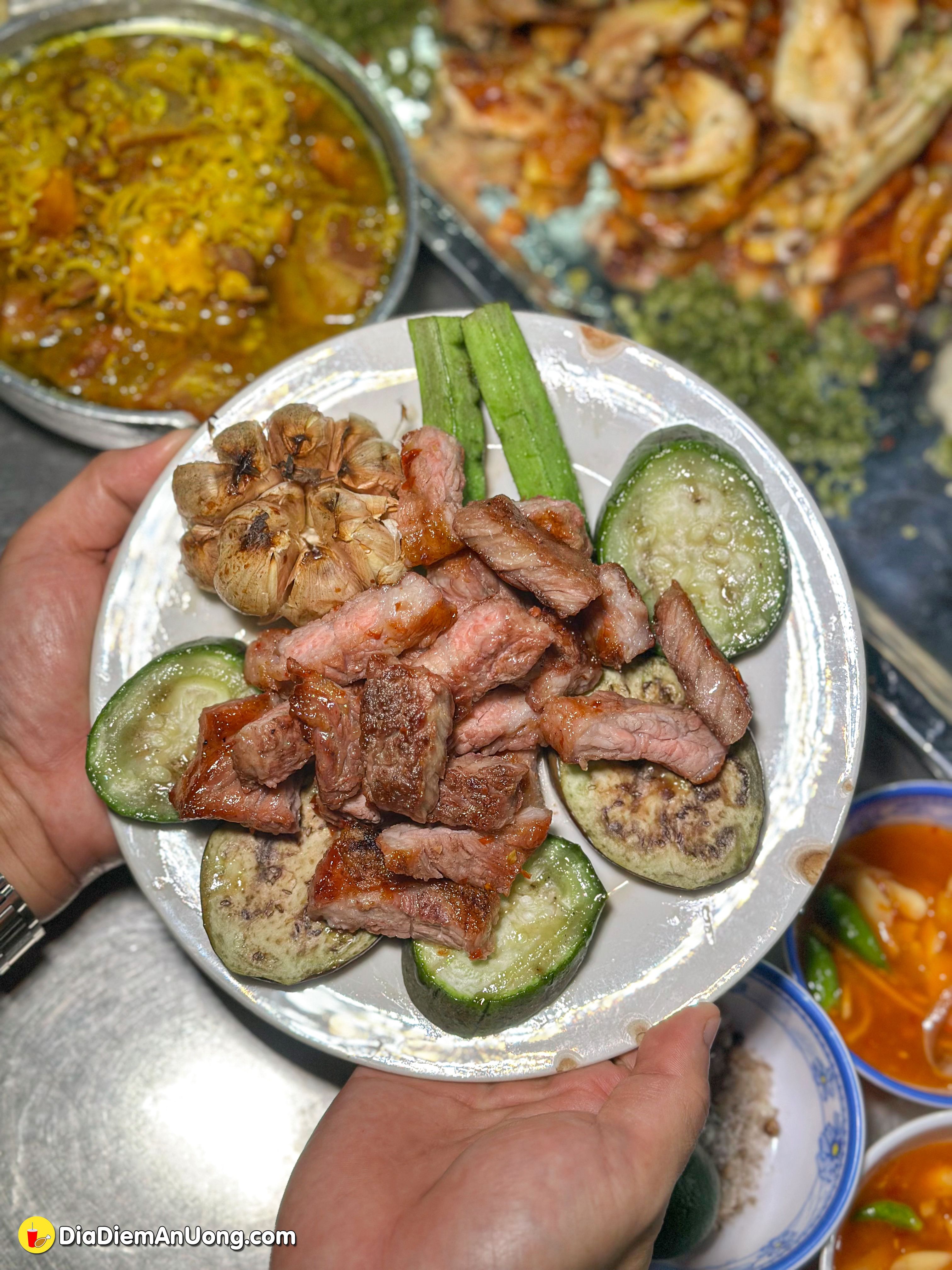 Đã lỡ ghé rồi thì đừng quên cái đĩa gù bò nướng. Phần thịt này có những vân mỡ xen kẽ, khi nướng lên mỡ tan chảy bao phủ lấy thớ thịt, mềm ơi là mềm. Phần thịt gù vừa có nạc vừa có mỡ, nướng lên thơm phức, mềm tan trong miệng.