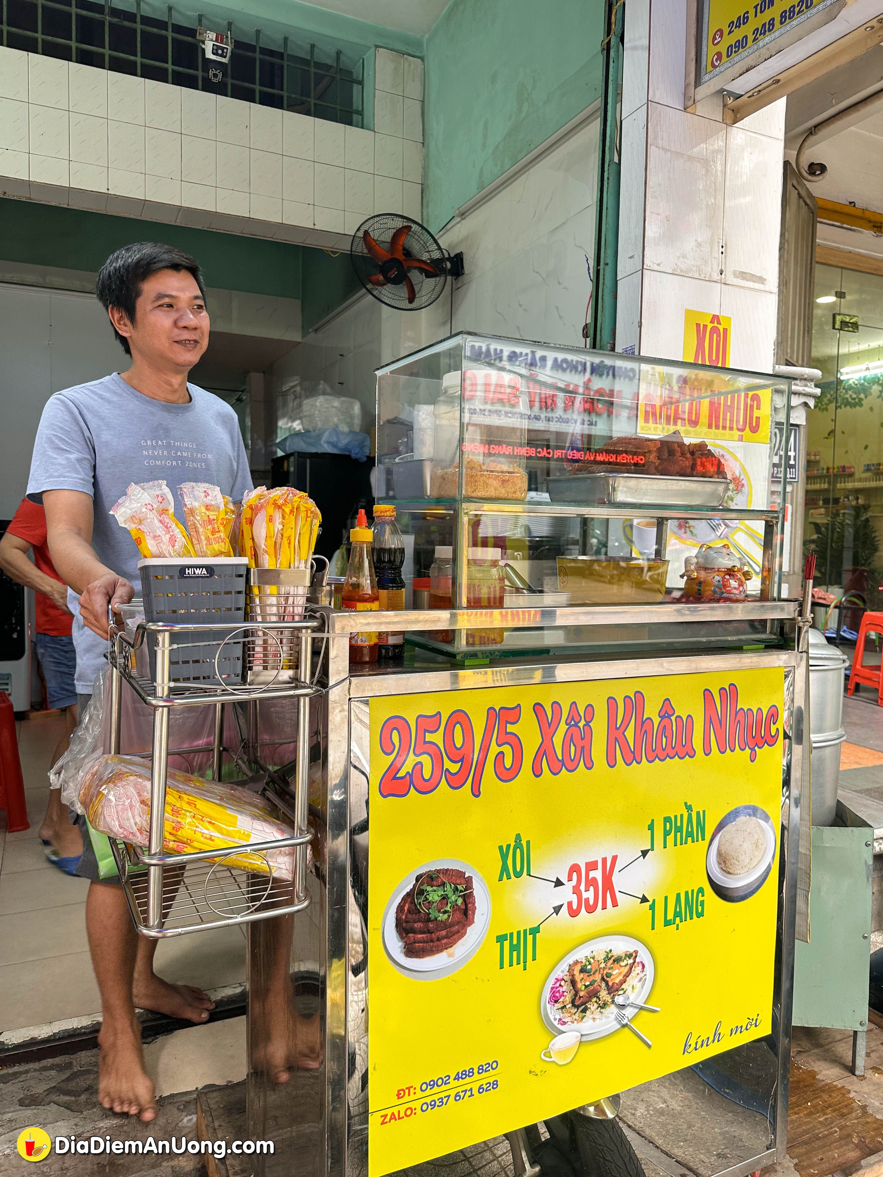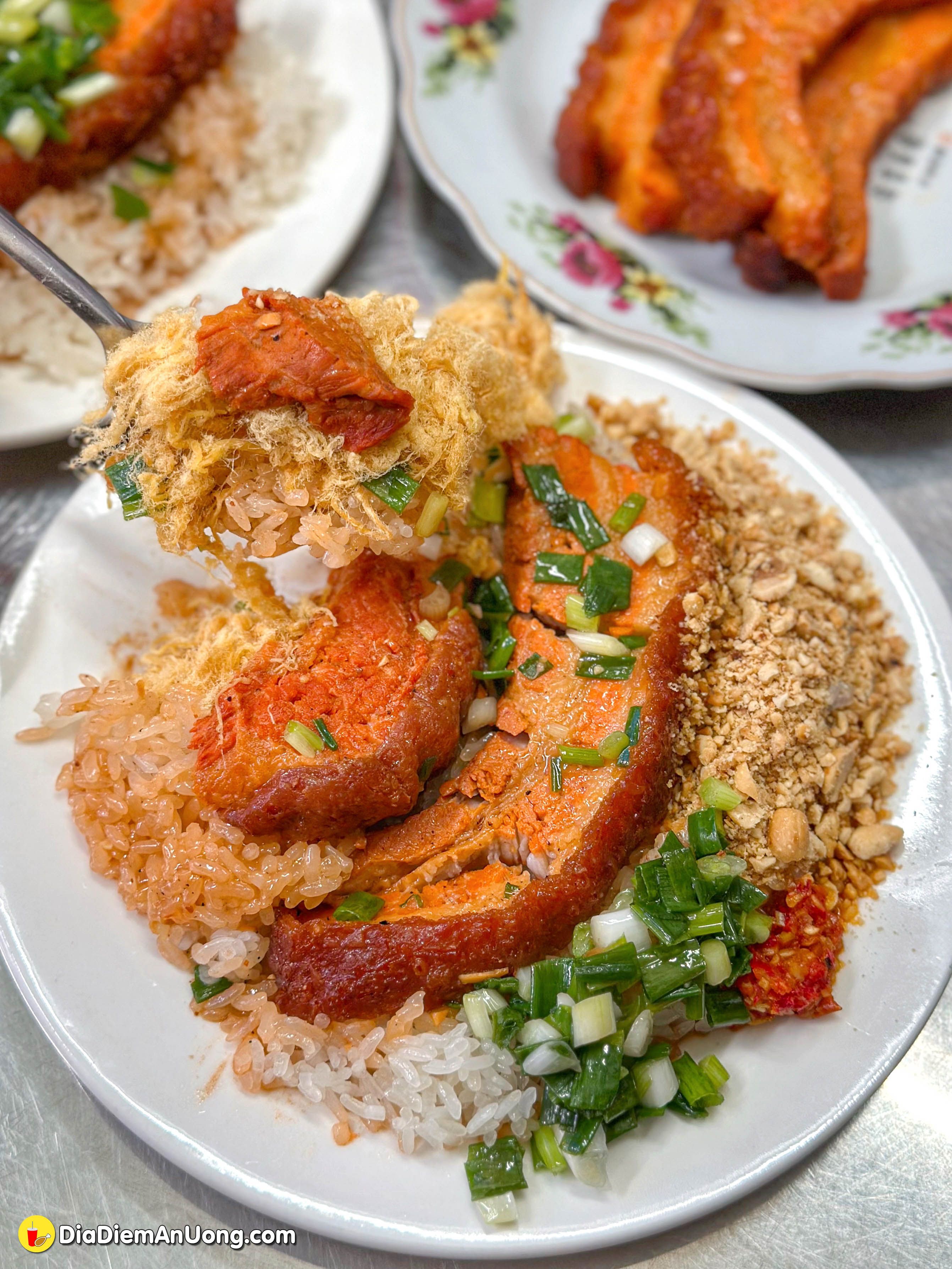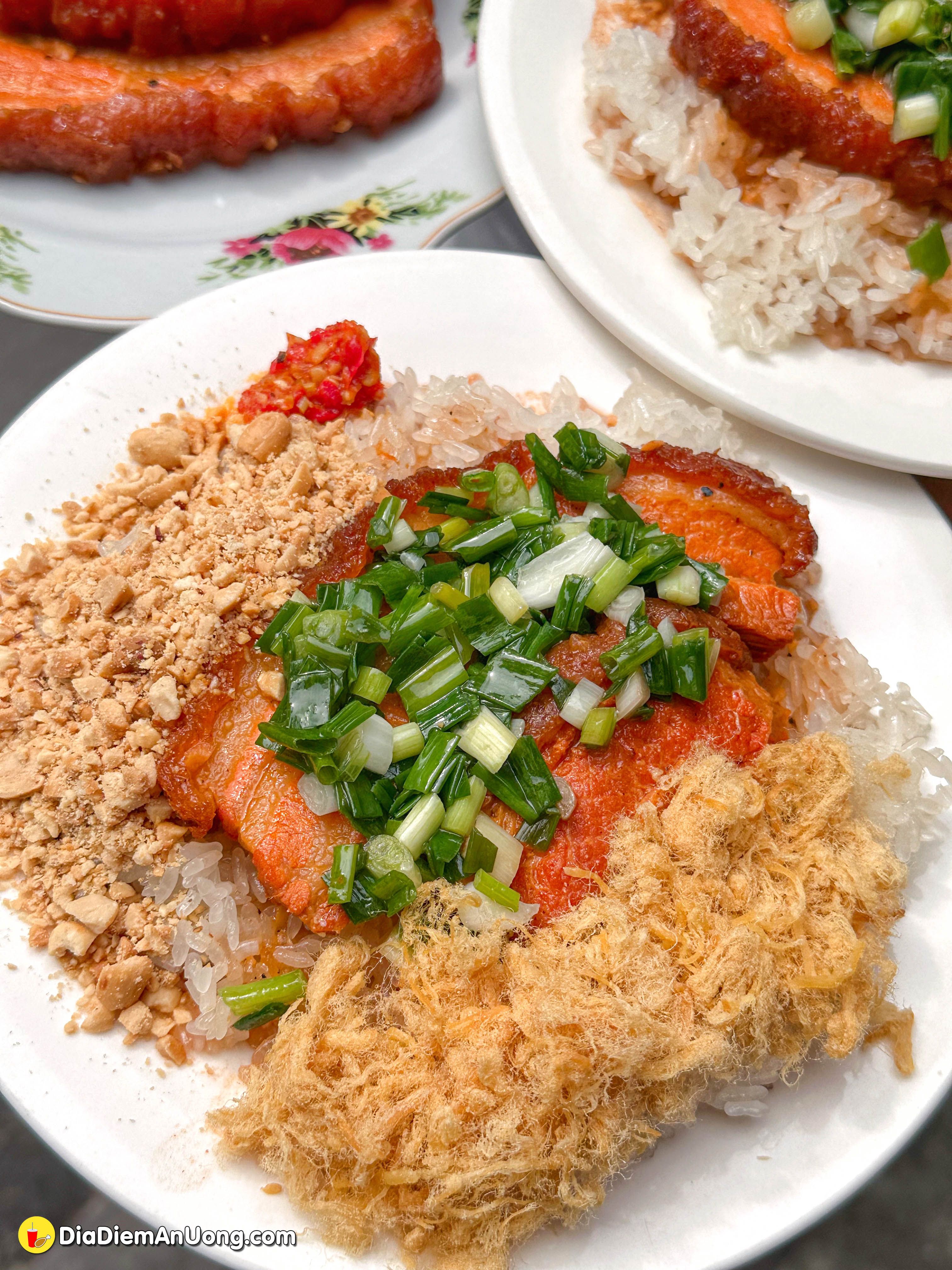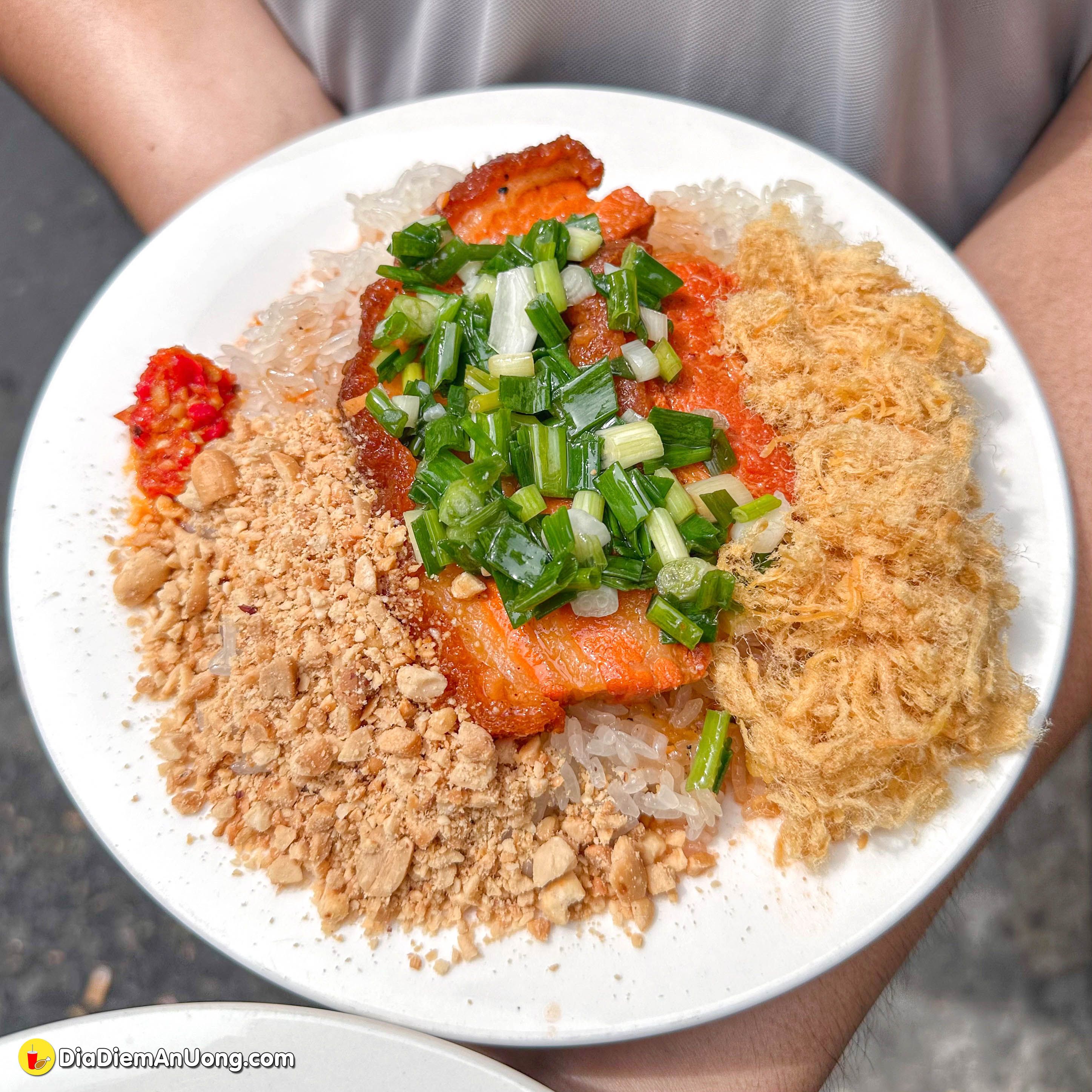 Món xôi khâu nhục không chỉ đơn thuần là thịt mà còn là sự kết hợp tinh tế giữa phần khâu nhục mềm tan và xôi nếp dẻo. Một phần như hình là 35k ngen, thêm chà bông thì thêm 5k nè.