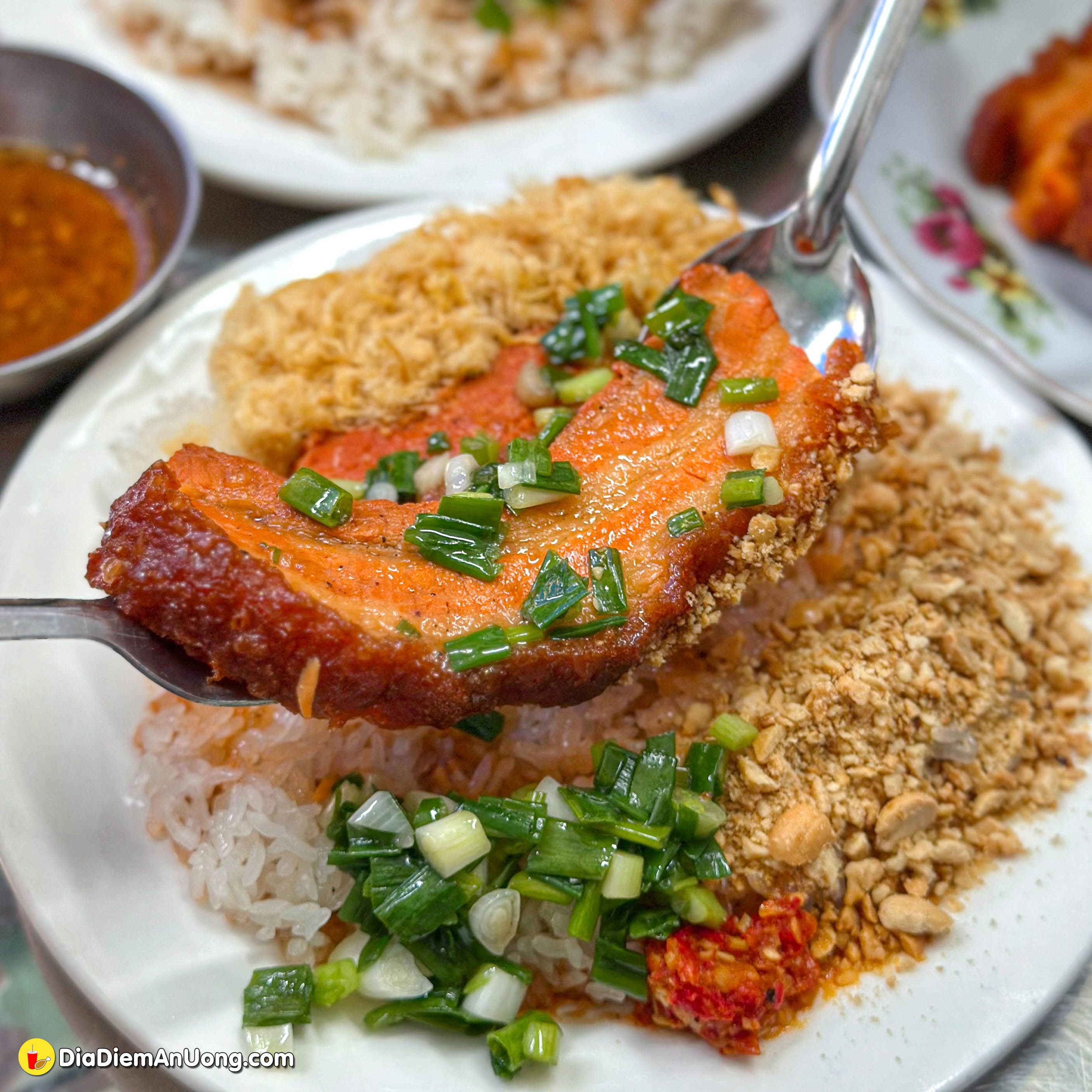 Thịt khâu nhục: Phần thịt ba chỉ được chế biến công phu trở nên mềm rục, tan ngay trong miệng. Lớp mỡ không hề ngấy, quyện cùng lớp nạc đậm đà. Thịt ở đây được nấu không thuần theo hương vị truyền thống của người Hoa nên ăn rất hợp vị, ngon lắm nha.