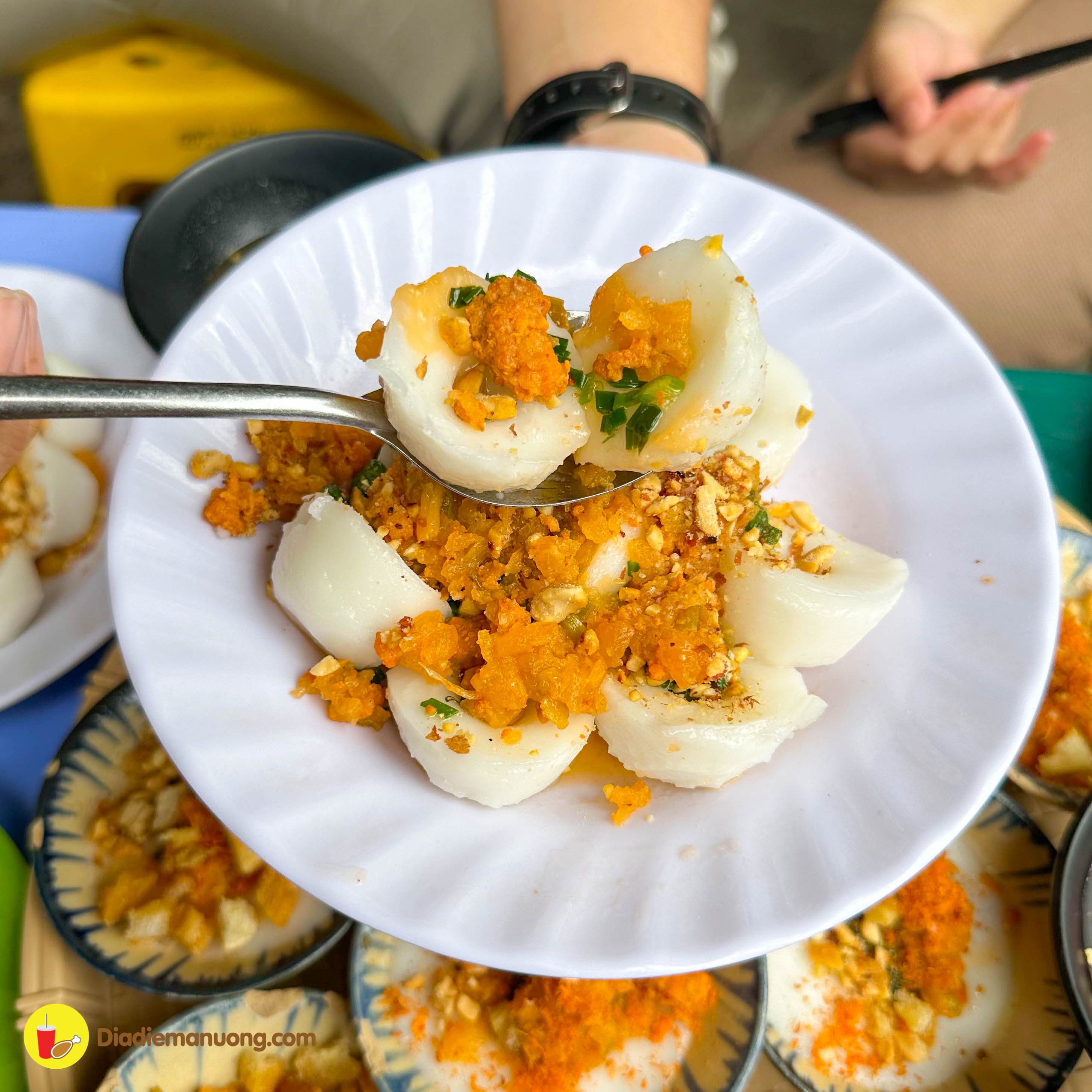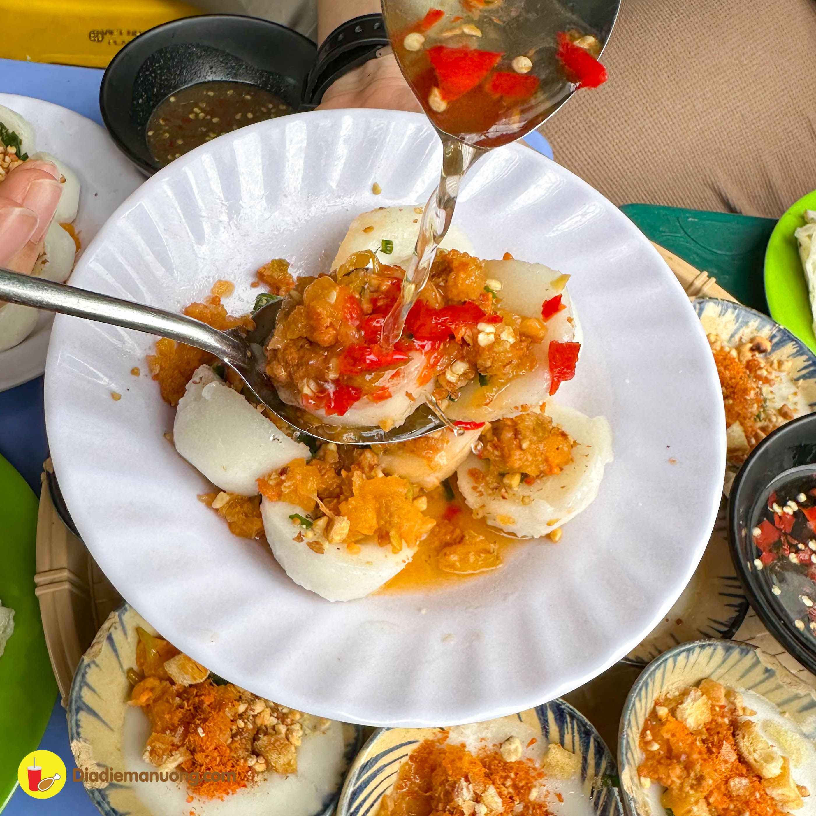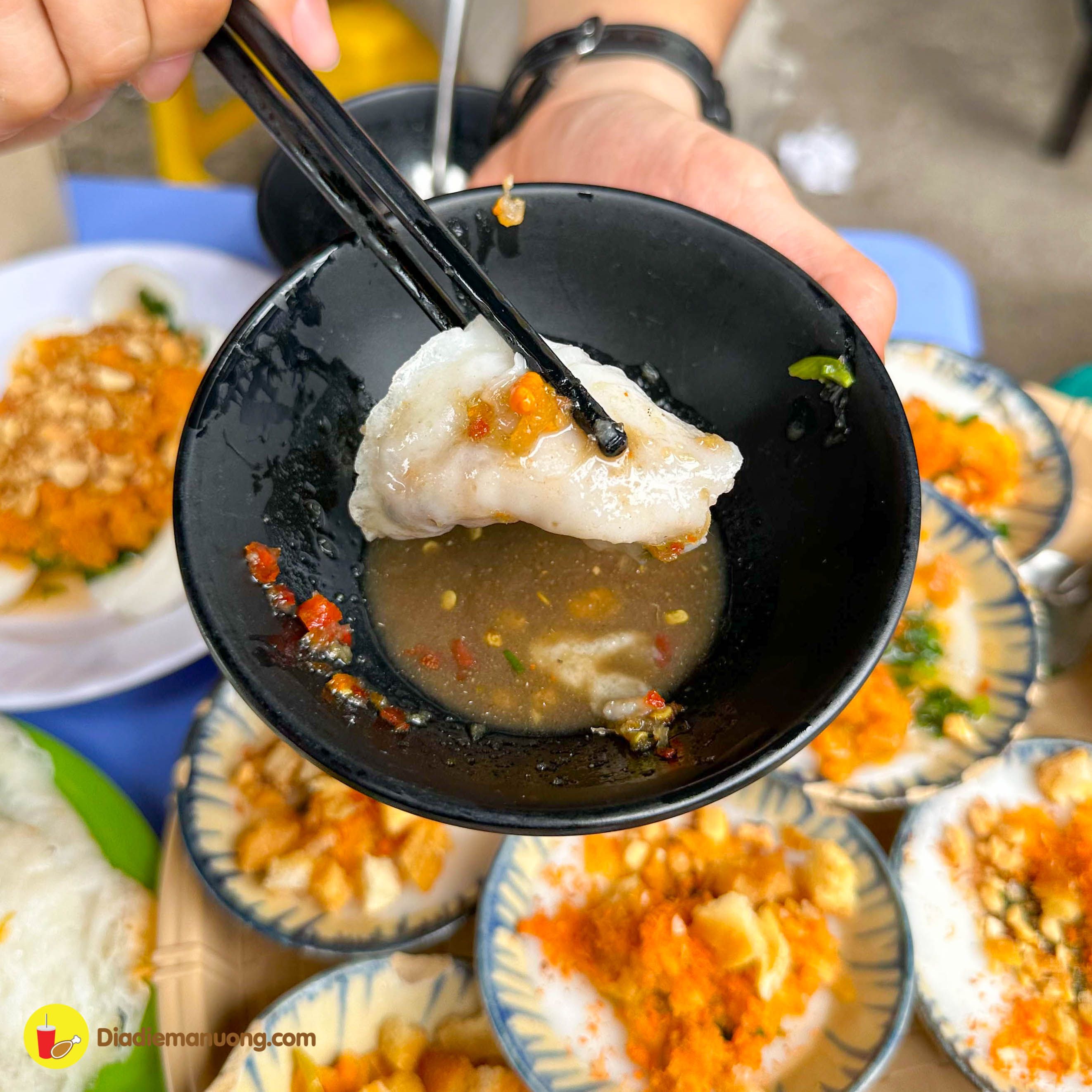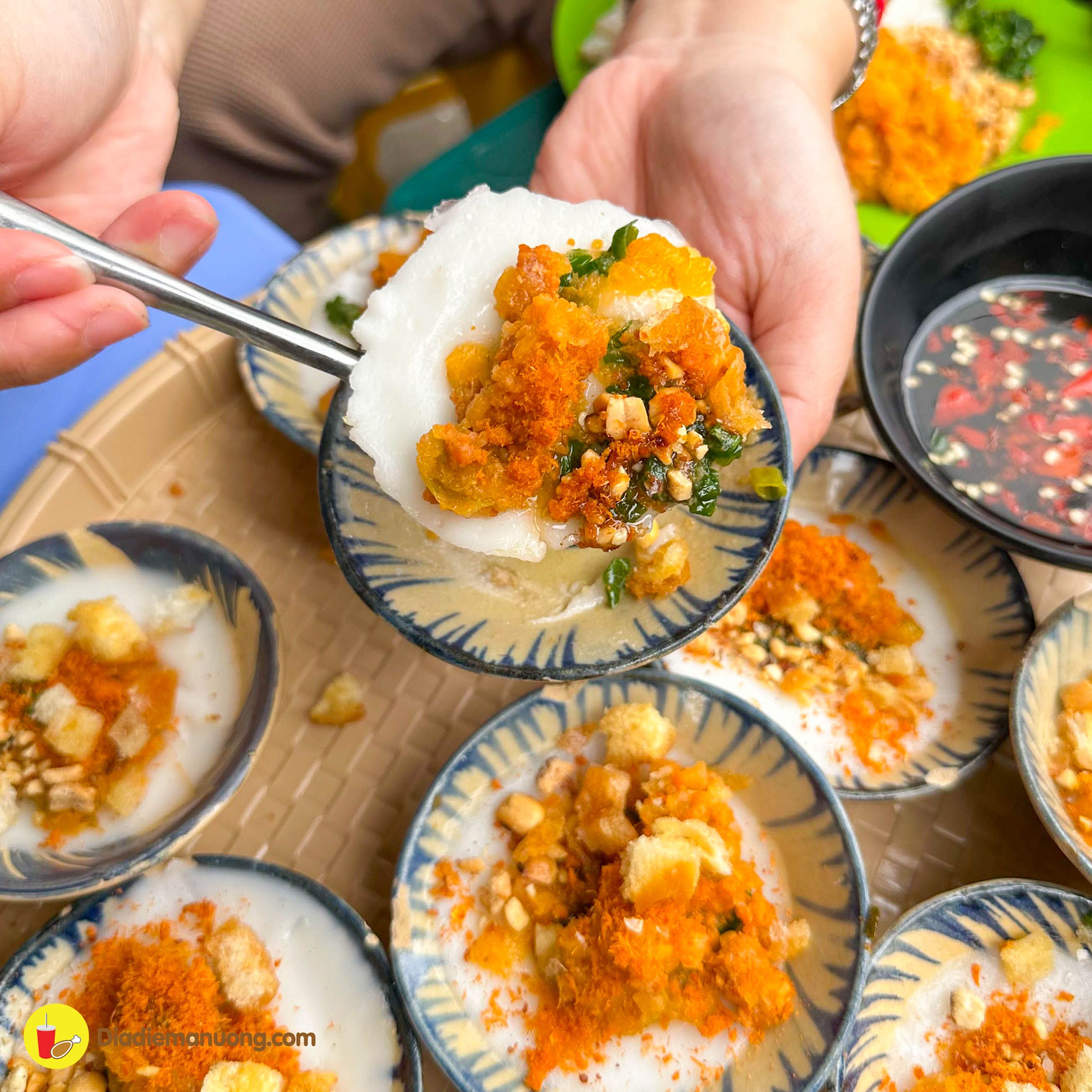Chất bột mềm dẻo ăn ngon miệng cực kì, cùng với topping củ cái, tôm và thịt băm bên trên, ăn cùng với nước mắm chua ngọt thì ta nói chỉ có đỉnh của chóp mà thôi.