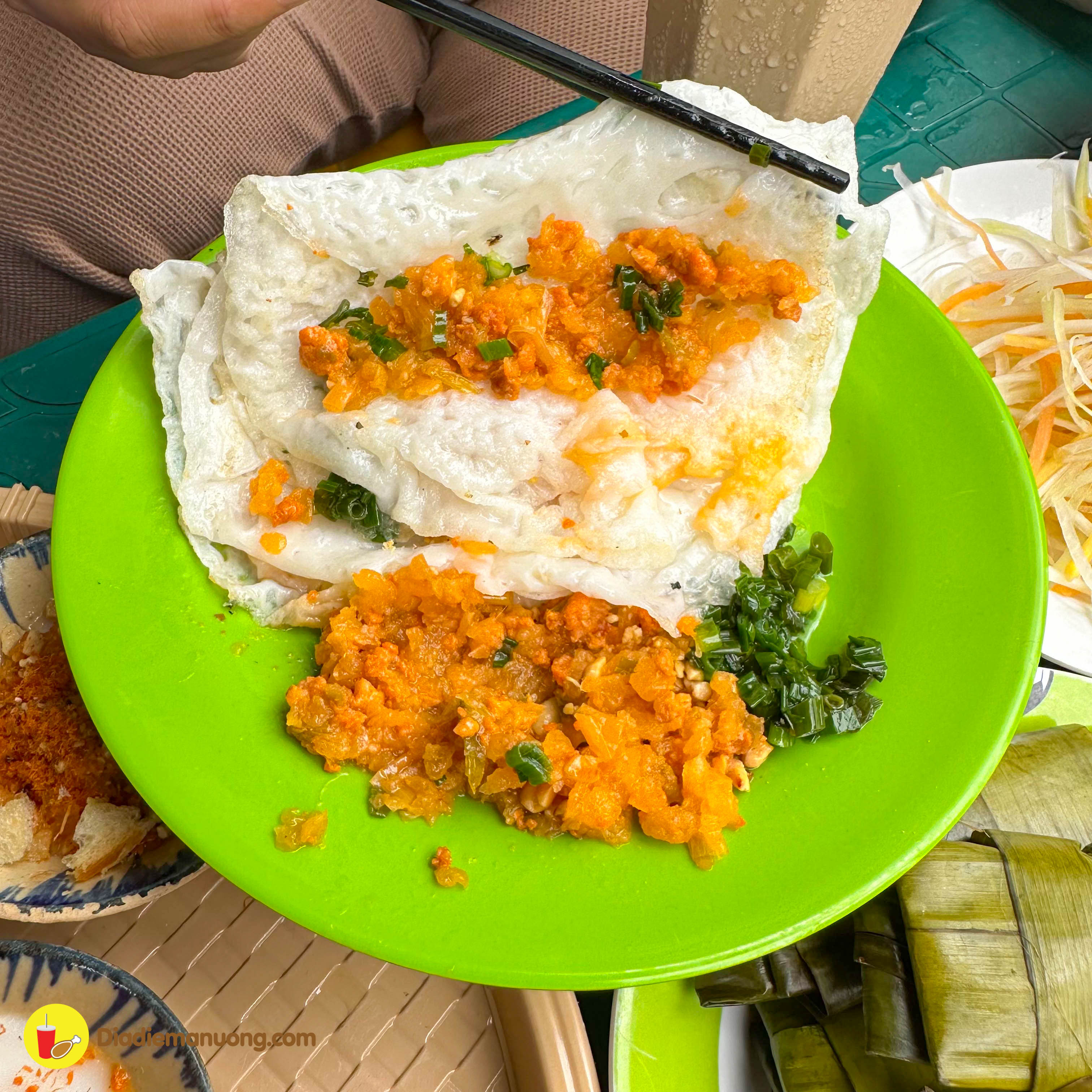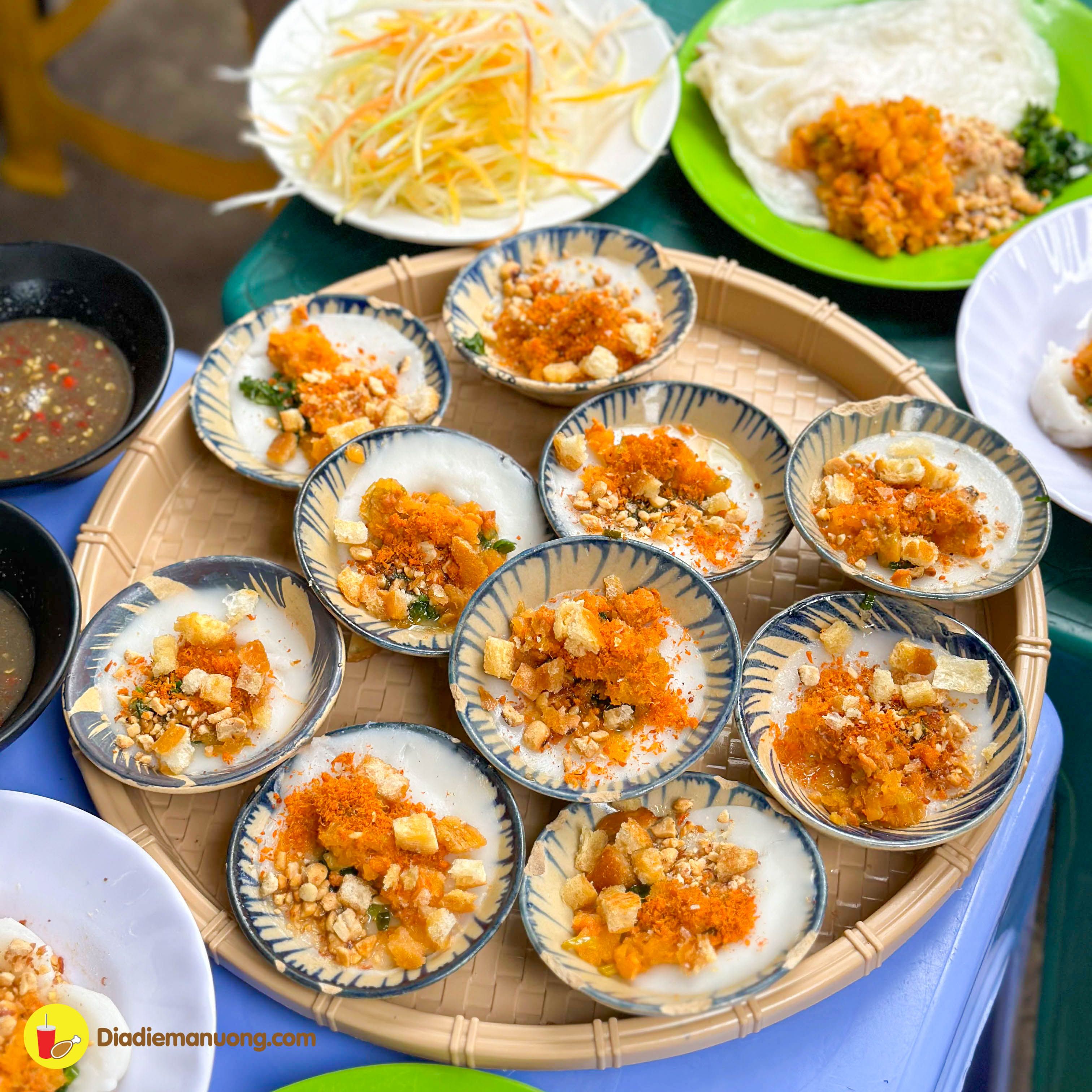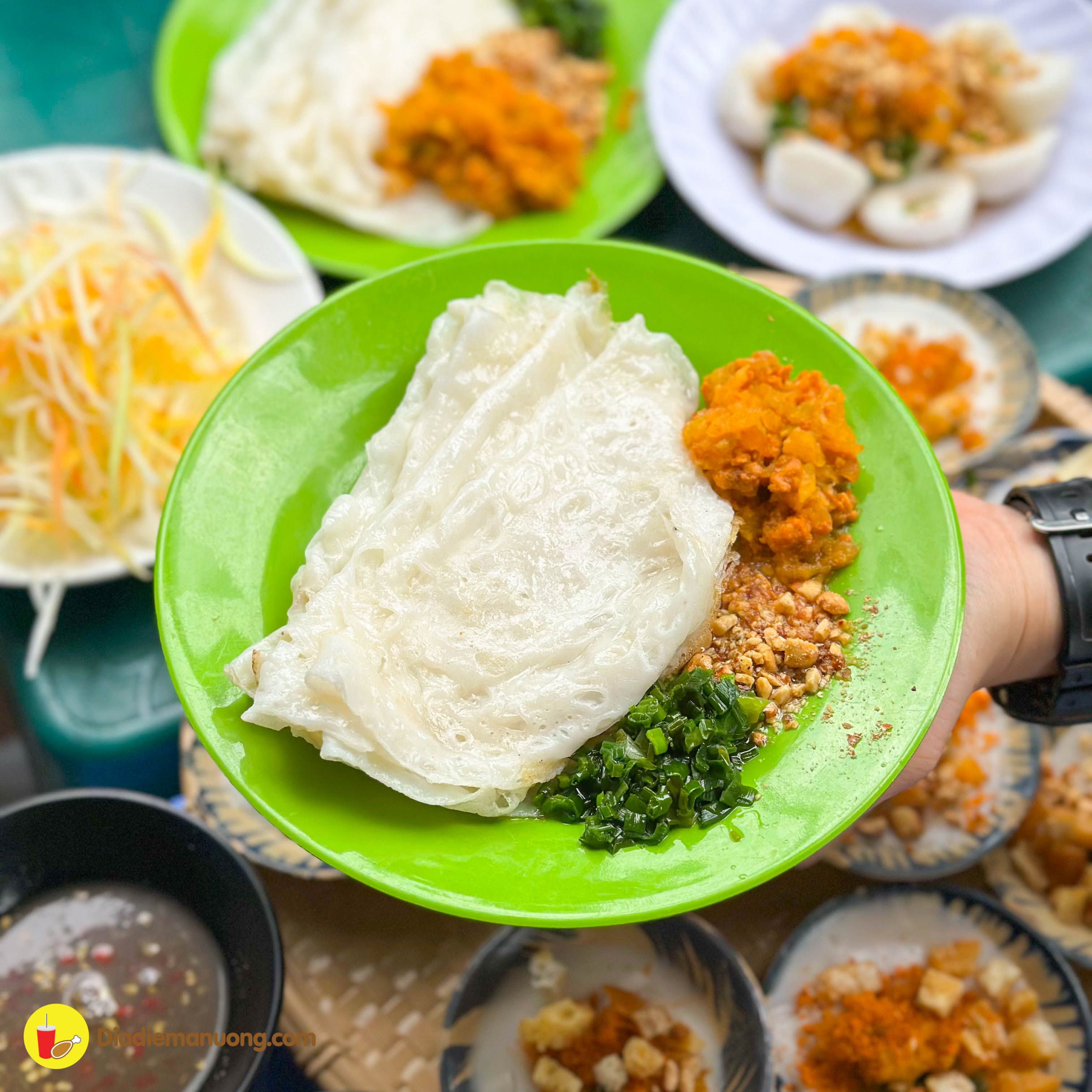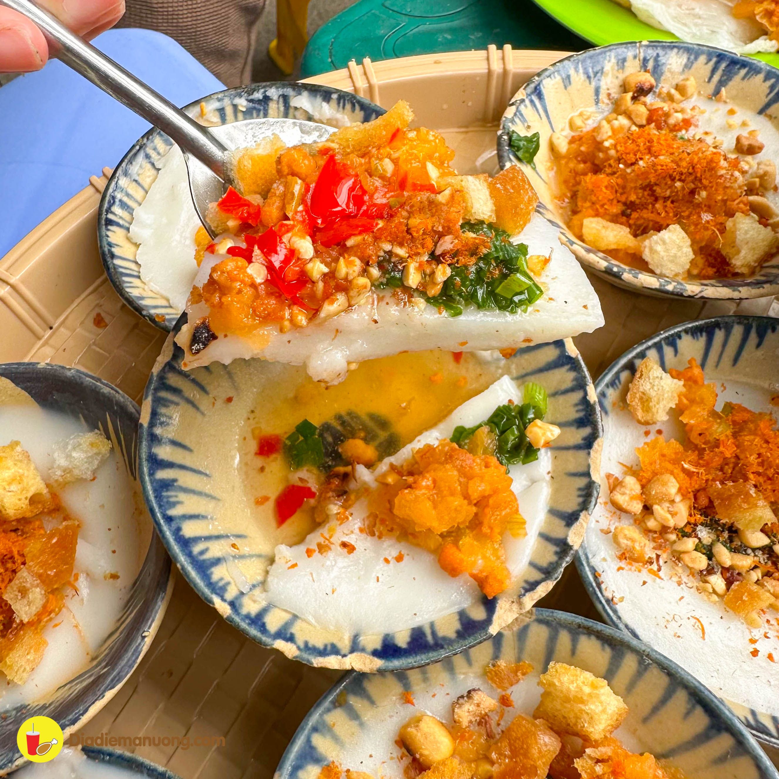 Chất bột mềm dẻo ăn ngon miệng cực kì, cùng với topping củ cái, tôm và thịt băm bên trên, ăn cùng với nước mắm chua ngọt thì ta nói chỉ có đỉnh của chóp mà thôi.