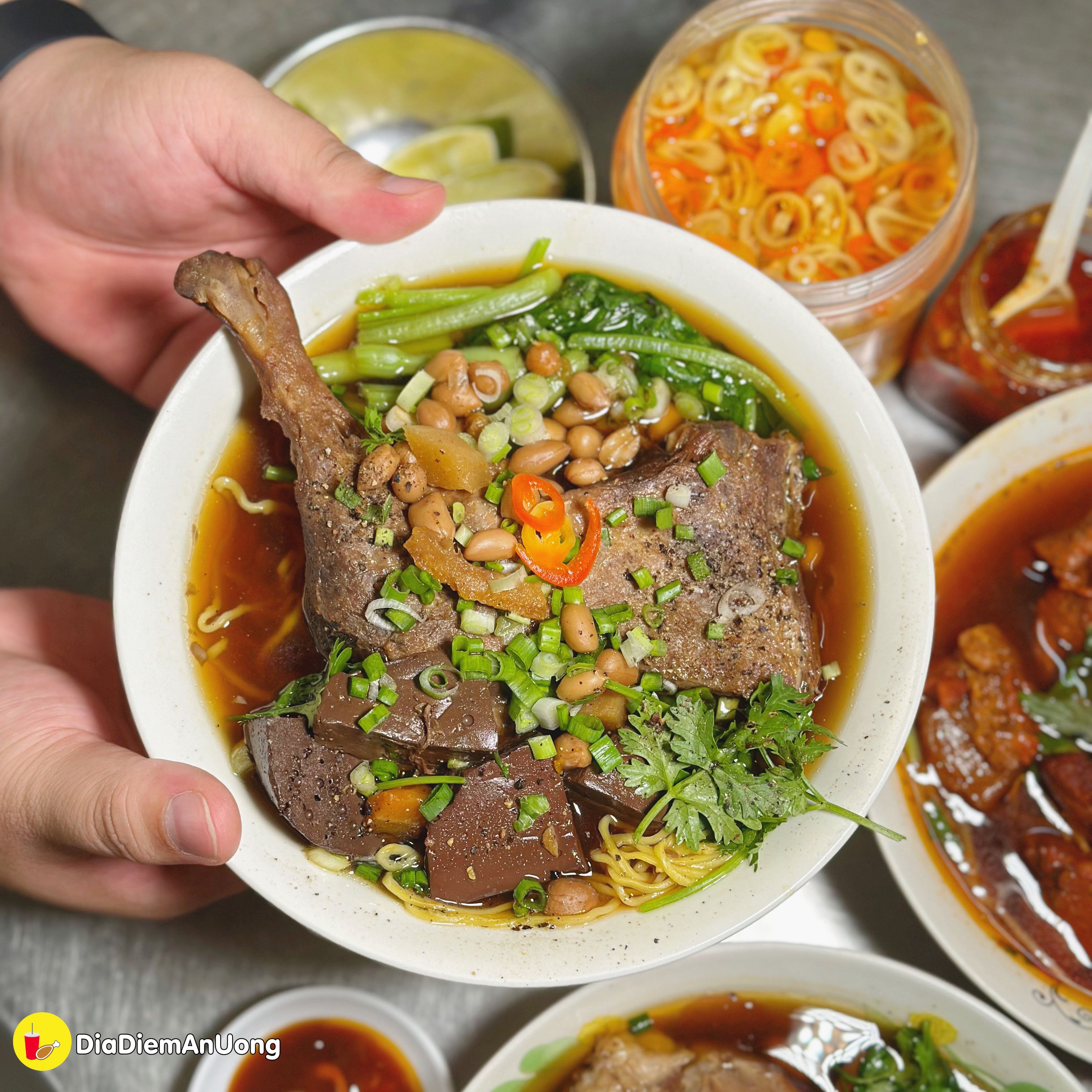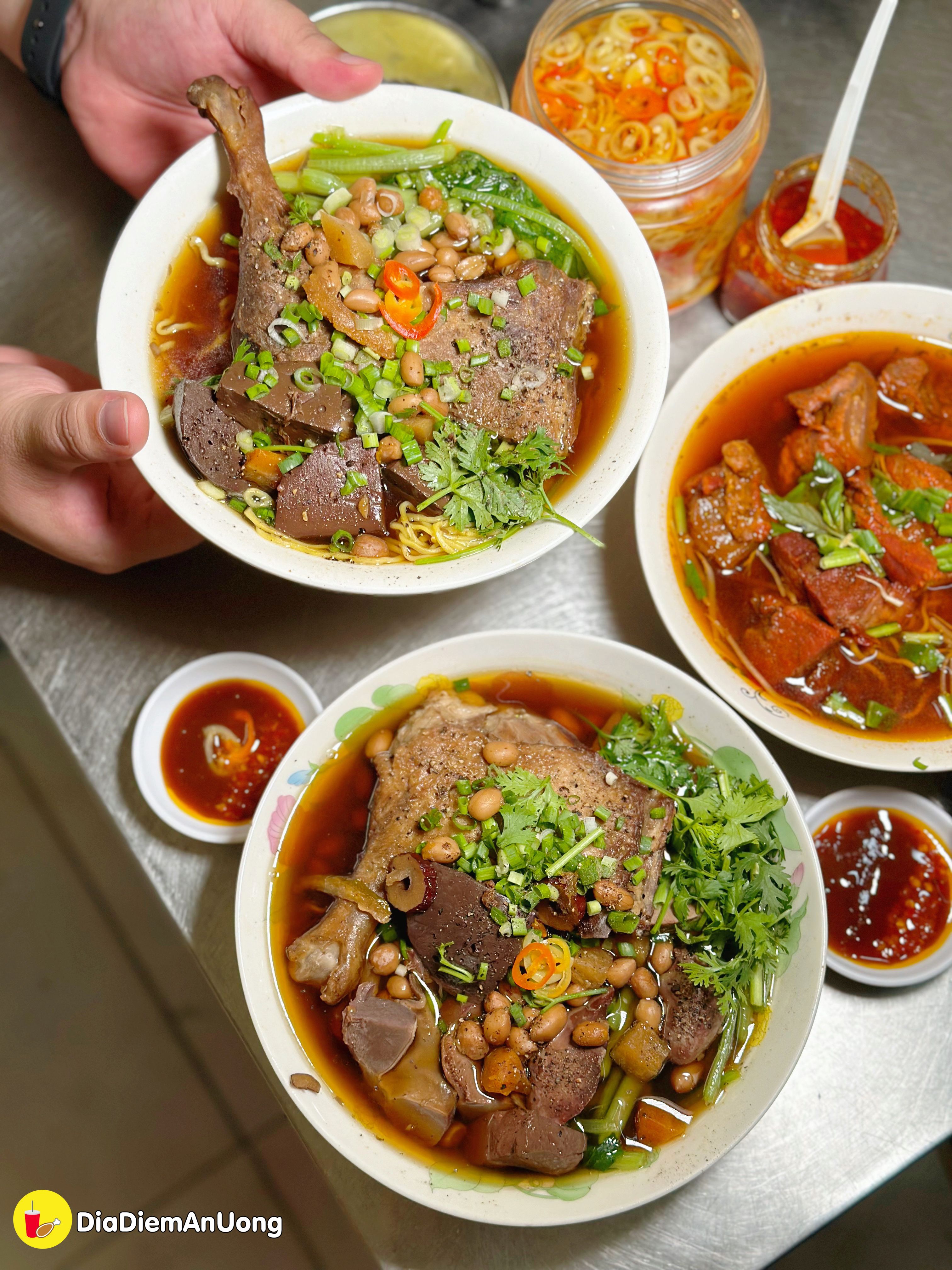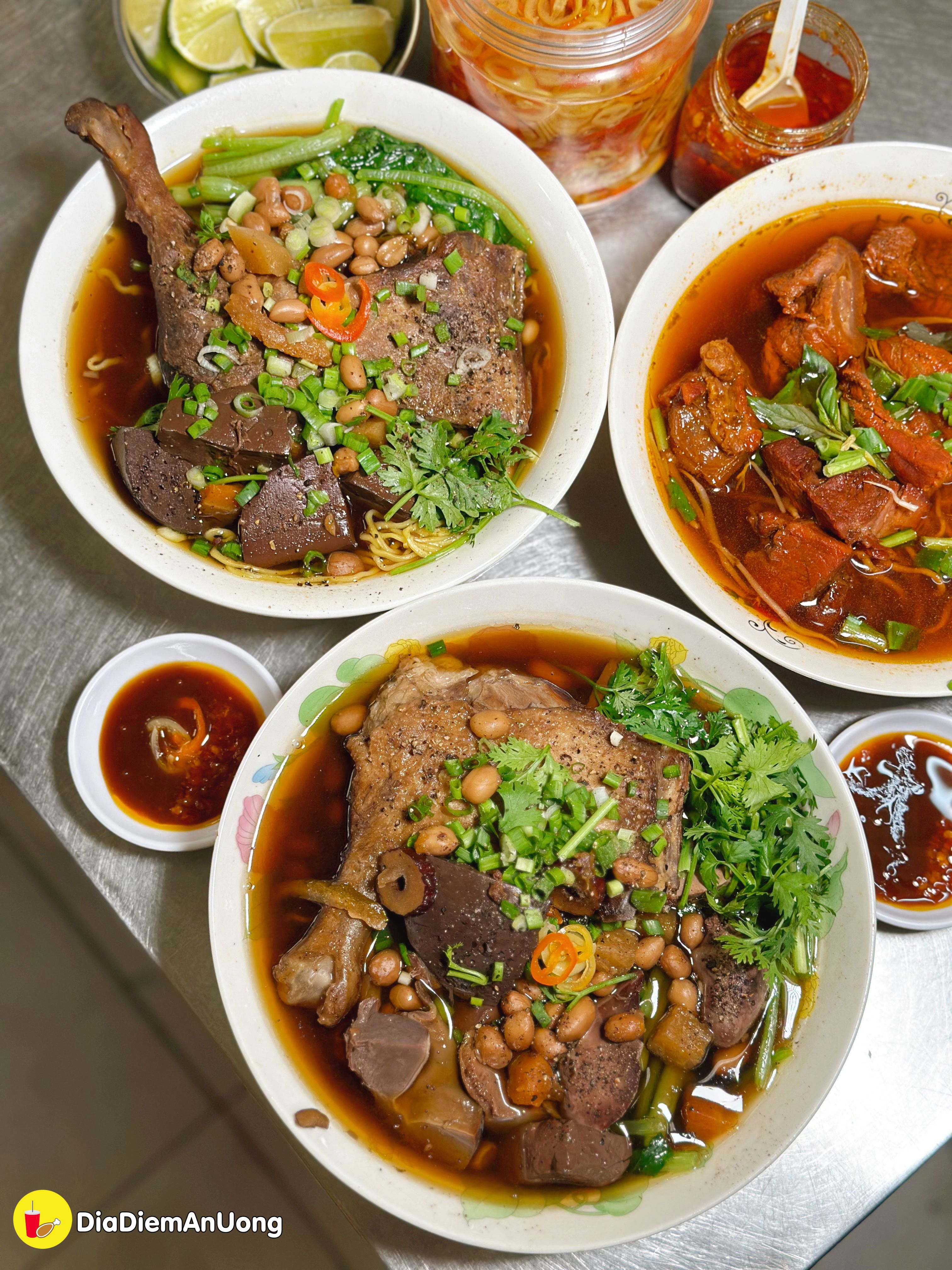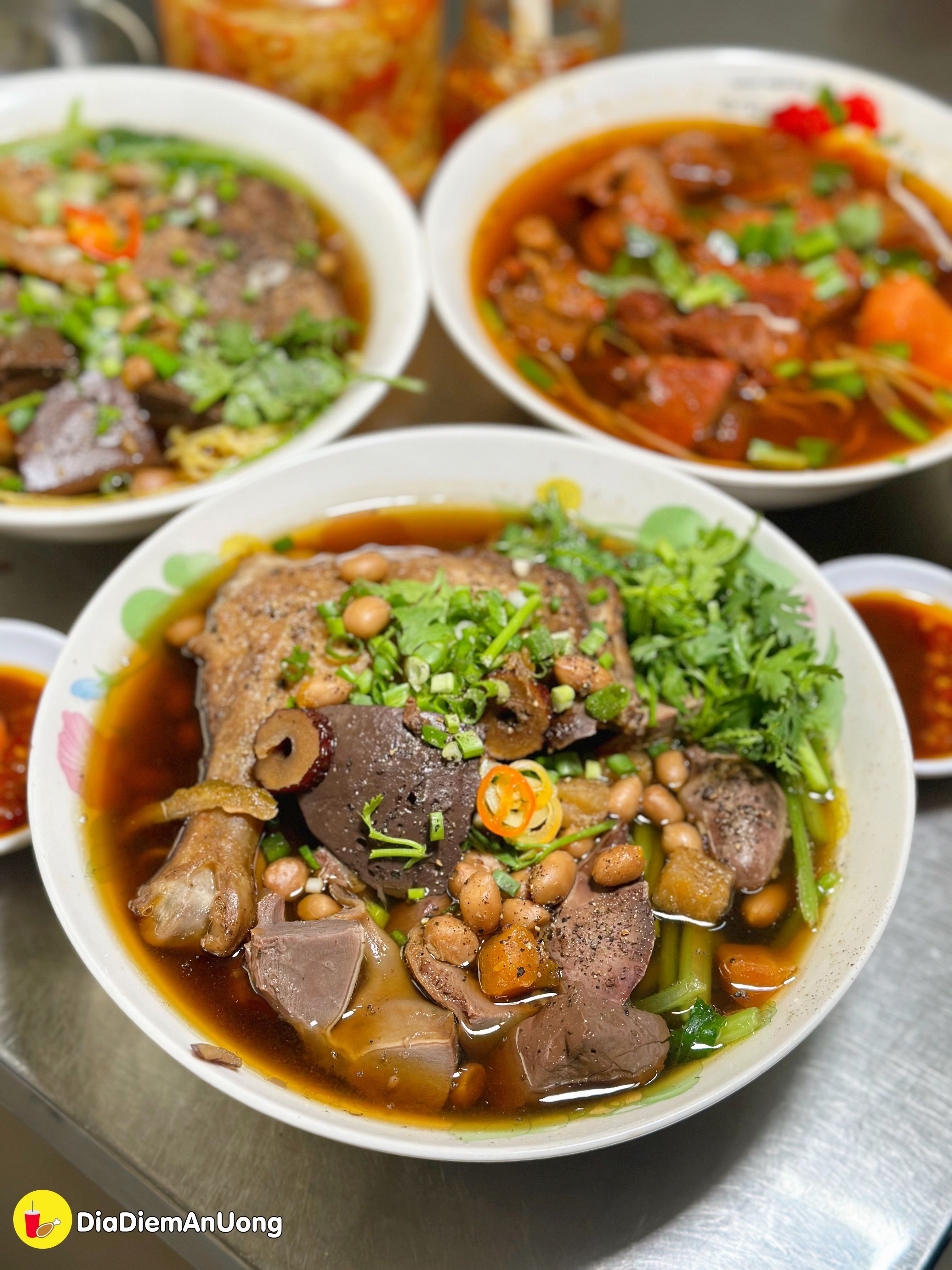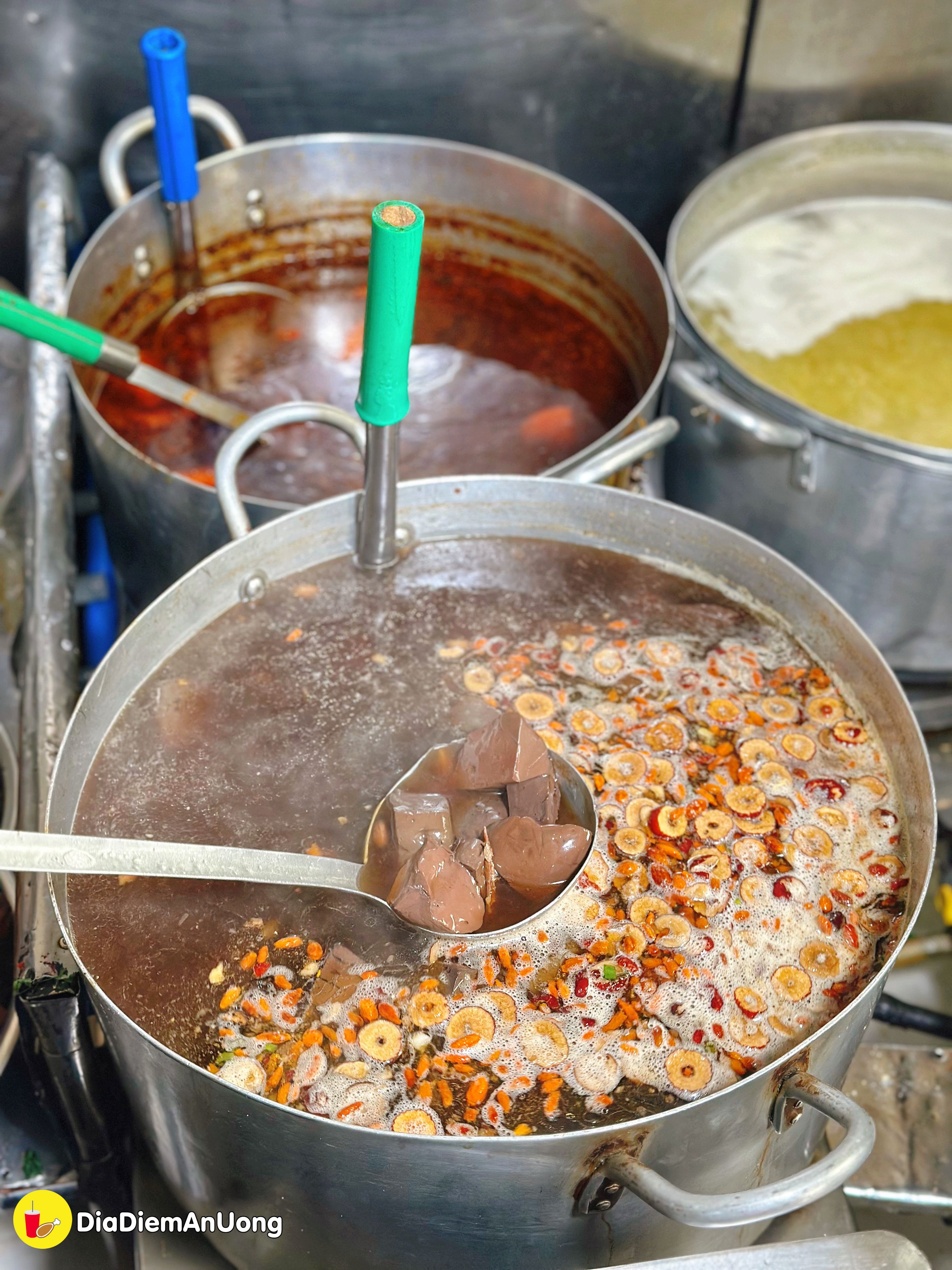 Bước vào quán nhìn nồi Nồi nước dùng hấp dẫn với đầy táo tàu, kỷ tử, huyết vịt. Bên cạnh là nồi bò kho cũng ngon không kém đâu nha.