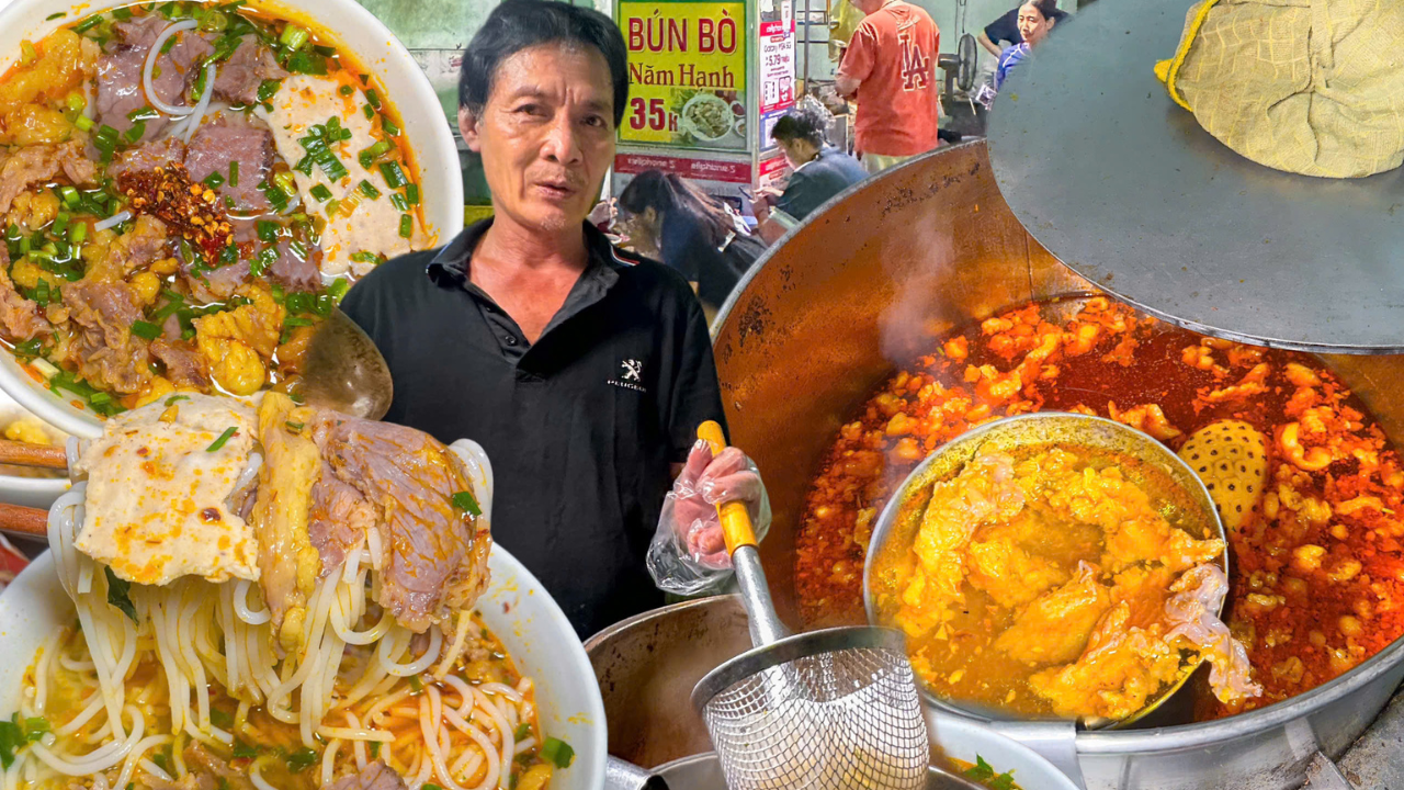 Quán ngon chuẩn dân local BÚN BÒ ĐÊM NĂM HẠNH CHỈ 35K ăn kèm mắm tôm - mỡ nổi ê hề