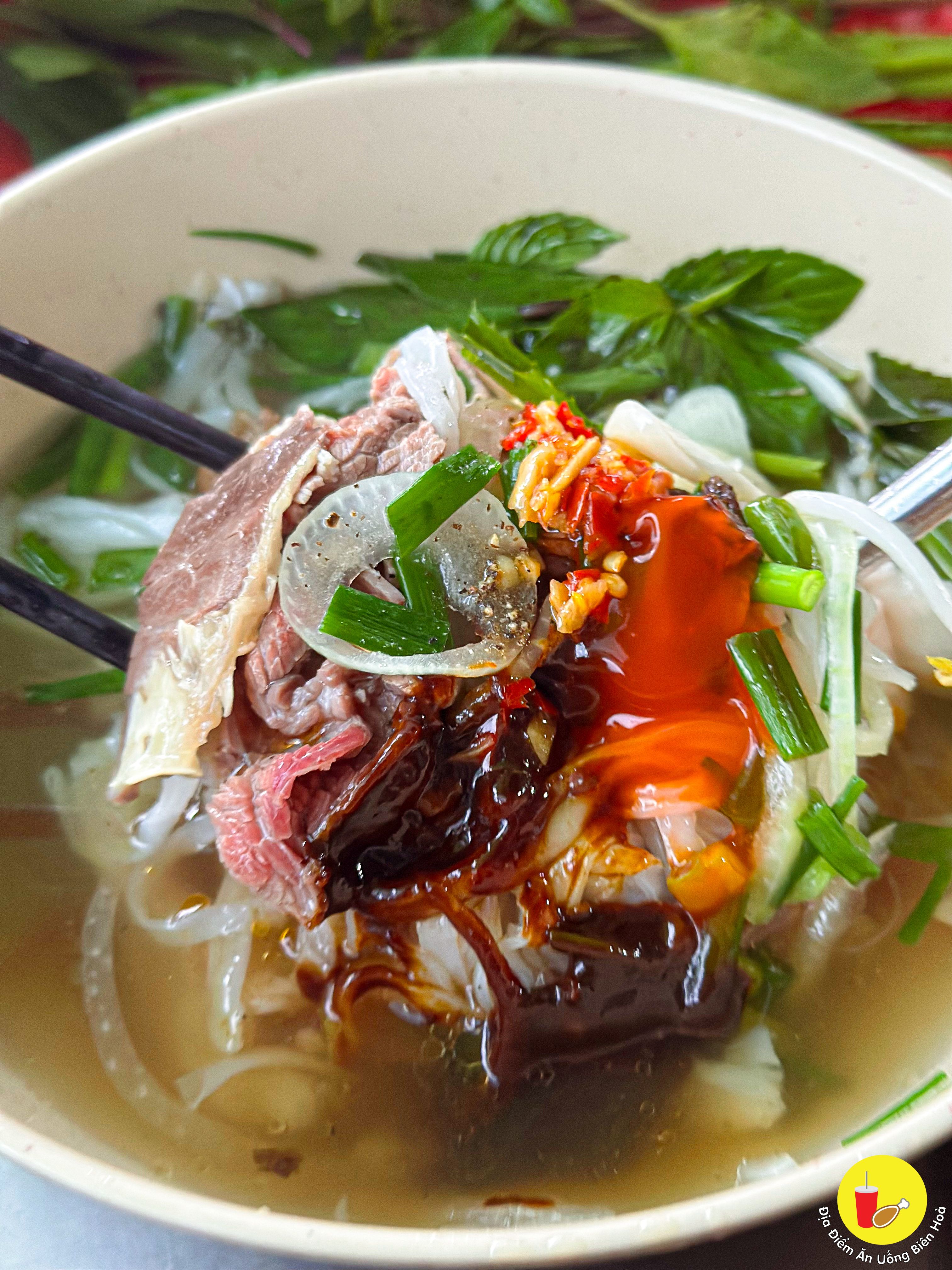 Hơi hẻm 1 chút xíu thôi nhưng khi đã ăn rồi là cứ đến ăn sáng hoài. Tô ? Phở tái nạm 30k, giá bình dân, nóng hổi vừa thổi vừa ăn với cái vị nước lèo thanh ngọt, không bị nồng, thịt bò tươi, thêm tương, chanh ớt là dzứt.