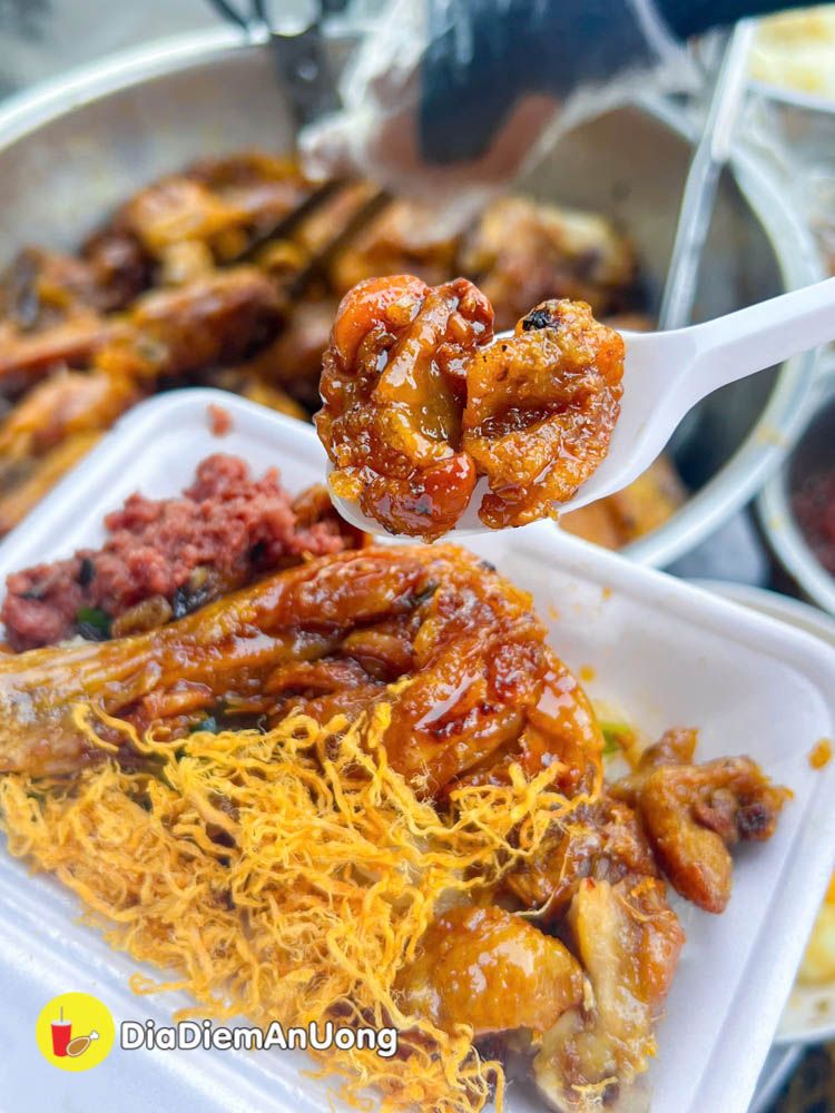 Điểm thu hút khách của xe xôi này chính là thao gà rim mắm này nè ^^ Nhìn thao gà chiên vàng giòn, thấm đẫm sốt mắm đậm đà, ướt át là thấy mlem rồi
