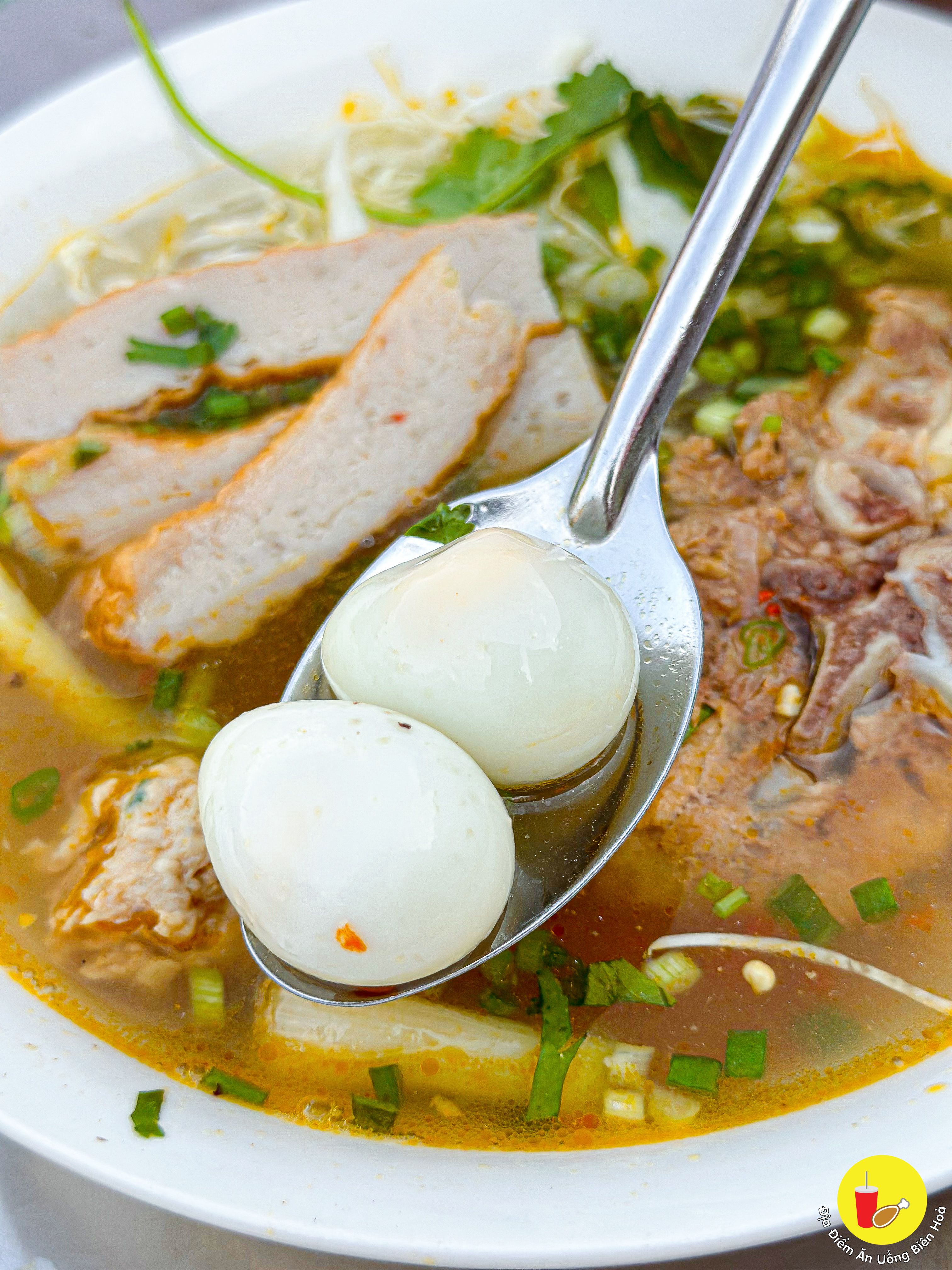 Sợi bánh canh dai nhẹ, trơn, trong suốt, nước lèo thanh ngọt xương, có thêm chả cá, mọc, trứng cút đi kèm, làm chén mắm chanh ớt chấm thì nhức nhối.