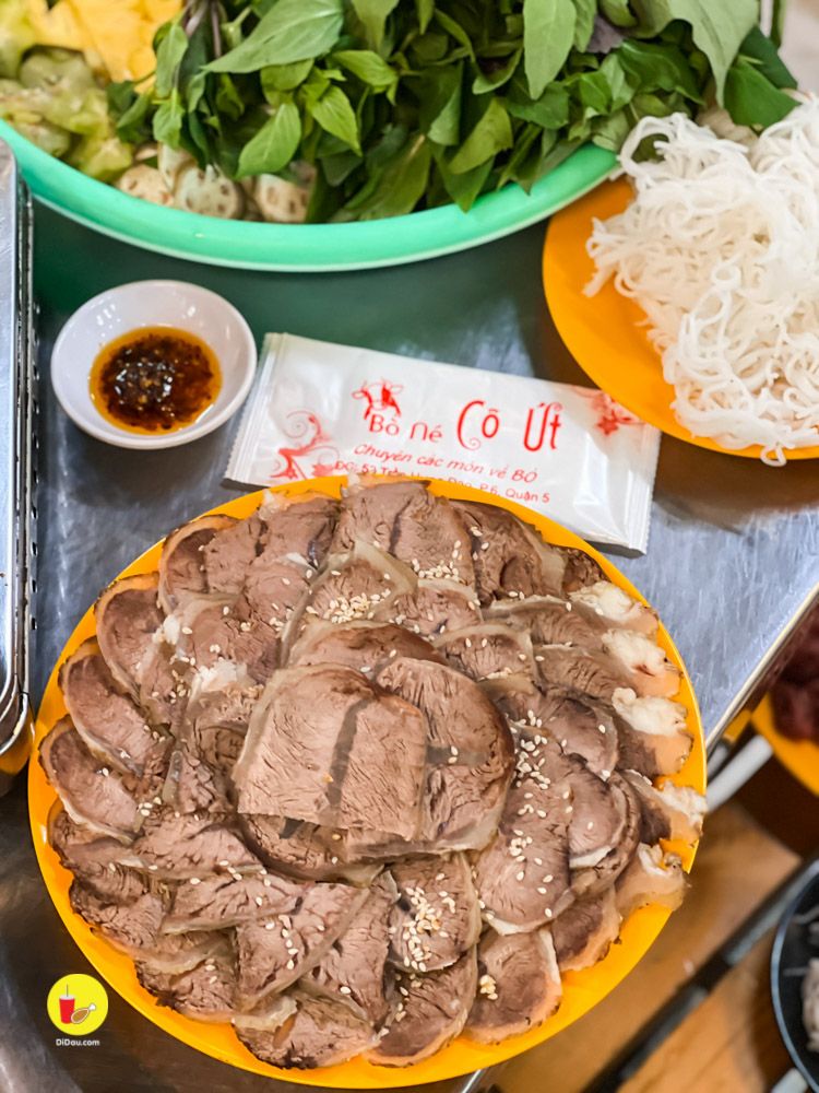 Ghé Bò Né Cô Út là phải thử các món bò thì mới đúng điệu nghen :D thường là các món nướng né nhúng xốt sền sệt là lựa chọn hàng đầu cho team thích đậm đà, nhưng lâu lâu đổi vị như team mình thì chút thanh thanh của bộ 2 món Nhúng Giấm mới được cập nhật cũng thú vị lắm nè.