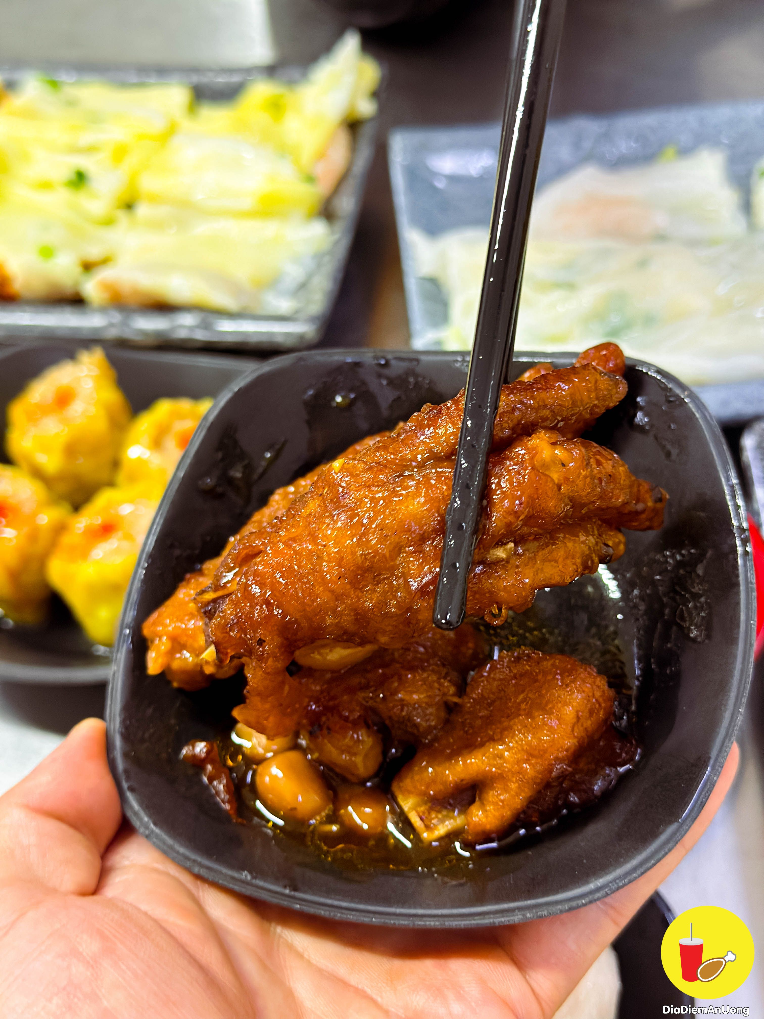 Chân gà hấp tàu xì thì to, hấp vừa tới mềm nhưng không bị rục, vừa thấm chân gà nhưng không bị ngấm mặn, thêm đậu ăn kèm rất hấp dẫn.