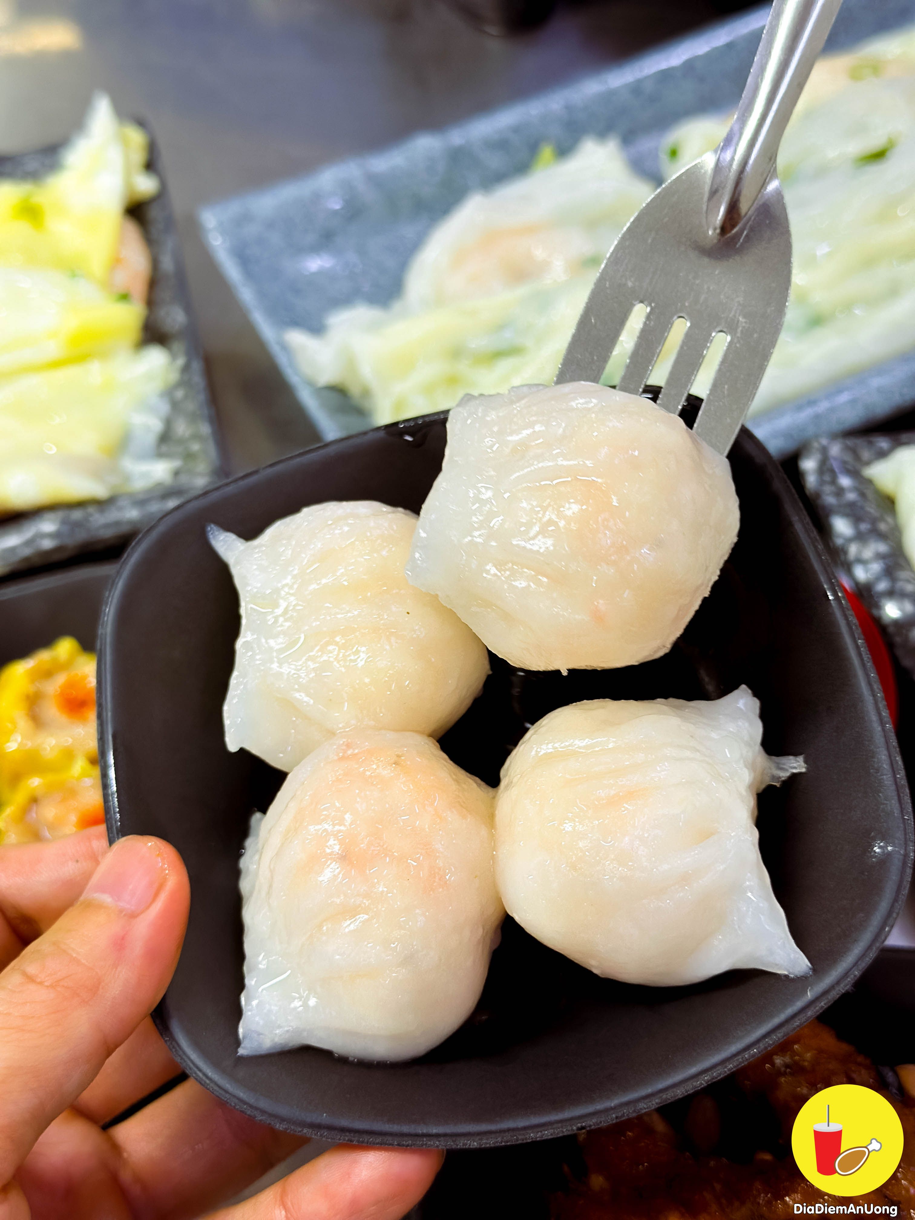 Ngoài Bánh cuốn ra thì đến quán cả nhà nên thử thêm 3 món: Há cảo tôm 35k, xíu mại tôm thịt 35k và chân gá hấp tàu xì 40k của quán nha.