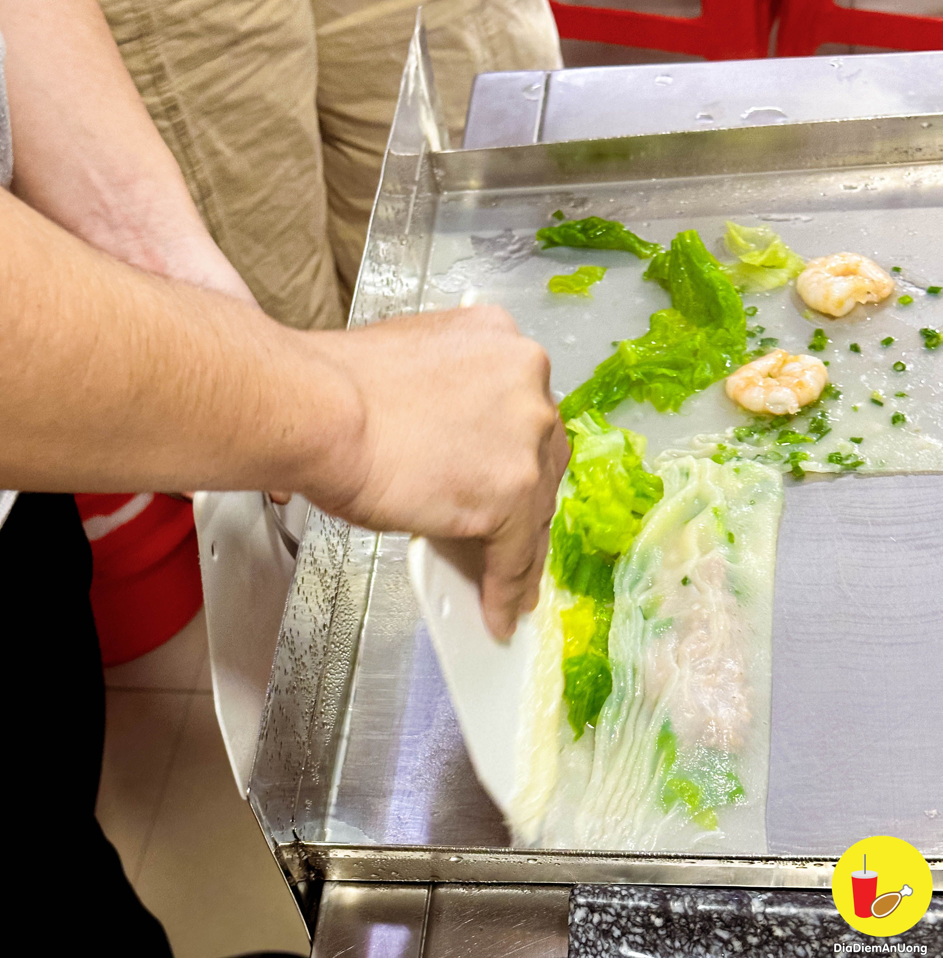 Điểm mình thích ở quán là khi khách vào gọi món thì quán mới đổ bánh vào khay rồi mang đi hấp nên bánh cuốn phục vụ luôn nóng hổi, ăn thêm ngon.