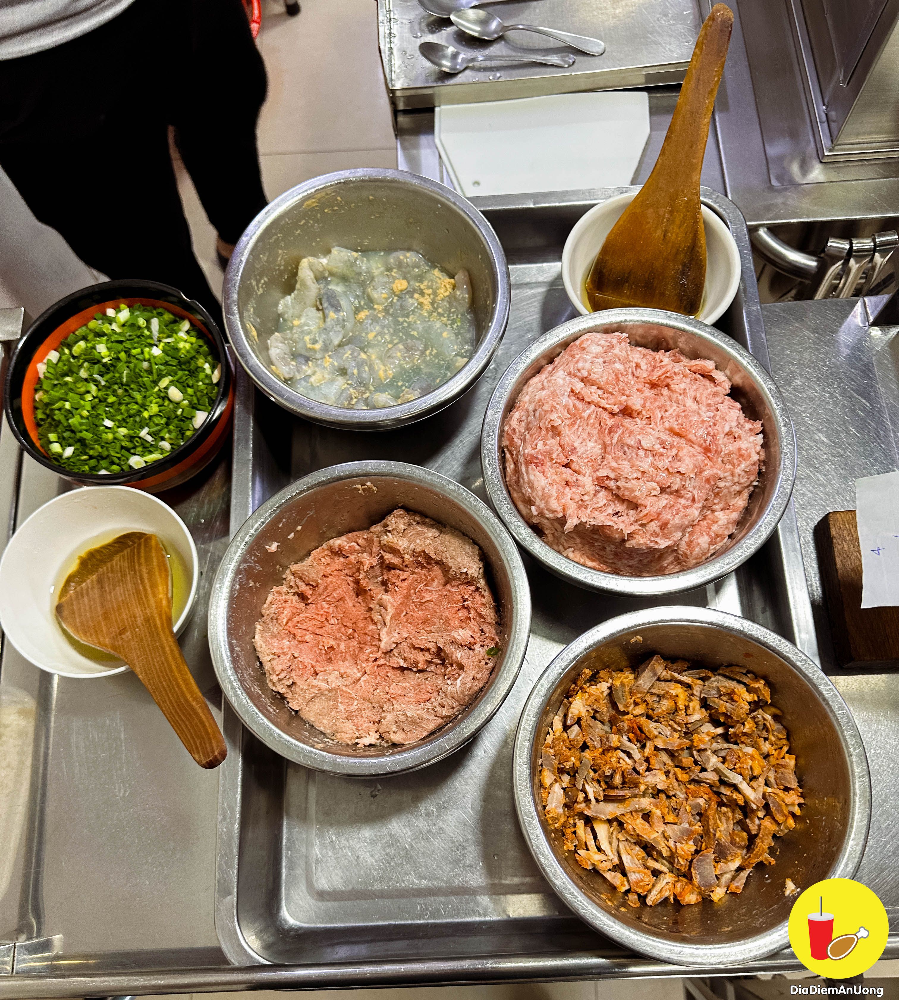 Topping thì đa dạng cho cả nhà có thể chọn: từ thịt heo xay, thịt bò, tôm, xá xíu hay sò điệp nữa. Nếu không biết lựa chọn thì có thể chọn thập cẩm hay các nguyên liệu mix vào với nhau ăn theo sở thích.
