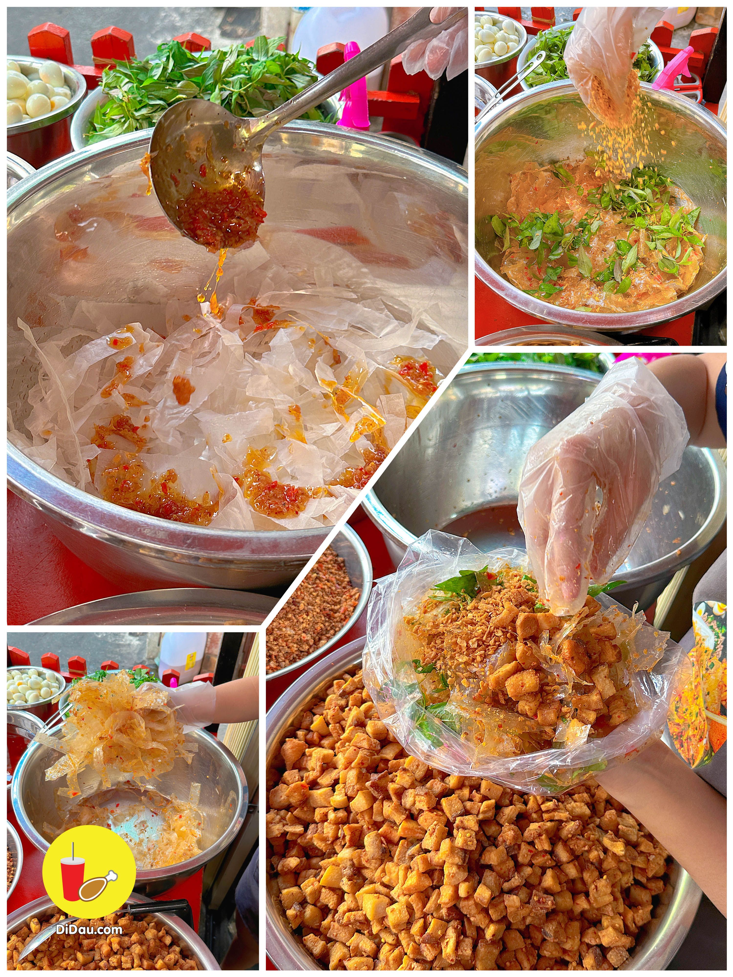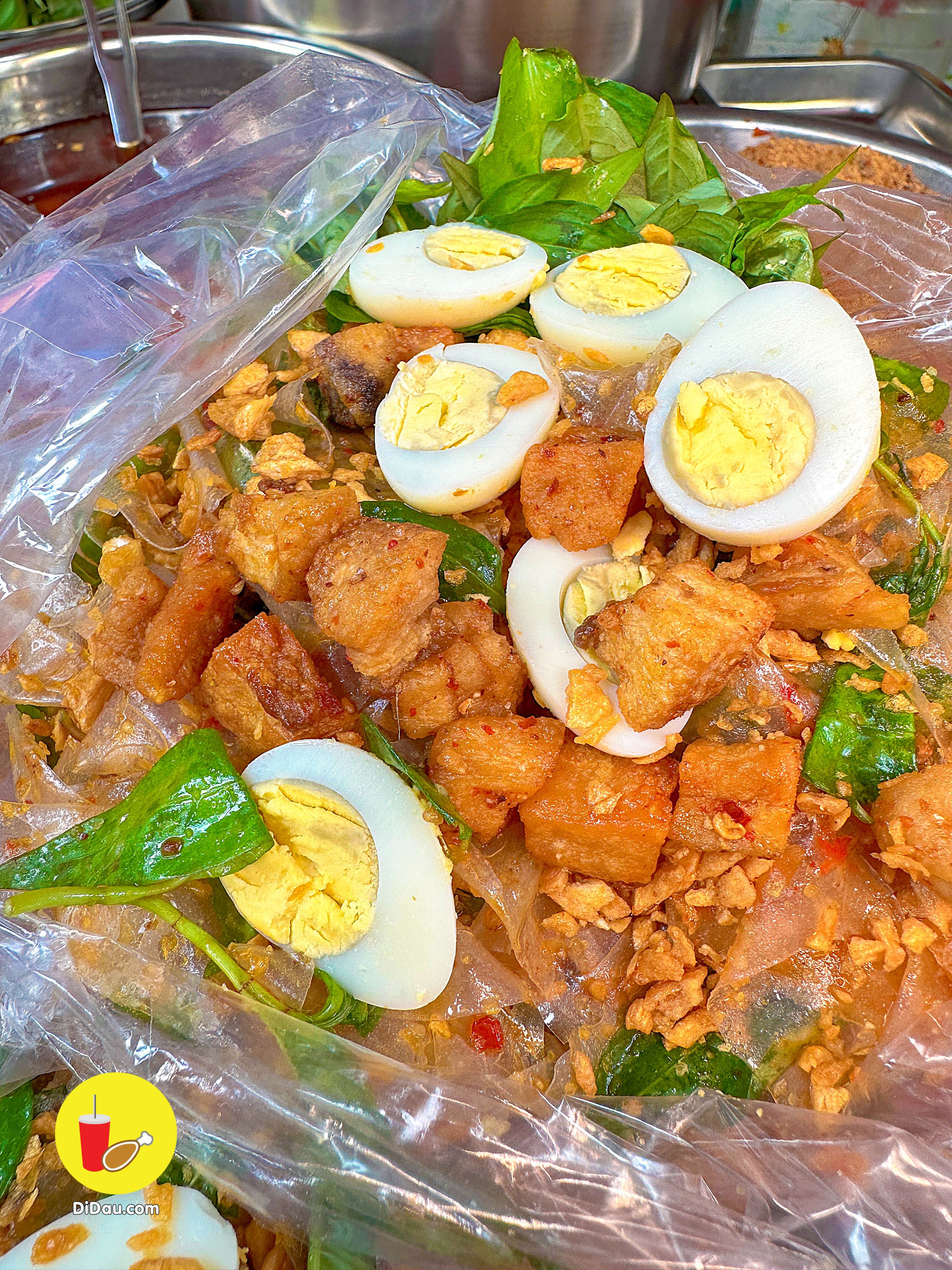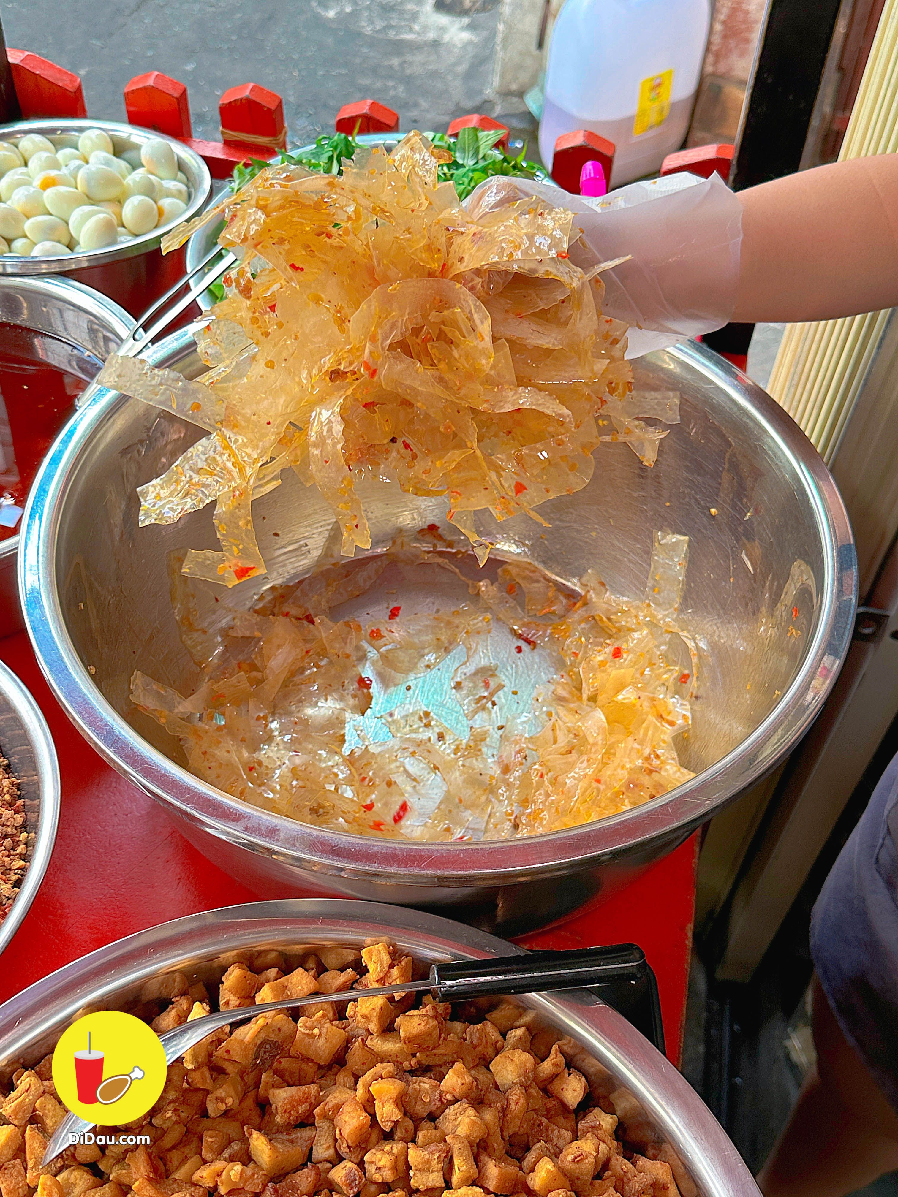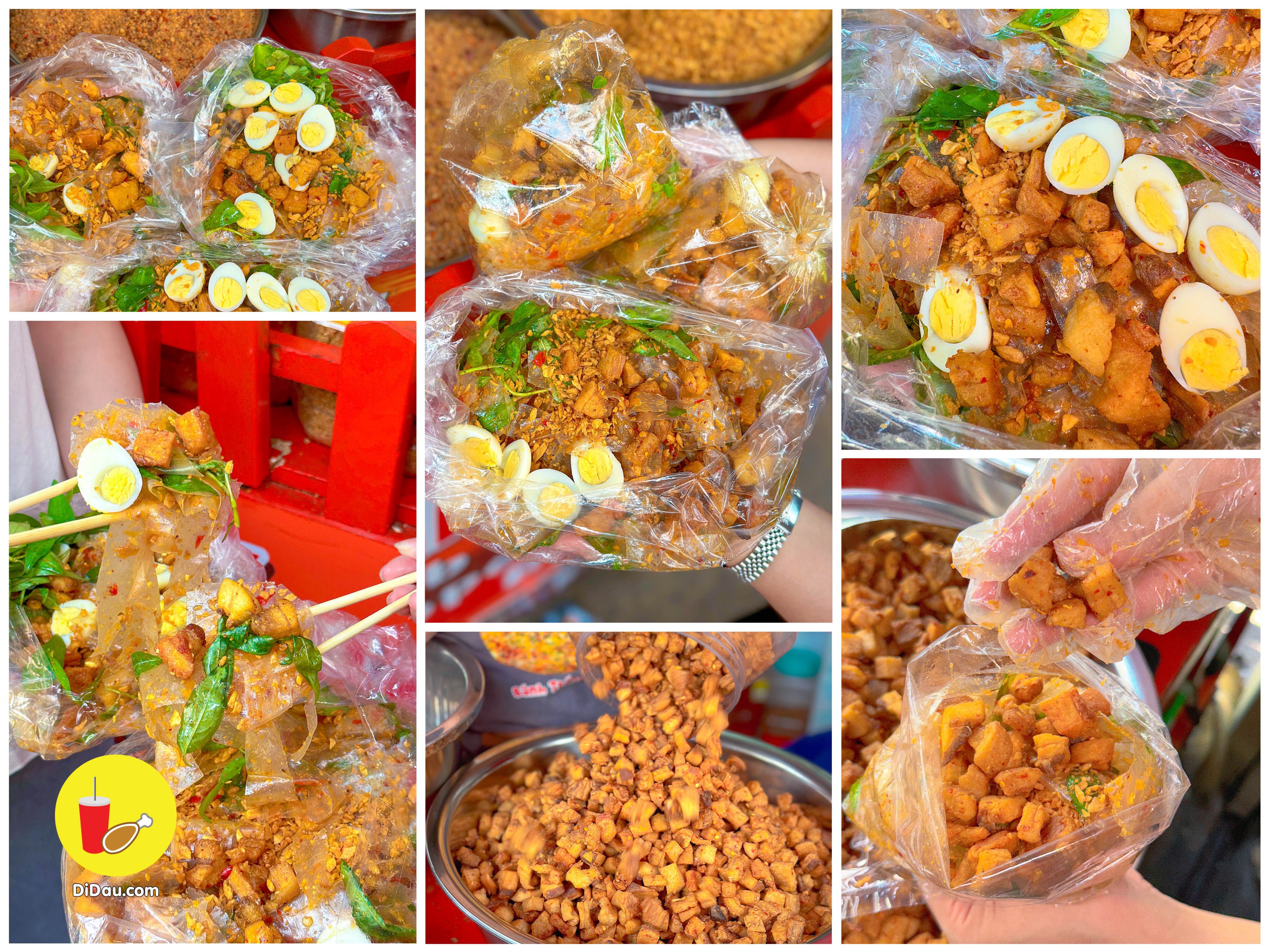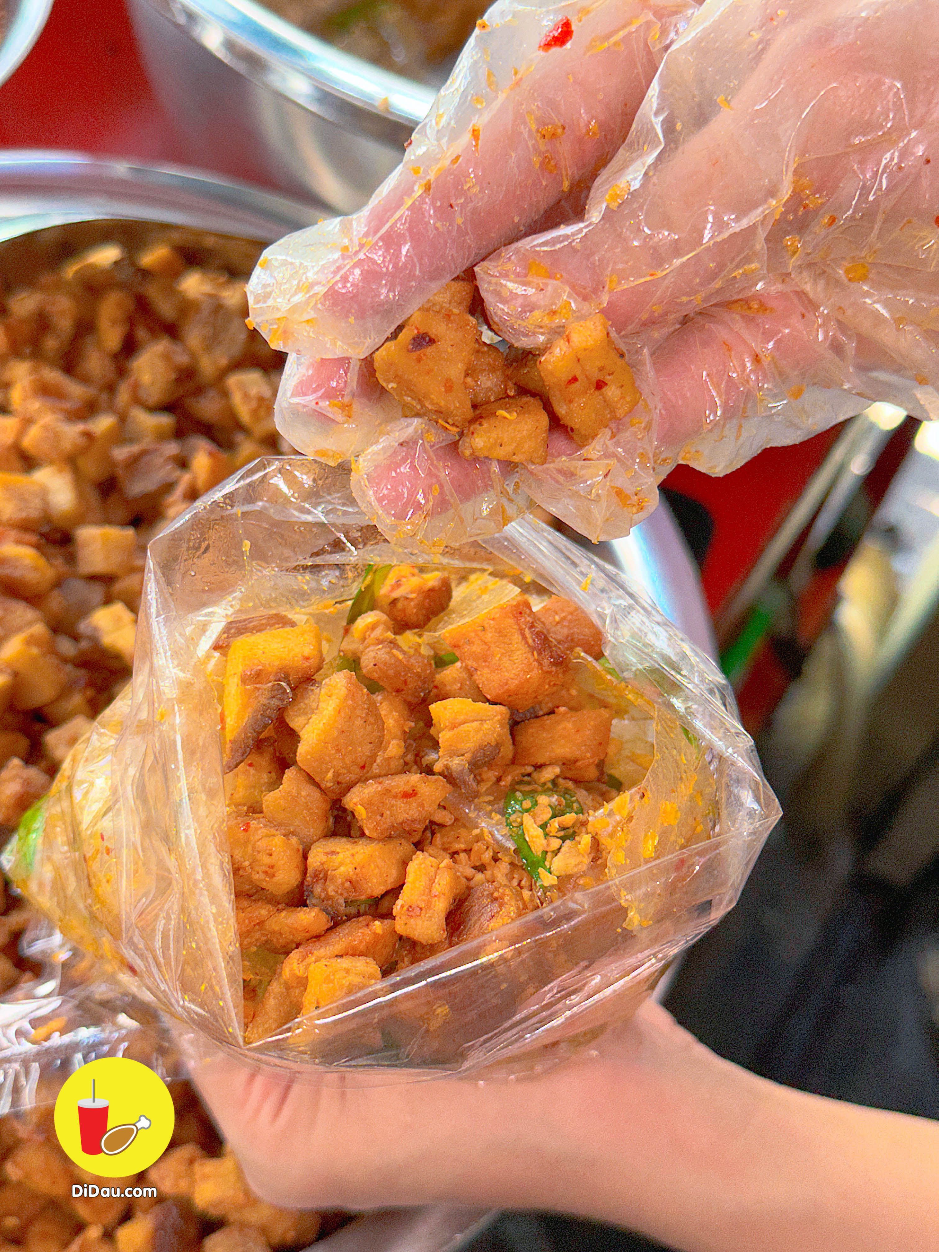 Bánh được trộn đều nên dẻo thấm đẫm gia vị, ăn kèm với tóp mỡ giòn tan “nhức nách”