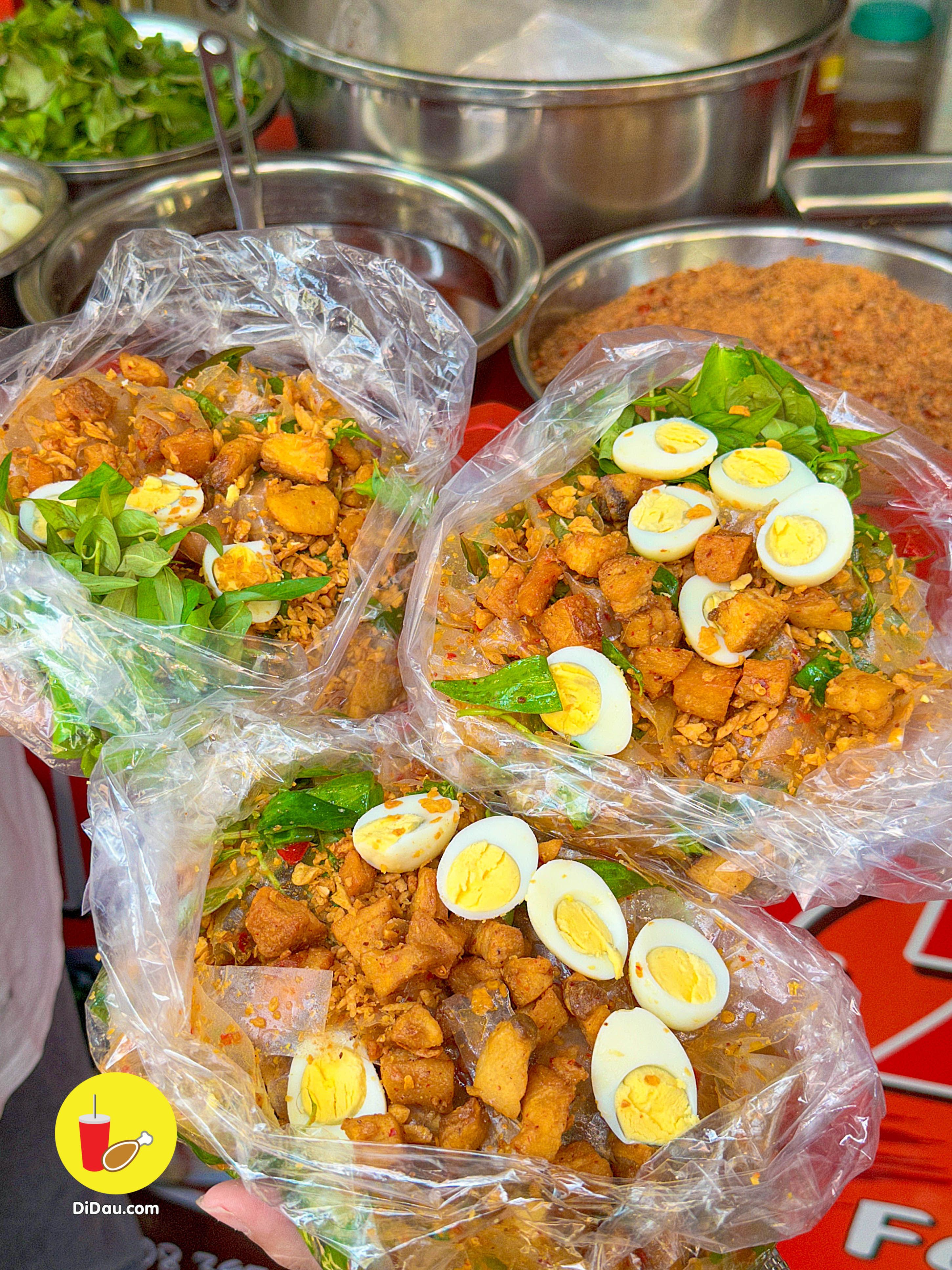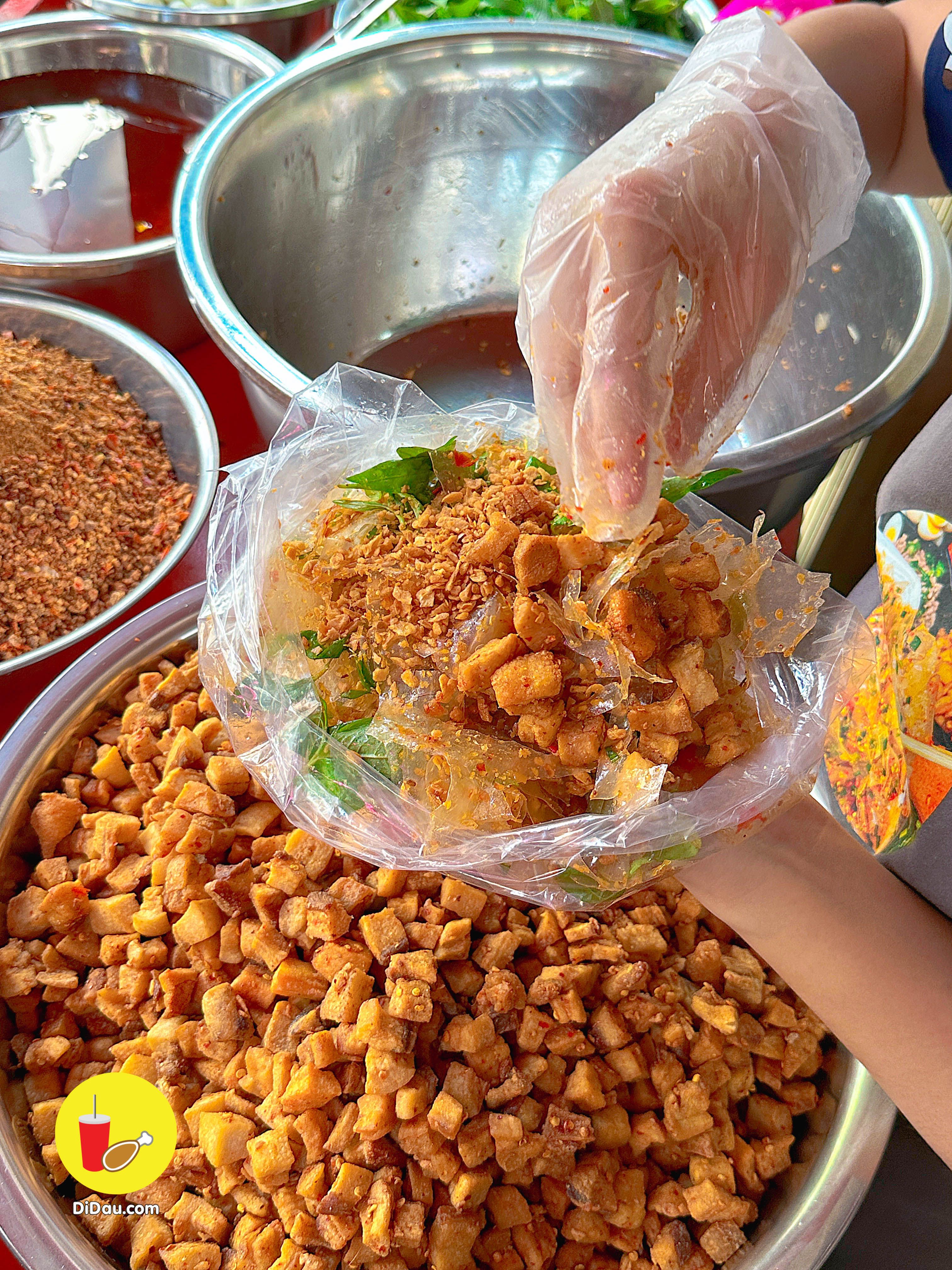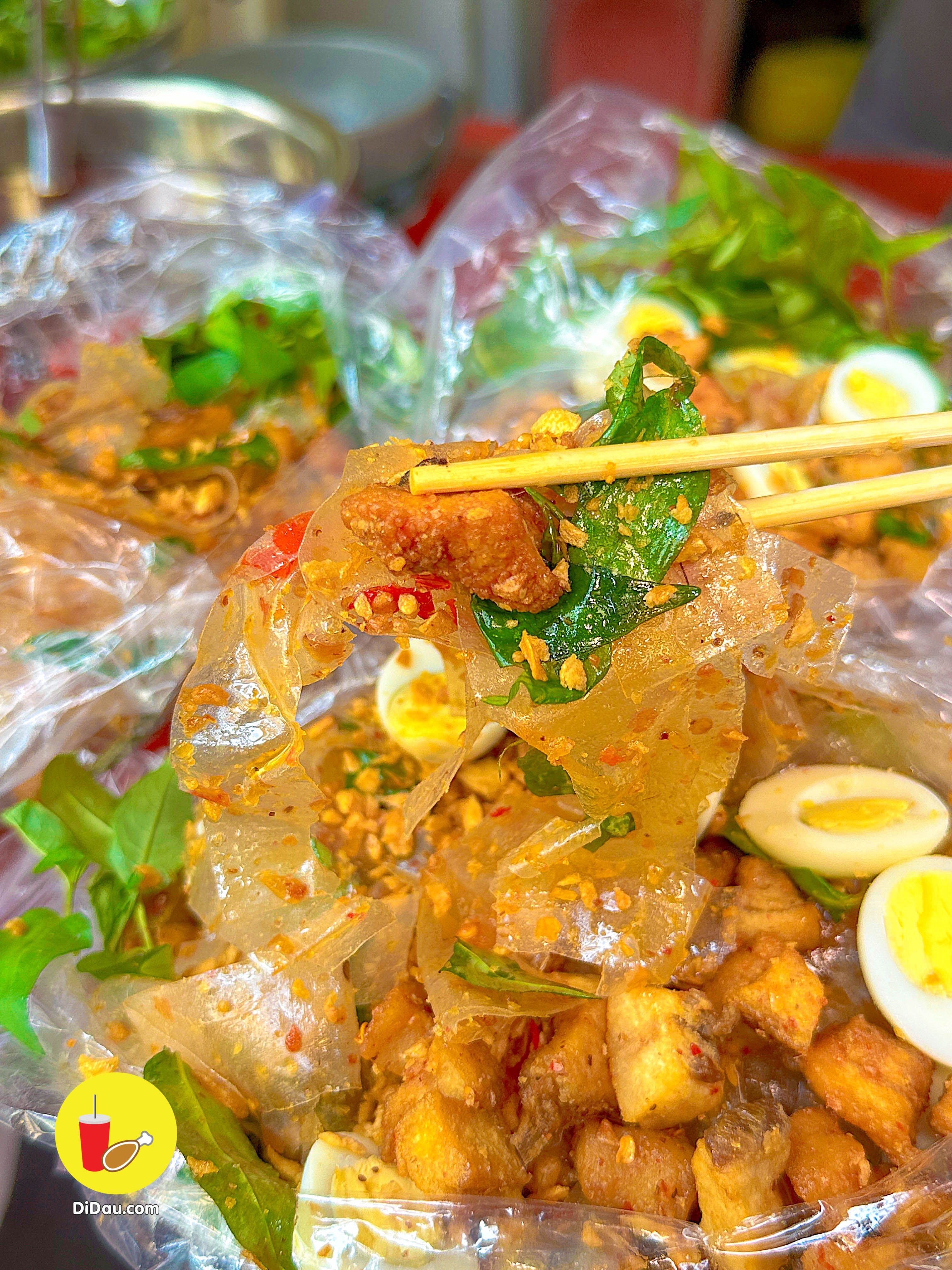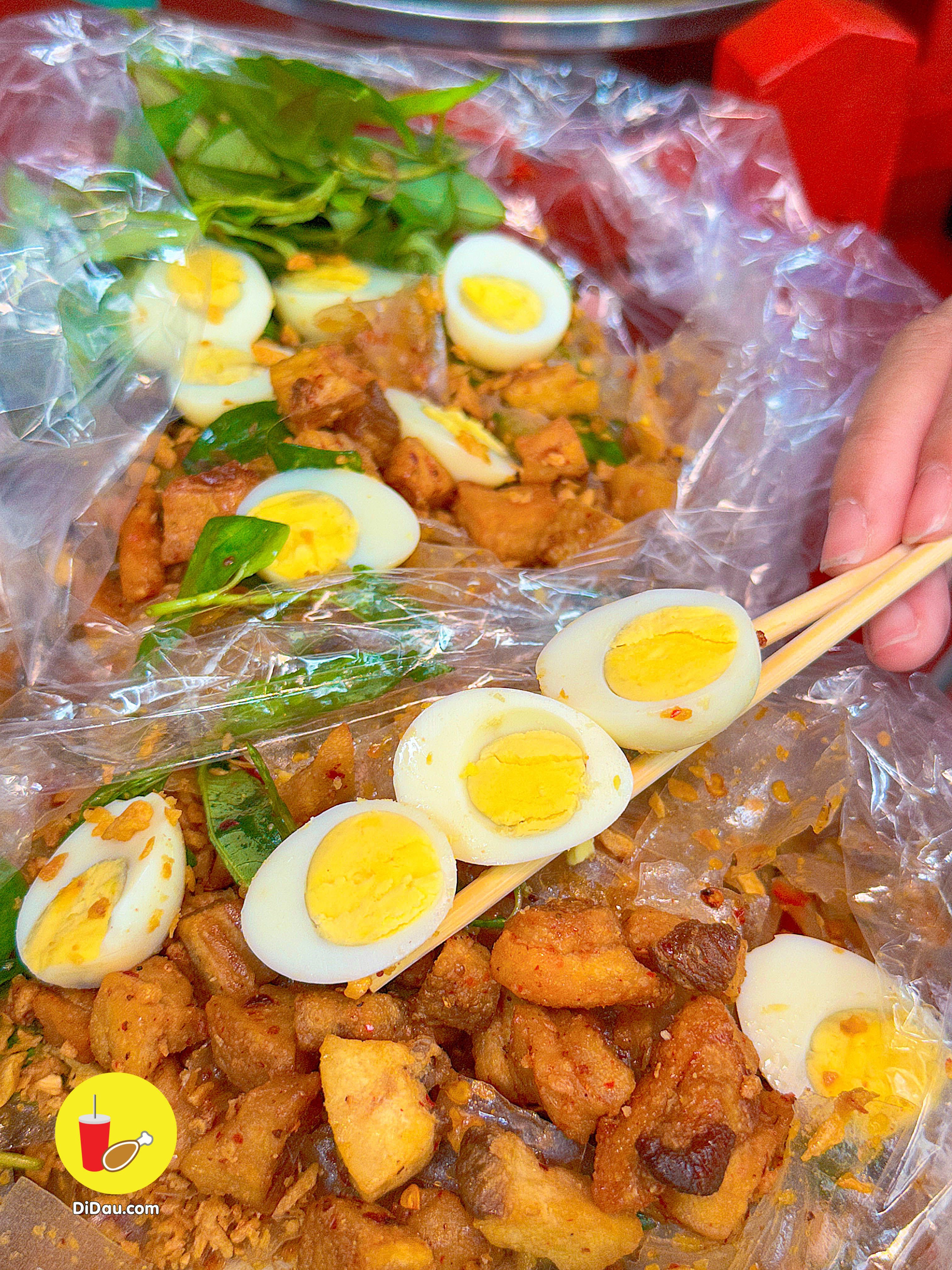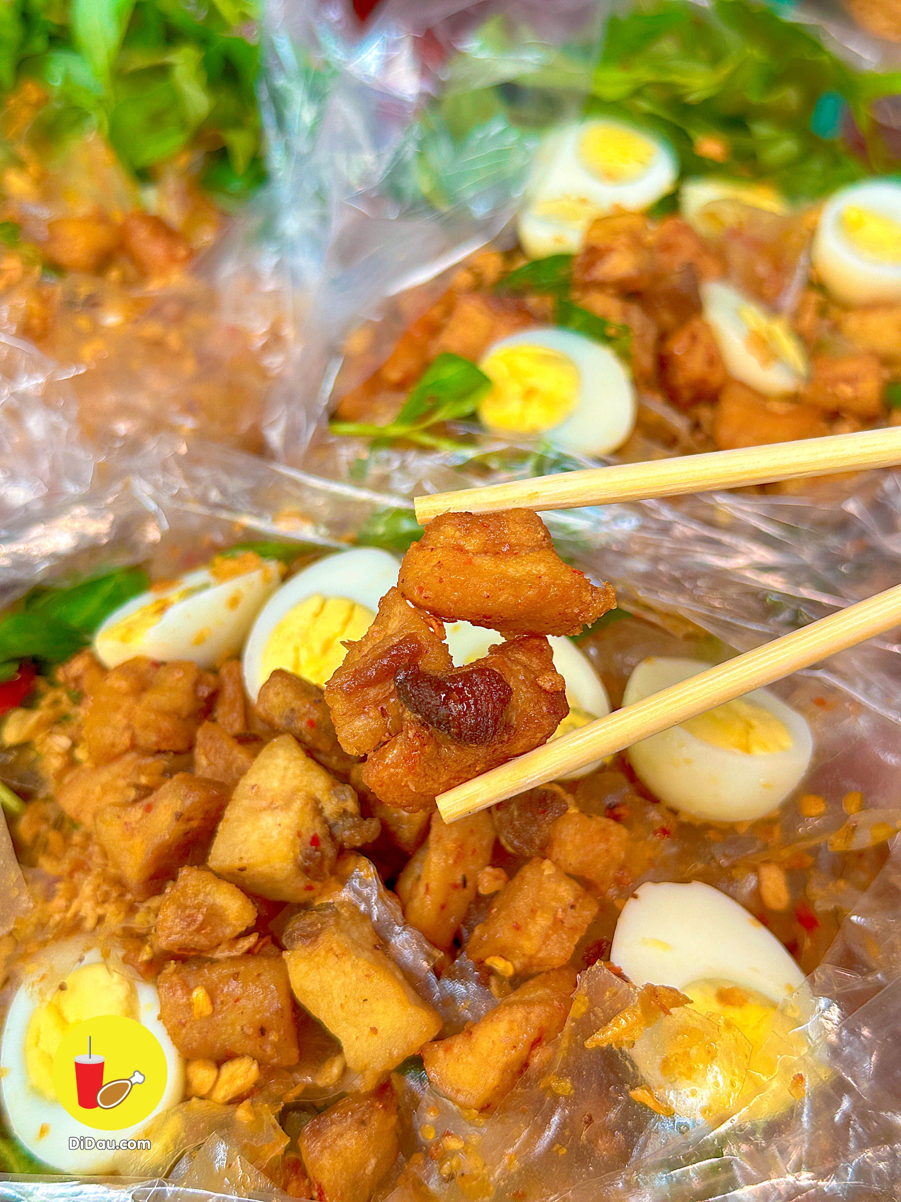 Bánh được trộn đều nên dẻo thấm đẫm gia vị, ăn kèm với tóp mỡ giòn tan “nhức nách”