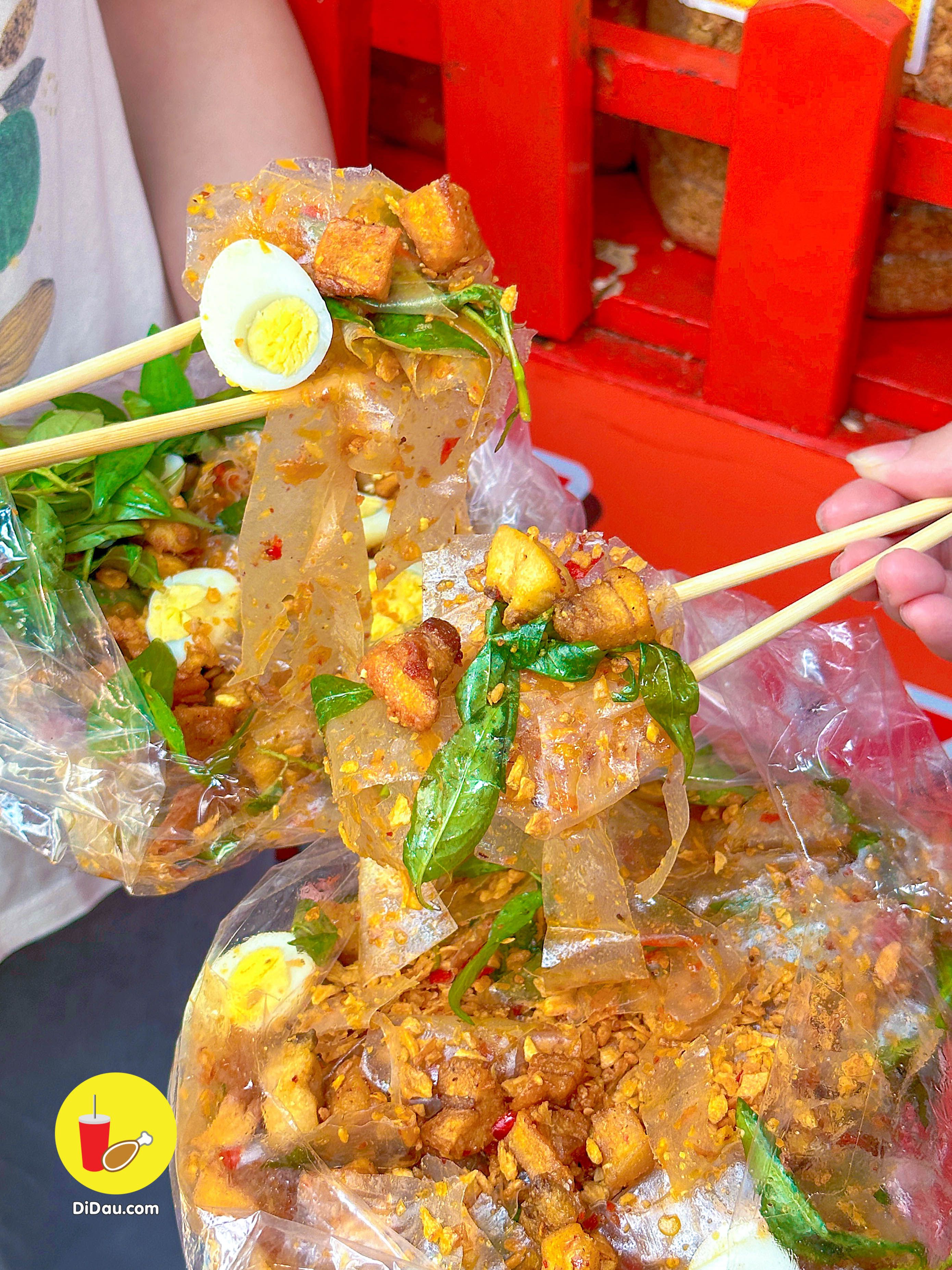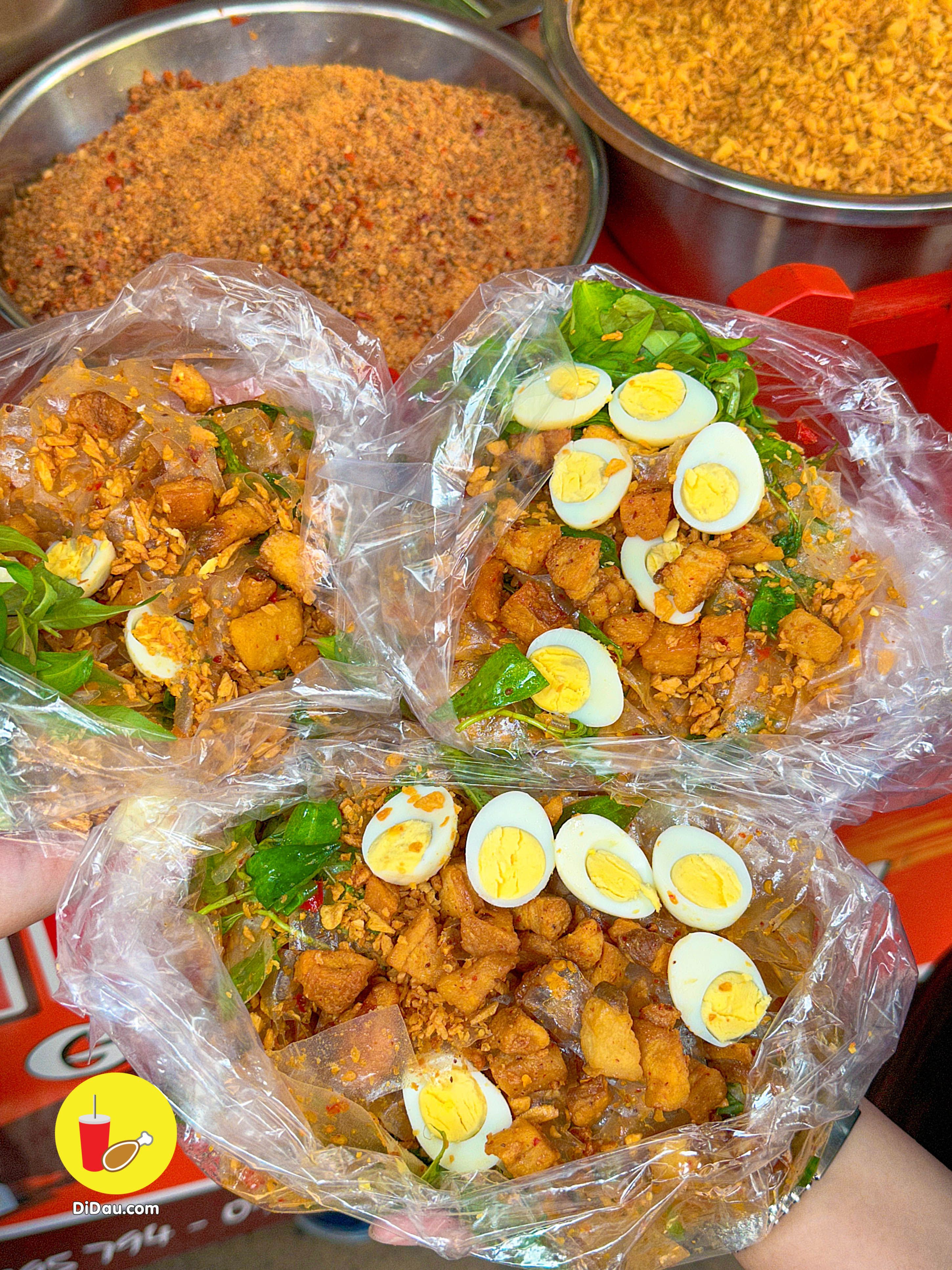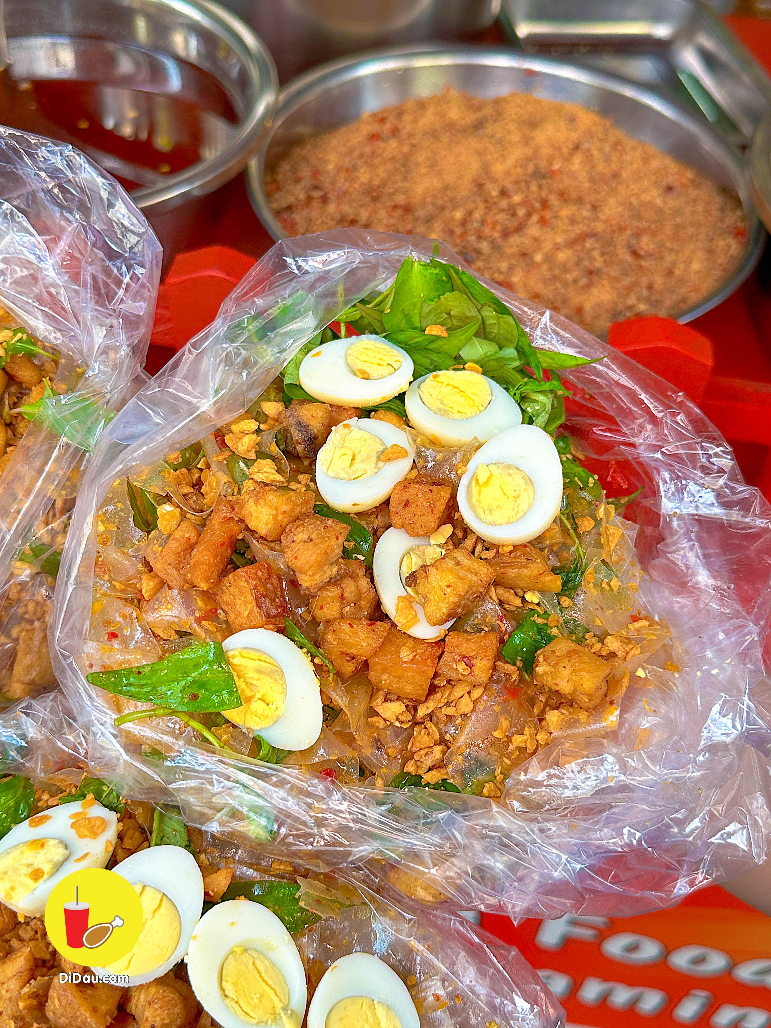 Một phần bánh tráng sate chất lượng chỉ 25K, có đủ các loại topping: tóp mỡ, trứng cút, hành phi, bánh tráng trộn gia vị, rau răm,….
