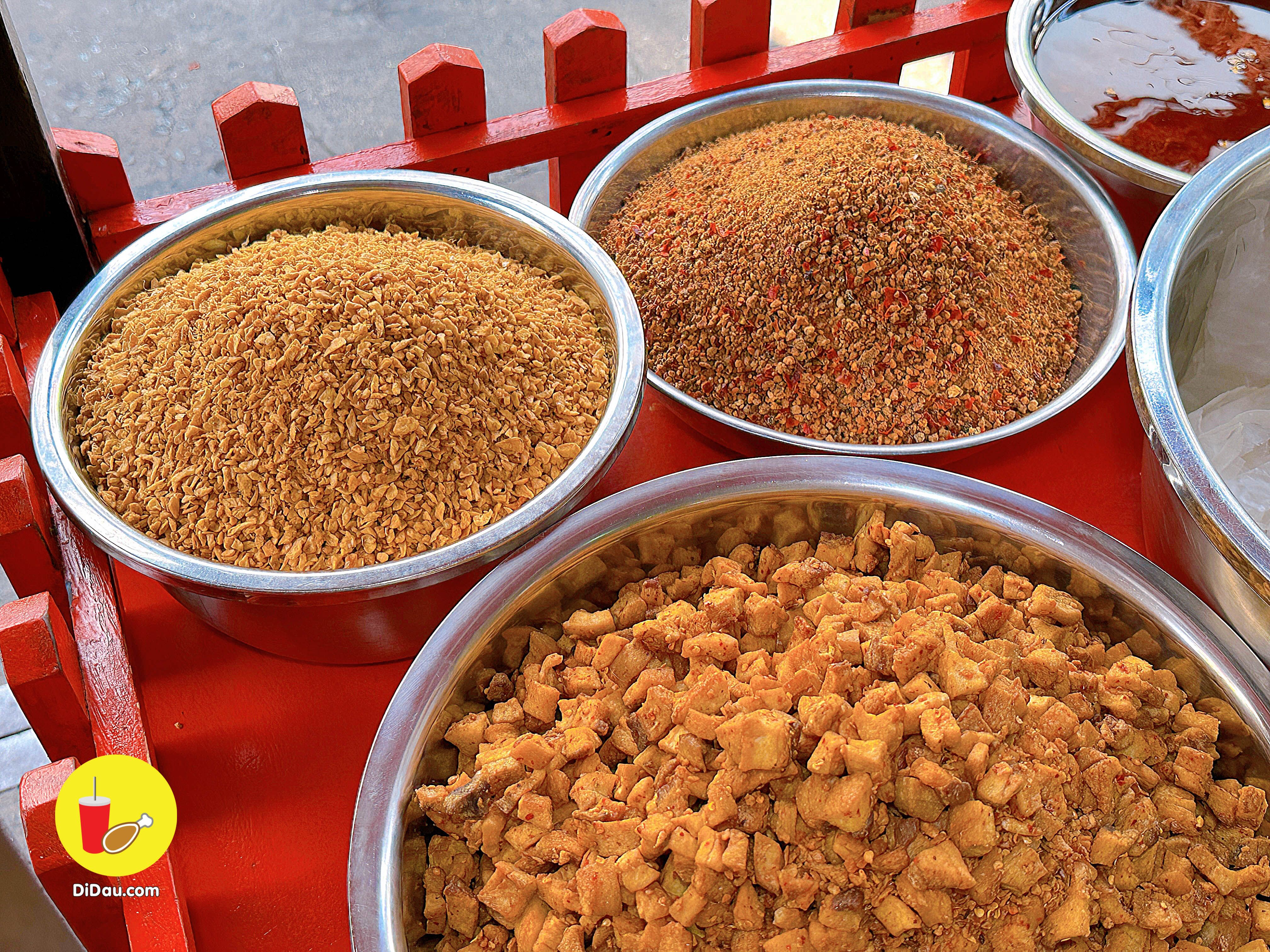 Nhưng mà điểm ăn tiền và độc đáo ở đây dù có bắt chước về làm cũng không giống được. Chính là thao tóp mỡ sấy giòn này nè !!!!
