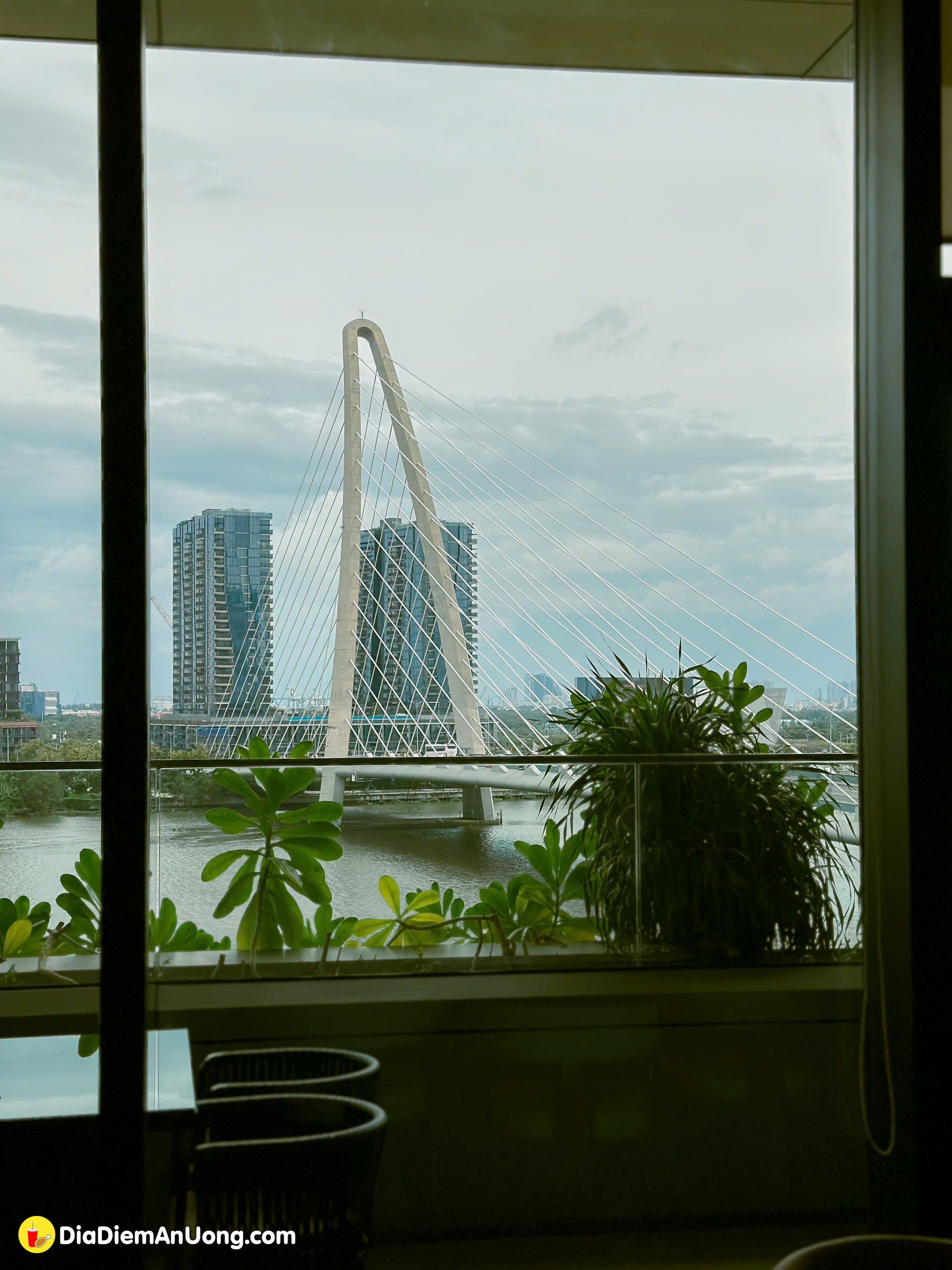 Đặc biệt, cơ sở mới này có chiếc view thẳng ra Cầu Ba Son cực kỳ đắc địa. Ngồi ăn mà cảm giác như đang thưởng thức một bữa tiệc trên nền kiến trúc hiện đại, sang trọng hết nấc!