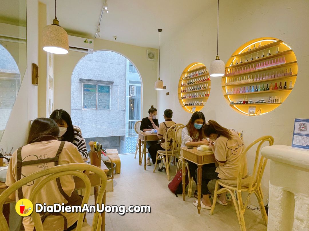 Chỗ này phải nói cực lý tưởng cho mọi người vừa được cafe vừa được làm đẹp. Vì quán tích hợp giữa tiệm nail cực xịn với quán cafe đẹp mê ly.