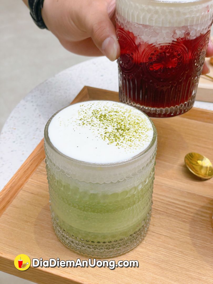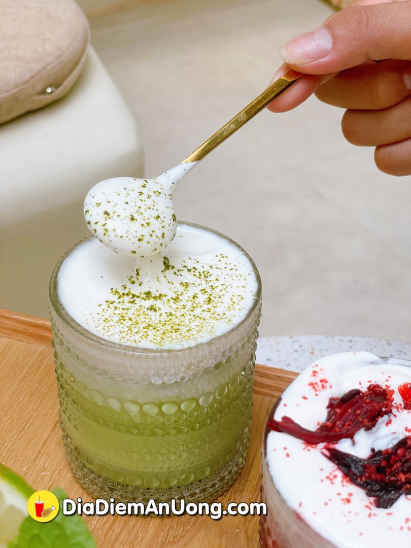 Ly matcha xanh mướt đậm vị trà xanh nguyên chất cùng lớp milkfoam bên trên. Đều mình thích ở đây chính là đường không quá nhiều, các bạn nhân viên sẽ cho mình một ly nước đường riêng để pha thêm, tuỳ sở thích.