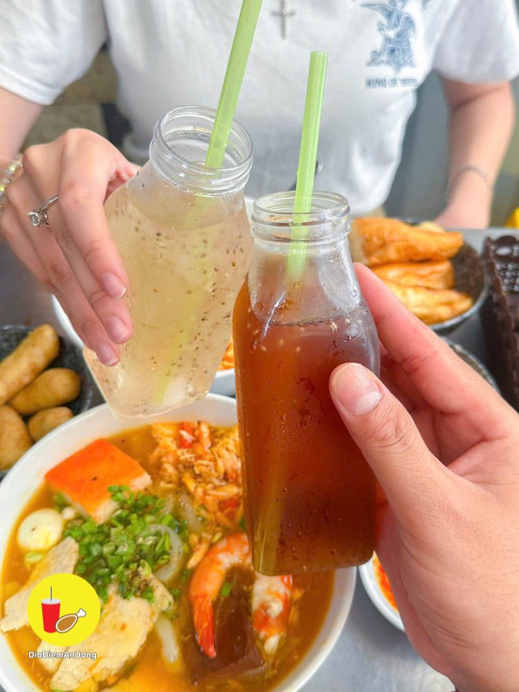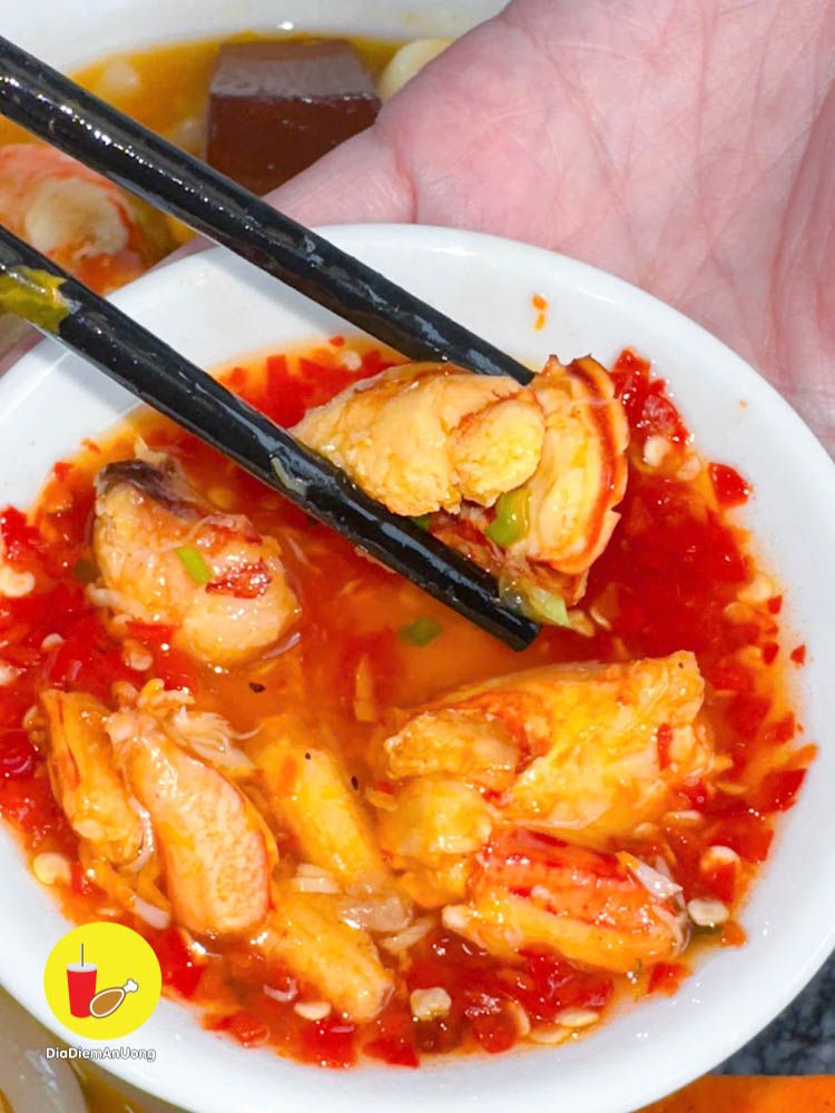 Chấm với nước mắm tắc chua chua ngọt ngọt, ta nói đỉnh lắm luôn. Mắm tắc quán pha hơi loãng nên mắm thơm, đậm đà không quá mặn đâu. Chấm hải sản hay thịt đều ngon