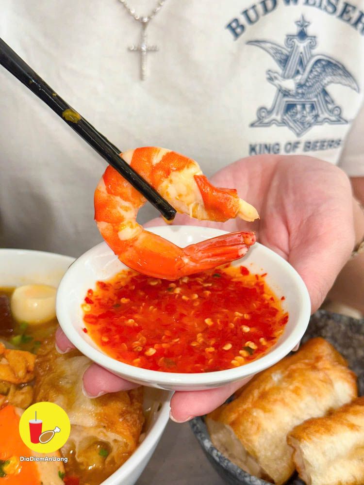 Tôm thì size cũng khá to, tôm đỏ tươi l. Ăn vào là thấy rõ thịt tôm tươi, ngọt siêu chắc