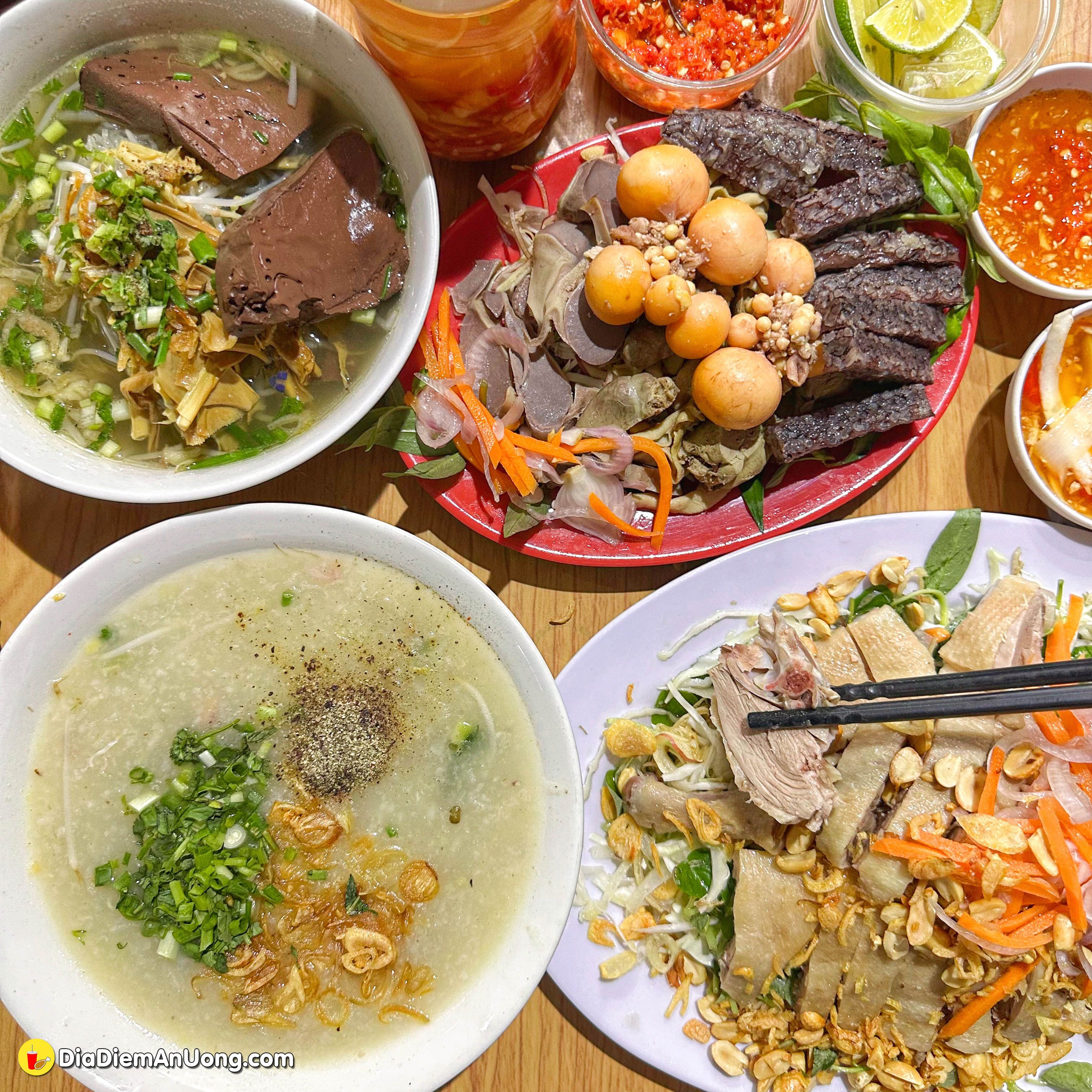 Ở quán có đầy đủ các loại lòng, cánh, chân, huyết nếp, trứng non và gỏi Gà nữa ngen.