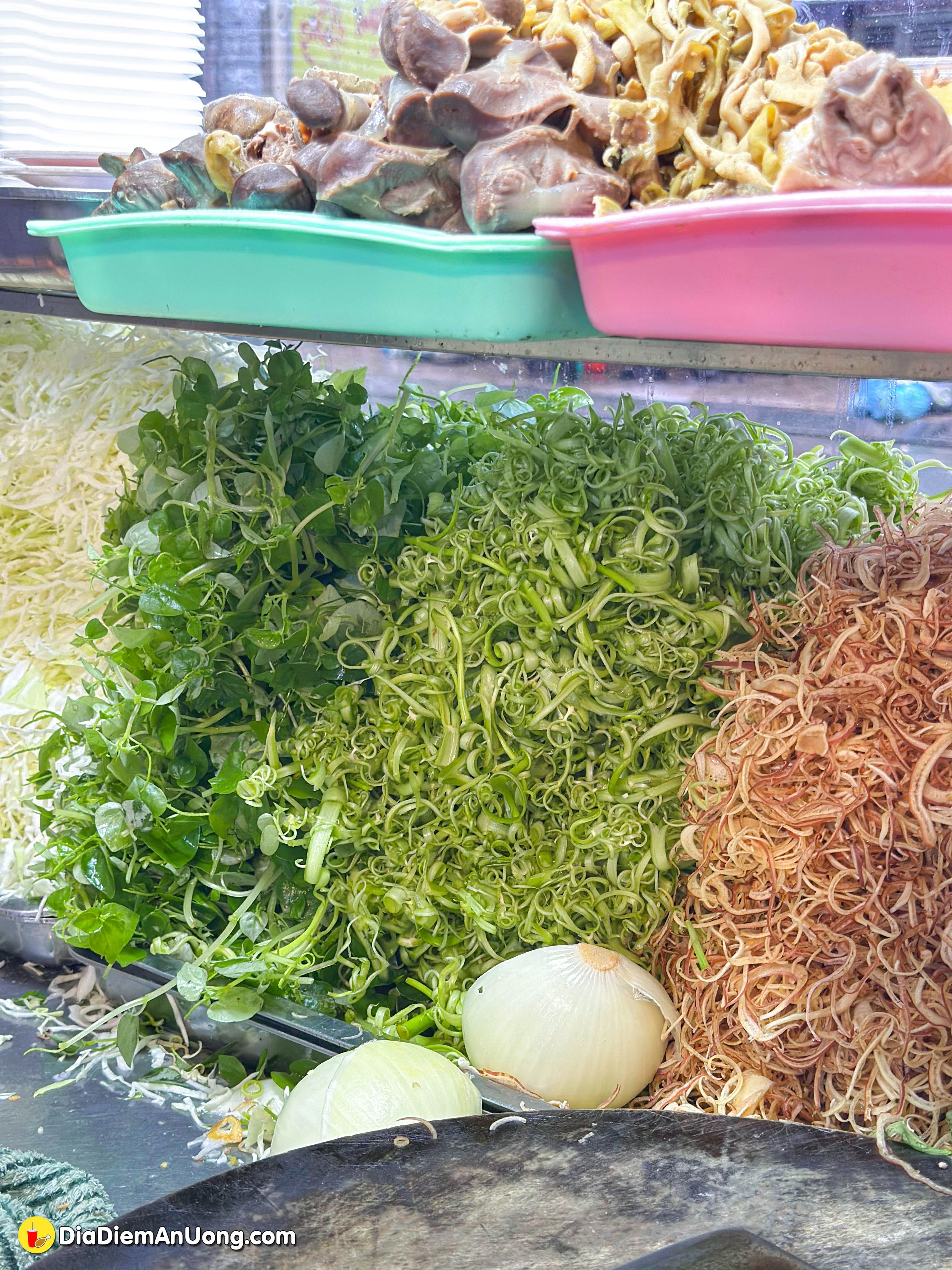 Nhìn cái tủ rau để trộn gỏi đủ loại là thấy uy tín liền, nào là: bắp cải, càng cua, bắp chuối, rau muống bào, rau thơm, hành tây bào mỏng và đồ chua hấp dẫn.