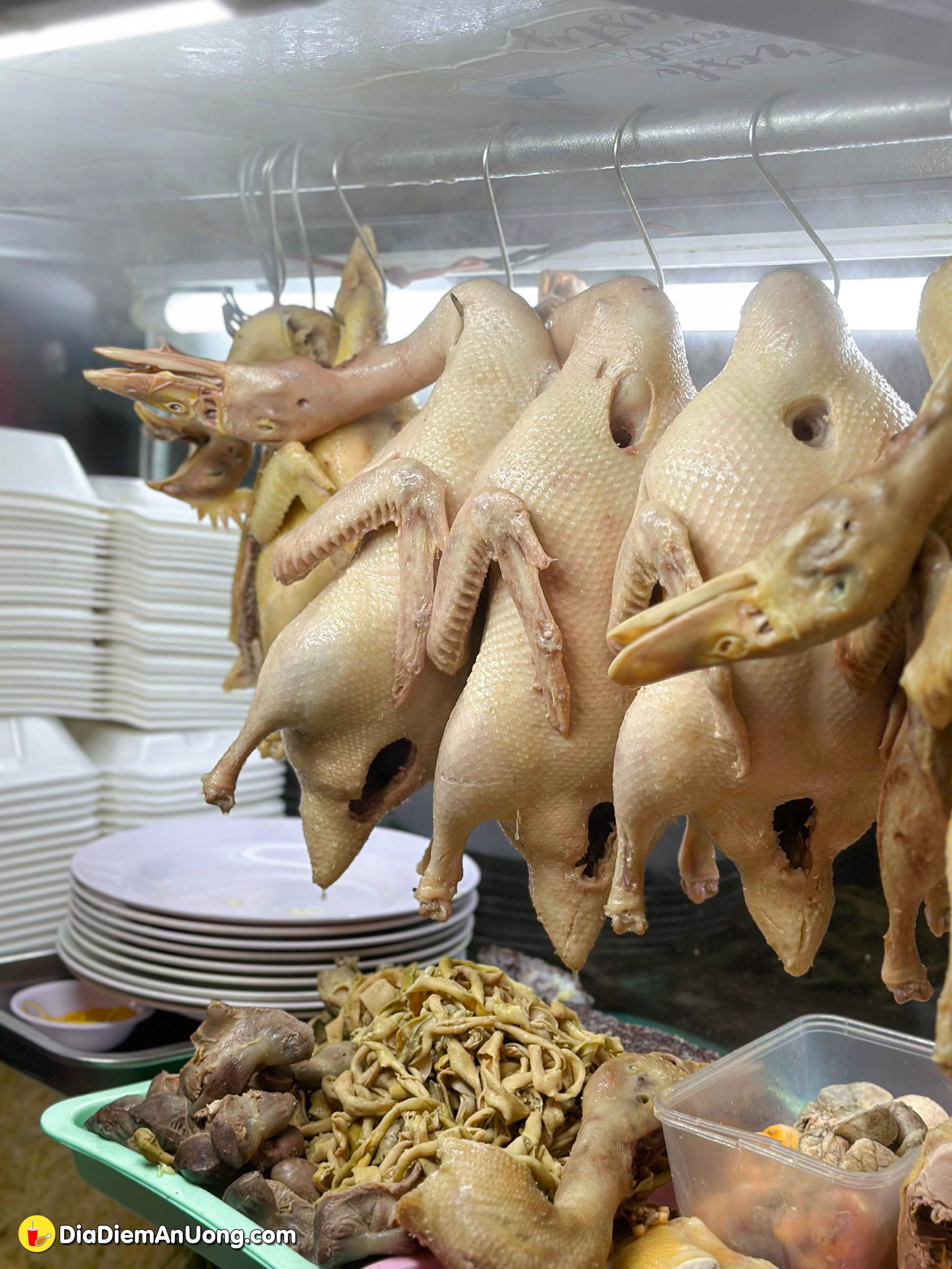 Món đầu tiên phải nhắc đến chính là thịt vịt. Vịt ở đây là vịt đồng, được luộc vừa tới, da óng mướt mắt mà không hề bị mỡ. Quan trọng là thịt vịt mềm, ngọt, có độ dai vừa phải chứ không bở hay dai nhách. Khi ăn, bạn sẽ cảm nhận được vị thịt tươi ngon, không hề có mùi hôi, chứng tỏ khâu sơ chế được làm rất kỹ lưỡng.
