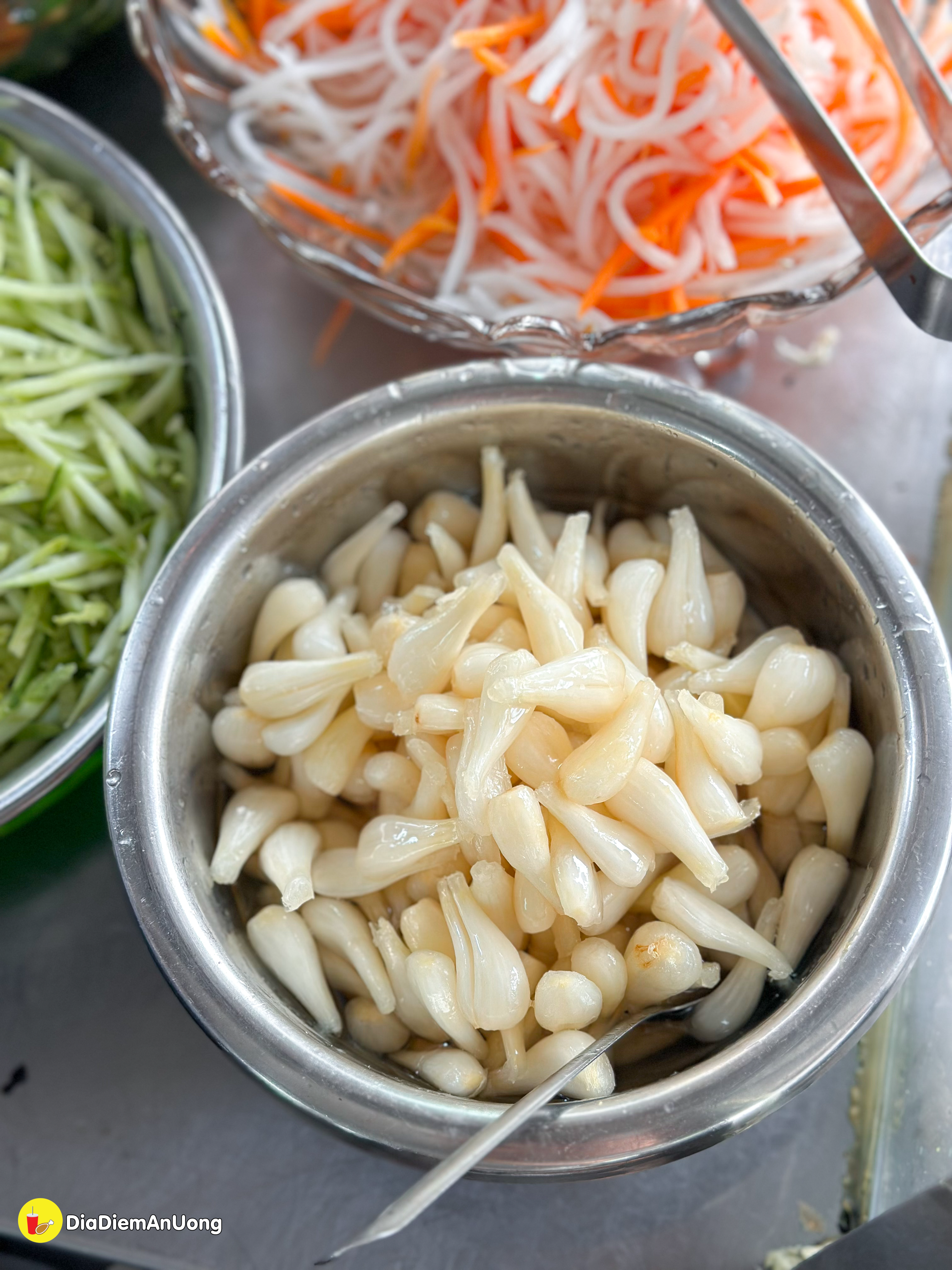 Mê nhất ở đây với mình chắc là củ kiệu ngâm, củ kiệu giòn chua chua ngọt ngọt ăn cùng với bún nữa là chuẩn bài.