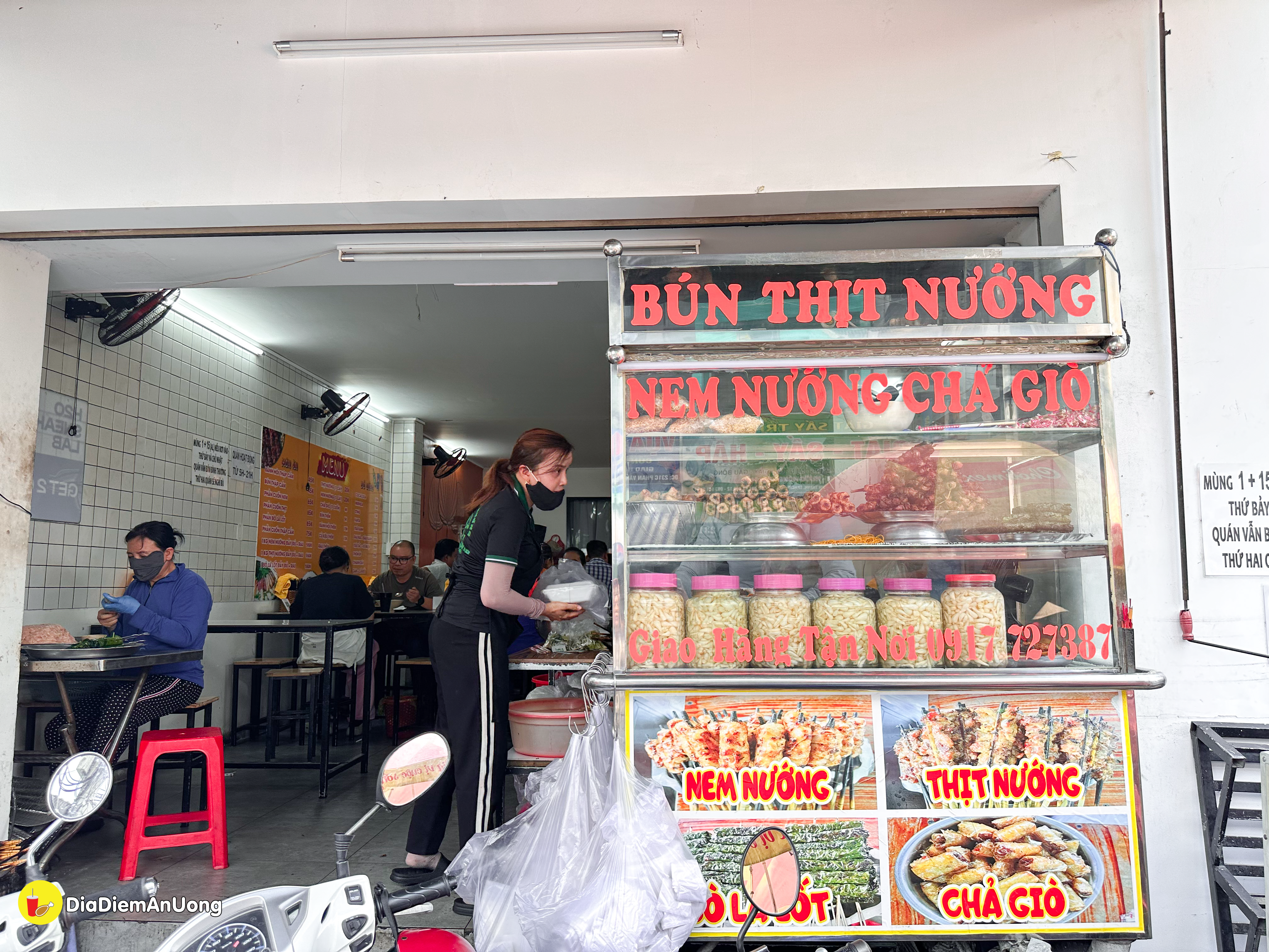 uán tọa lạc tại 182 Phan Văn Trị, Phường 12, Quận Bình Thạnh. Không gian quán đơn giản, sạch sẽ và thoáng mát. Đặc biệt ở quán bún thịt nướng ăn kèm với củ kiệu hấp dẫn!