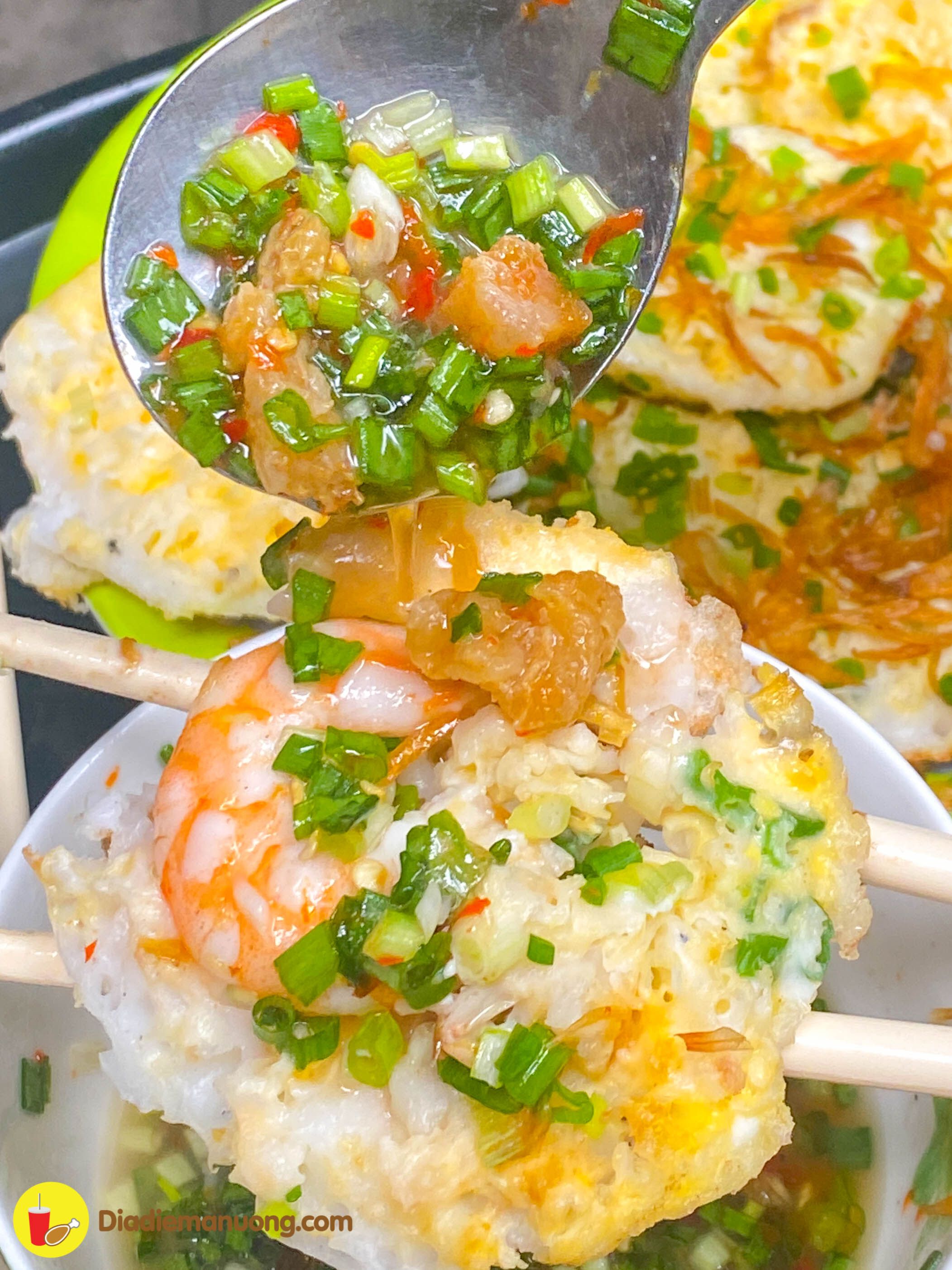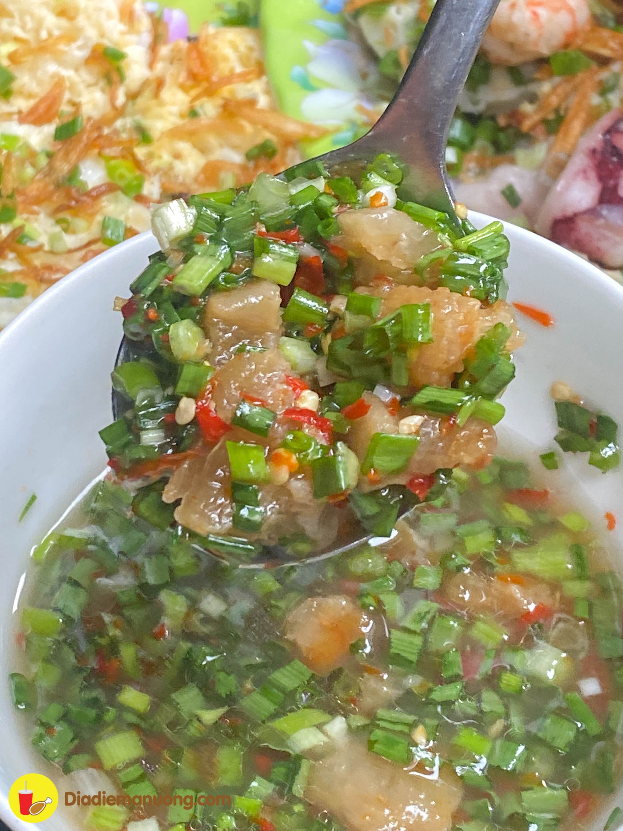 Đặc biệt là nước mắm của Má pha là pha bằng nước dừa tươi nên khi ăn vị ngọt rất dễ chịu, đan xen là tí vị mặn nhè nhẹ ngon lắm luôn. Còn có mỡ hành tóp mỡ nữa nha trời ơi, ai ăn không ghiền thì thôi chứ tui ghiền á :))