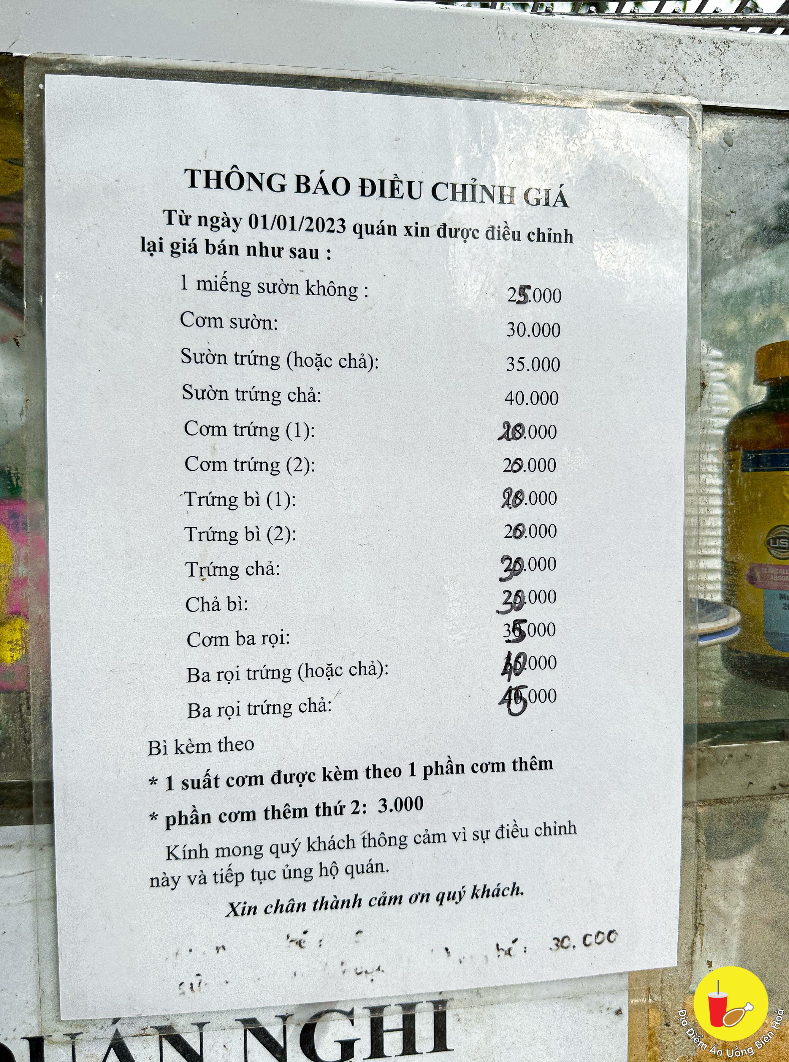Cơm thêm 3k Trà đá miễn phí.