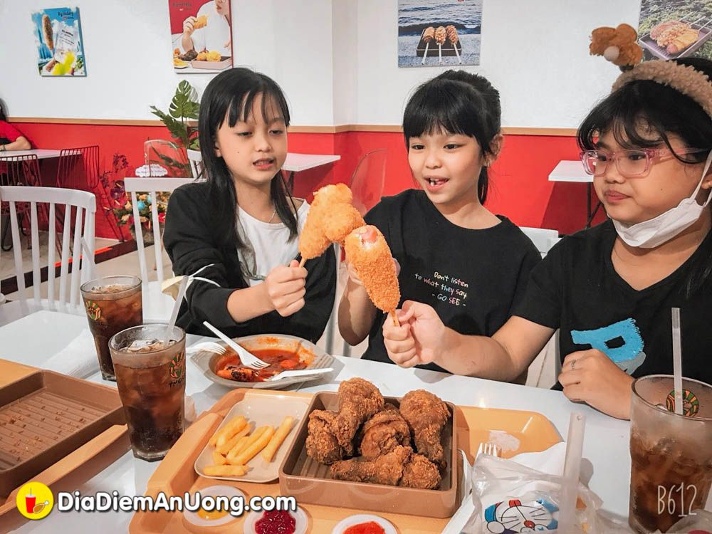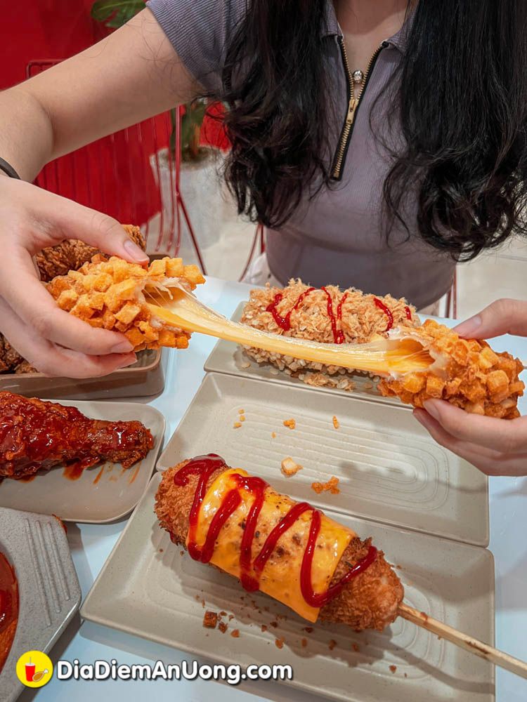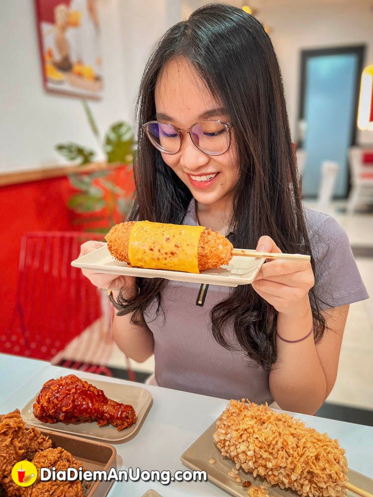 Ngoài các món Hotdog thì ở đây gà rán cũng hơi bị xịn. Vừa có gà rán truyền thống vừa có kèm với các loại sốt như sốt cay, tương tỏi, sốt ngọt…và chỉ từ 34k có thêm sốt thì 39k.