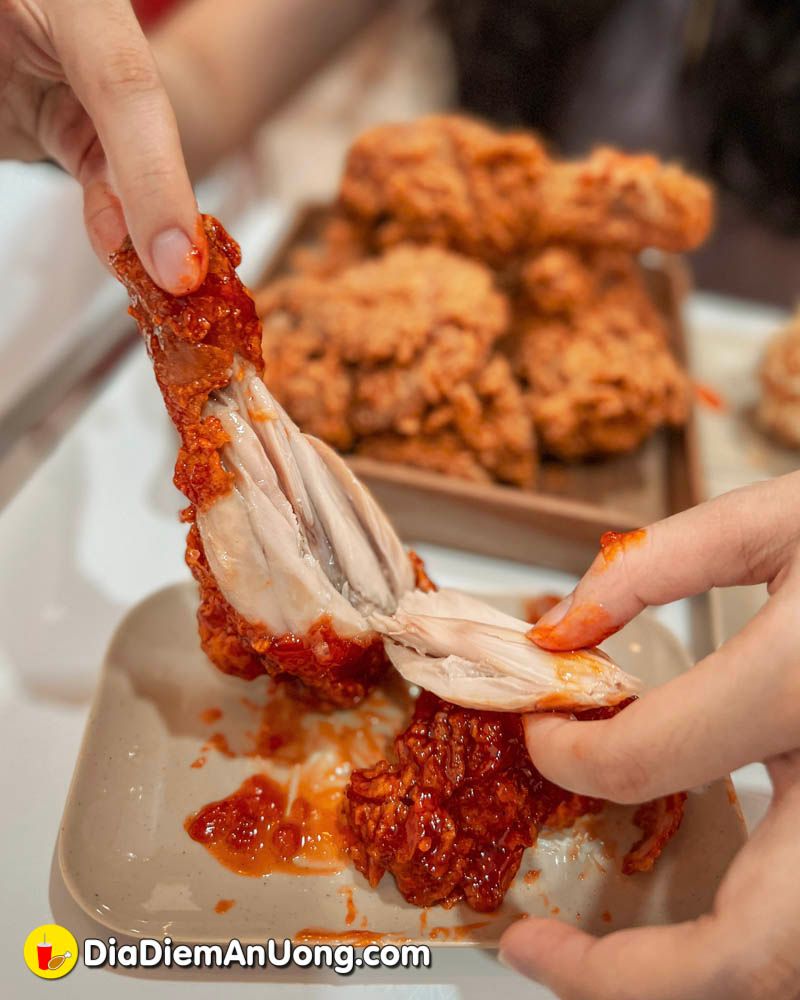 Gà rán lớp da giòn rụm ráo dầu còn thịt bên trong vẫn mềm và mọng nước. Mình thử sốt cay thì thấy vị cay rất êm không quá gắt và đặc biệt là thấm đều vào lớp da rất đậm đà.