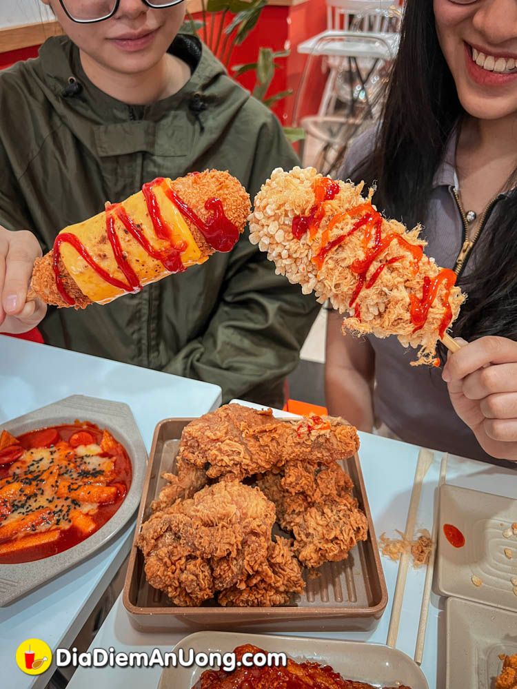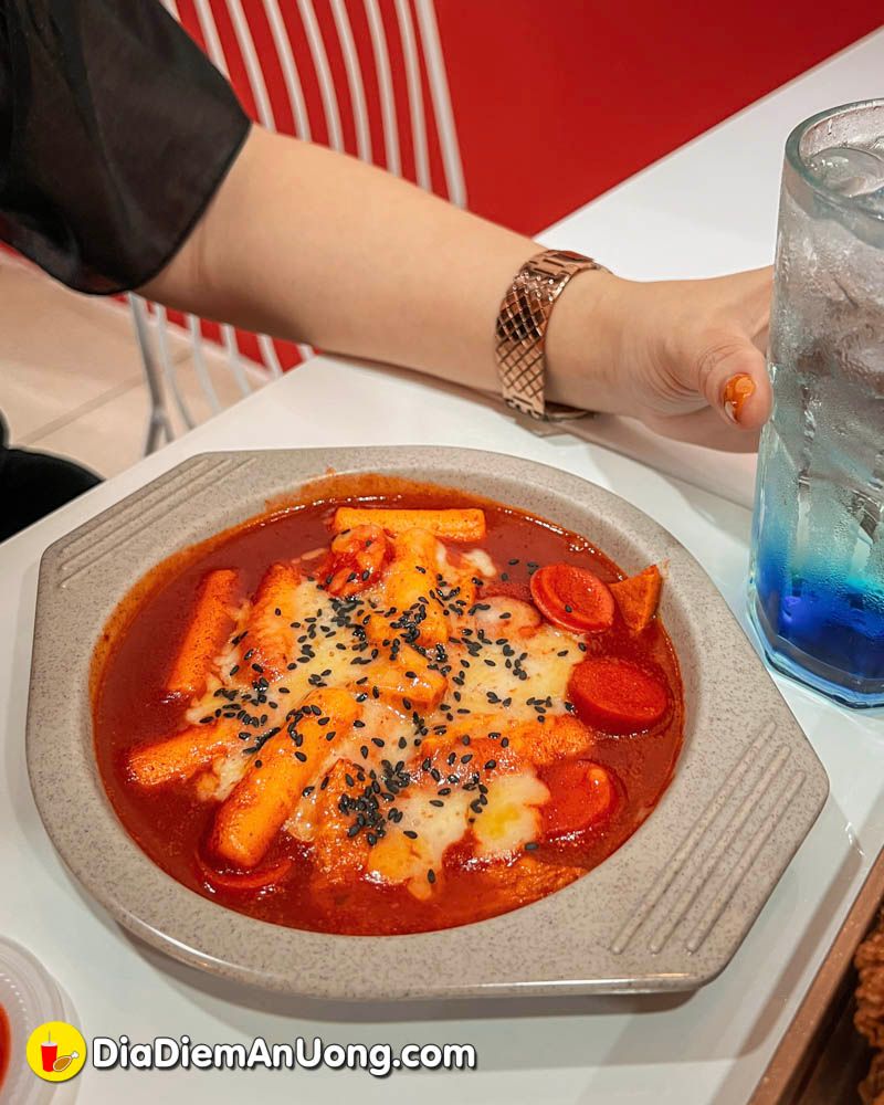 Ở đây xào Tokbokki với sốt cay cực kỳ ngon. Hương vị đậm đà không quá ngậy gây ngán dù lớp phô mai cho rất nhiều phía trên. Nhân bên trong còn có chả cá Hàn Quốc cực chất lượng.