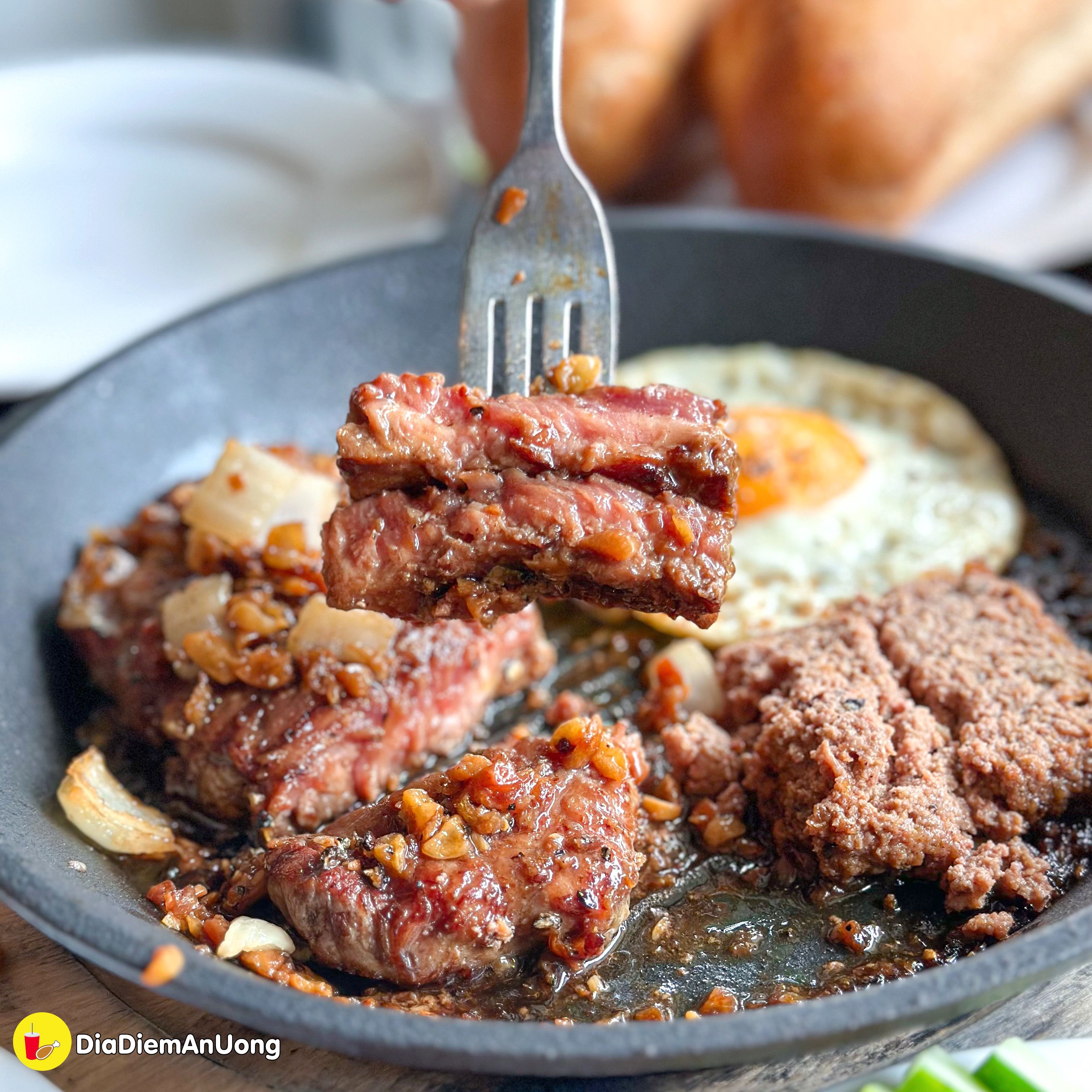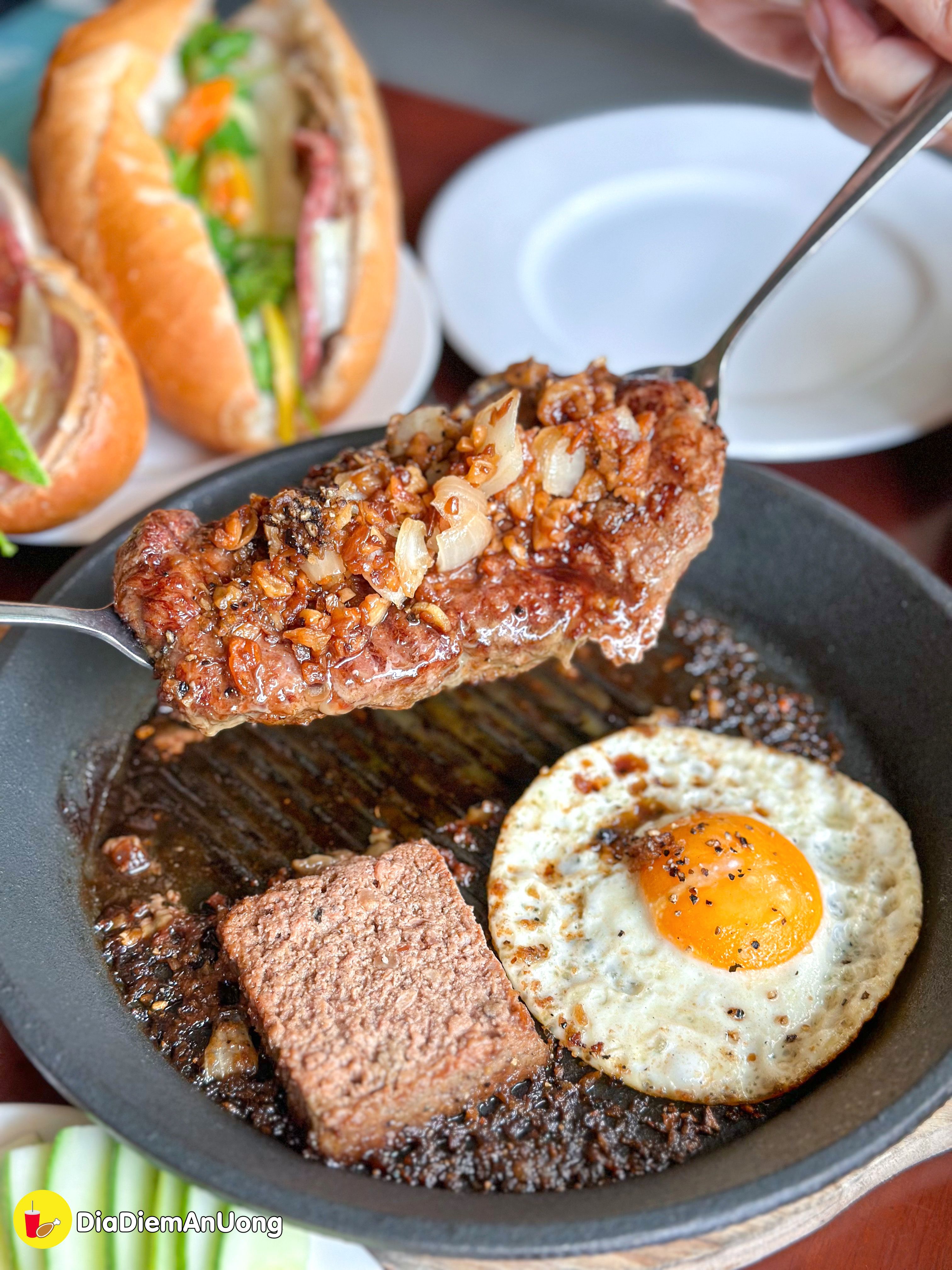 Ngoài ra bánh mì chảo của là món must try ở đây nha, phần sốt đậm đà, thơm phức kích thích vị giác lắm. Thịt bò mềm, mộng nước. Nói chung 10đ không có nhưng ngen.
