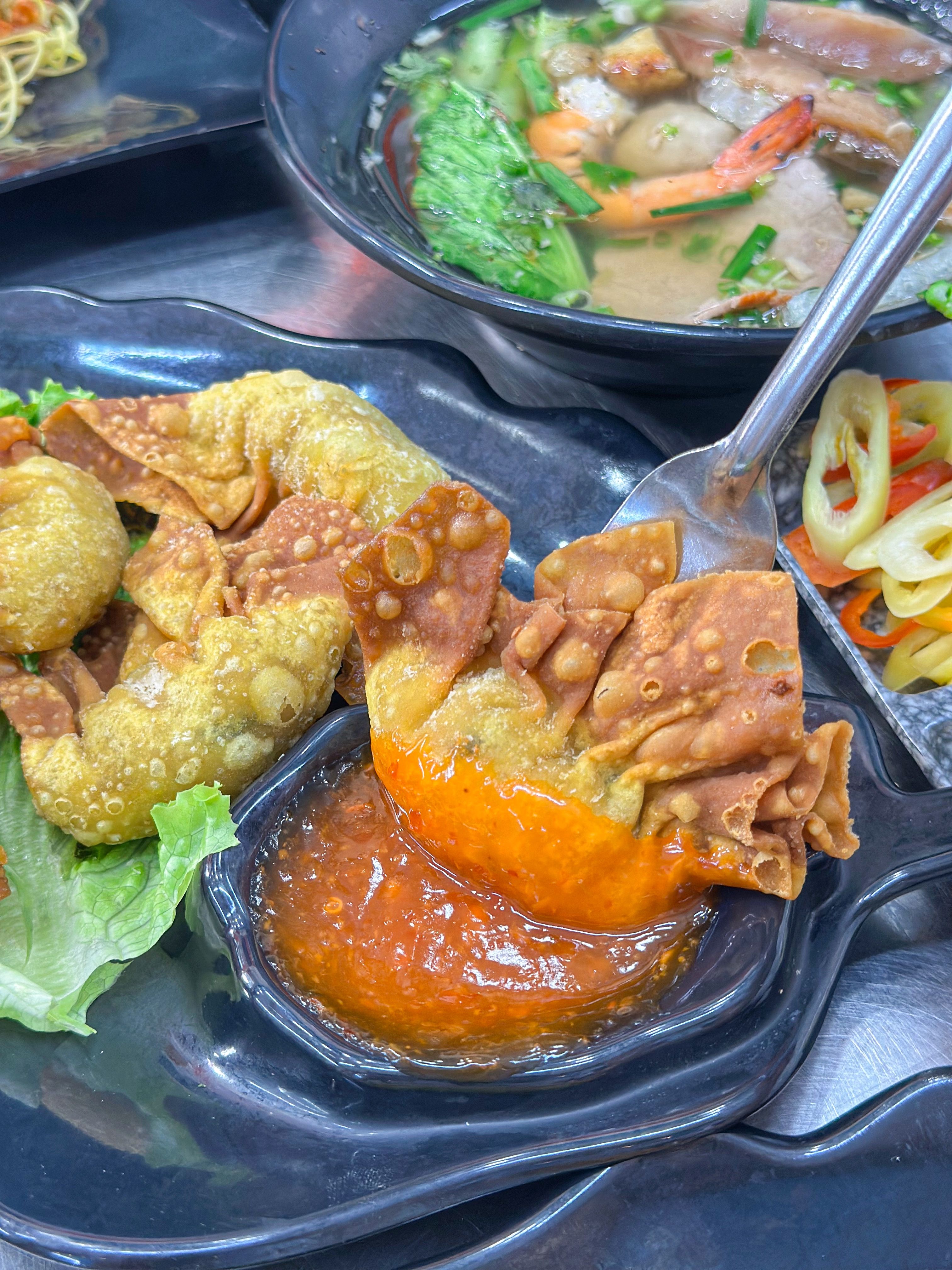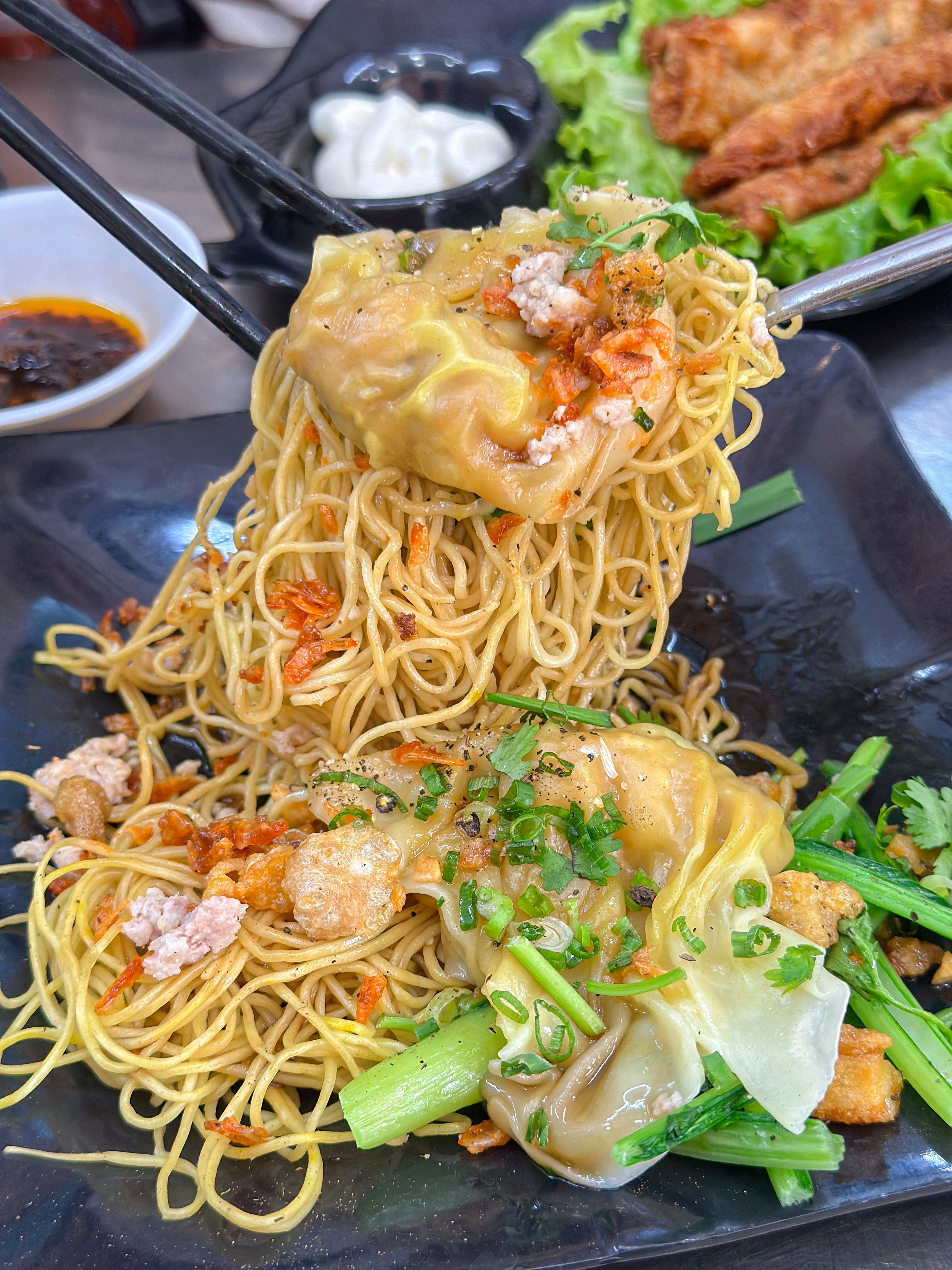 Sủi cảo da mềm, dai, tôm giòn rất chất lượng. Ăn khô sẽ có thêm sốt dầu hào khá bắt vị, nhưng lại đây mọi người nhớ gọi 1 đĩa sủi cảo chiên nha. Phần vỏ được chiên giòn rụm, chấm với tương xí mụi ăn dính lắm á.