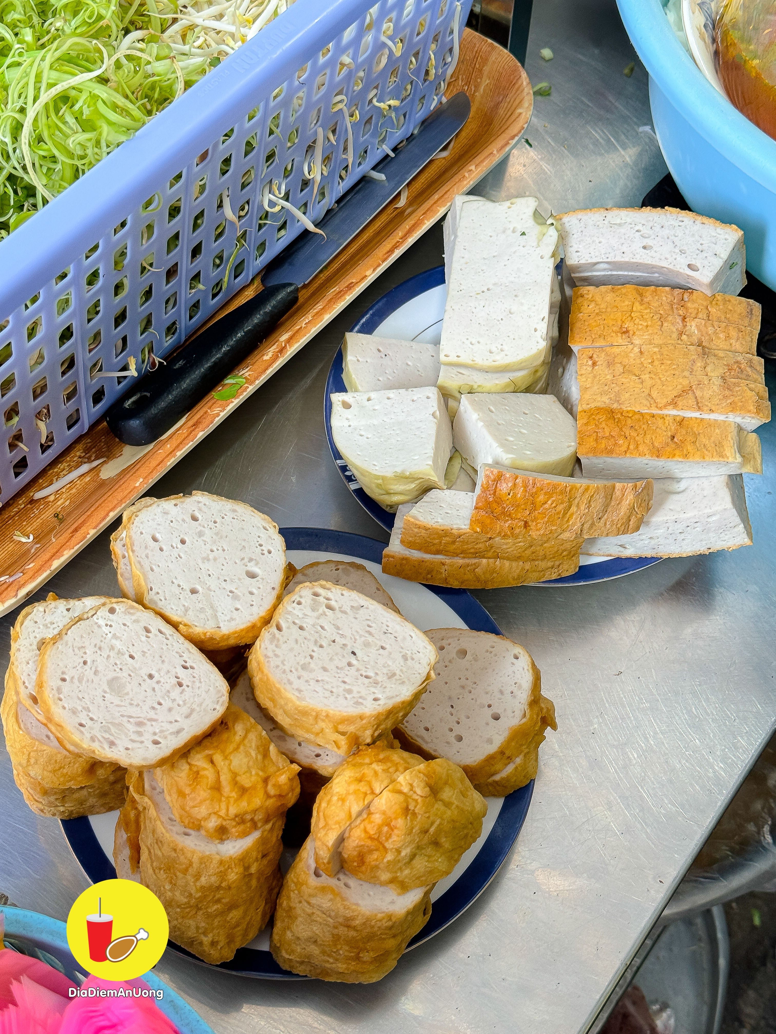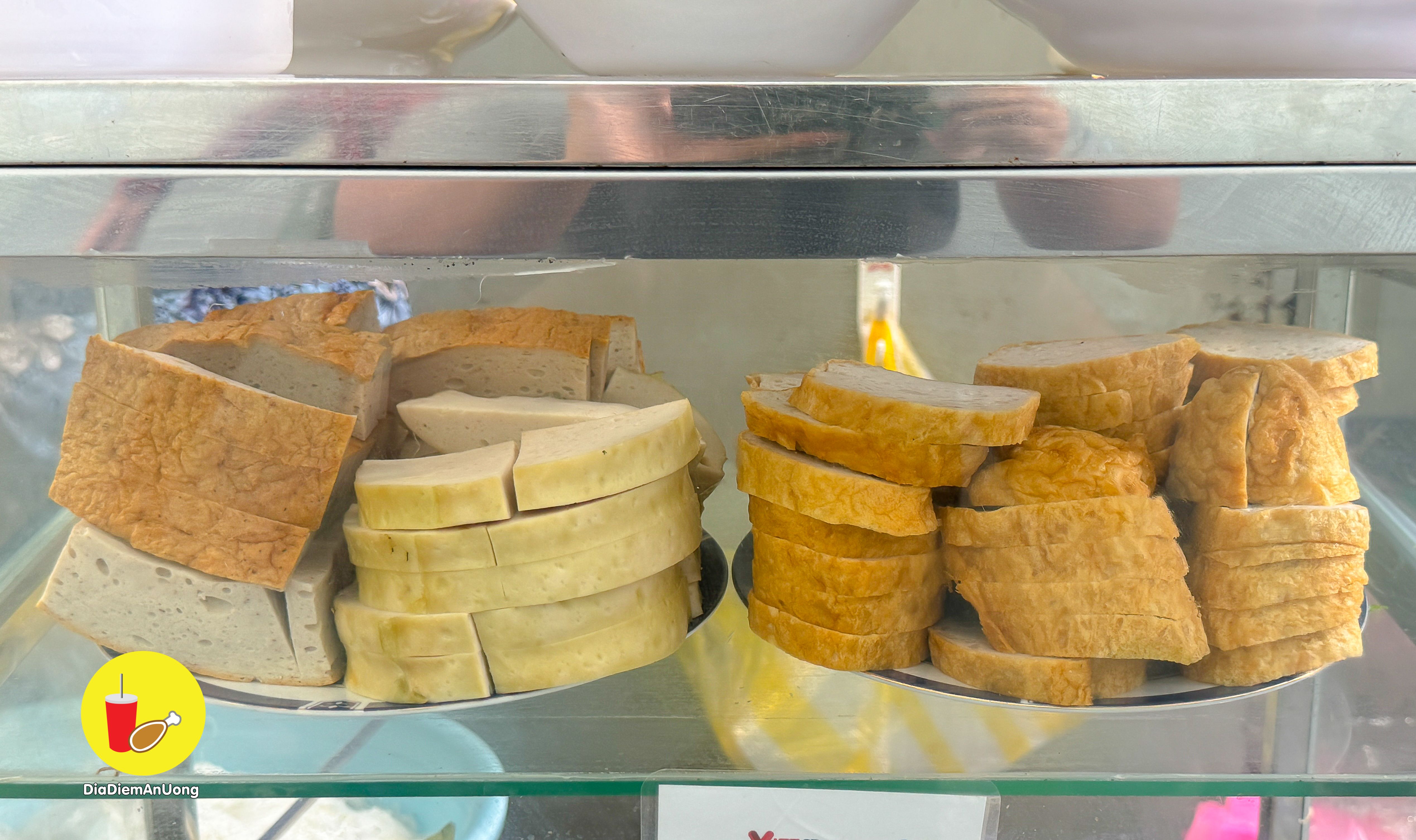 Bún Riêu ở đây ăn cùng các loại chả như Chả Lụa, Chả Quế, Chả Chiên. Đặc điểm chung là rất ngon, ăn cảm giác không hề độn bột xíu nào.