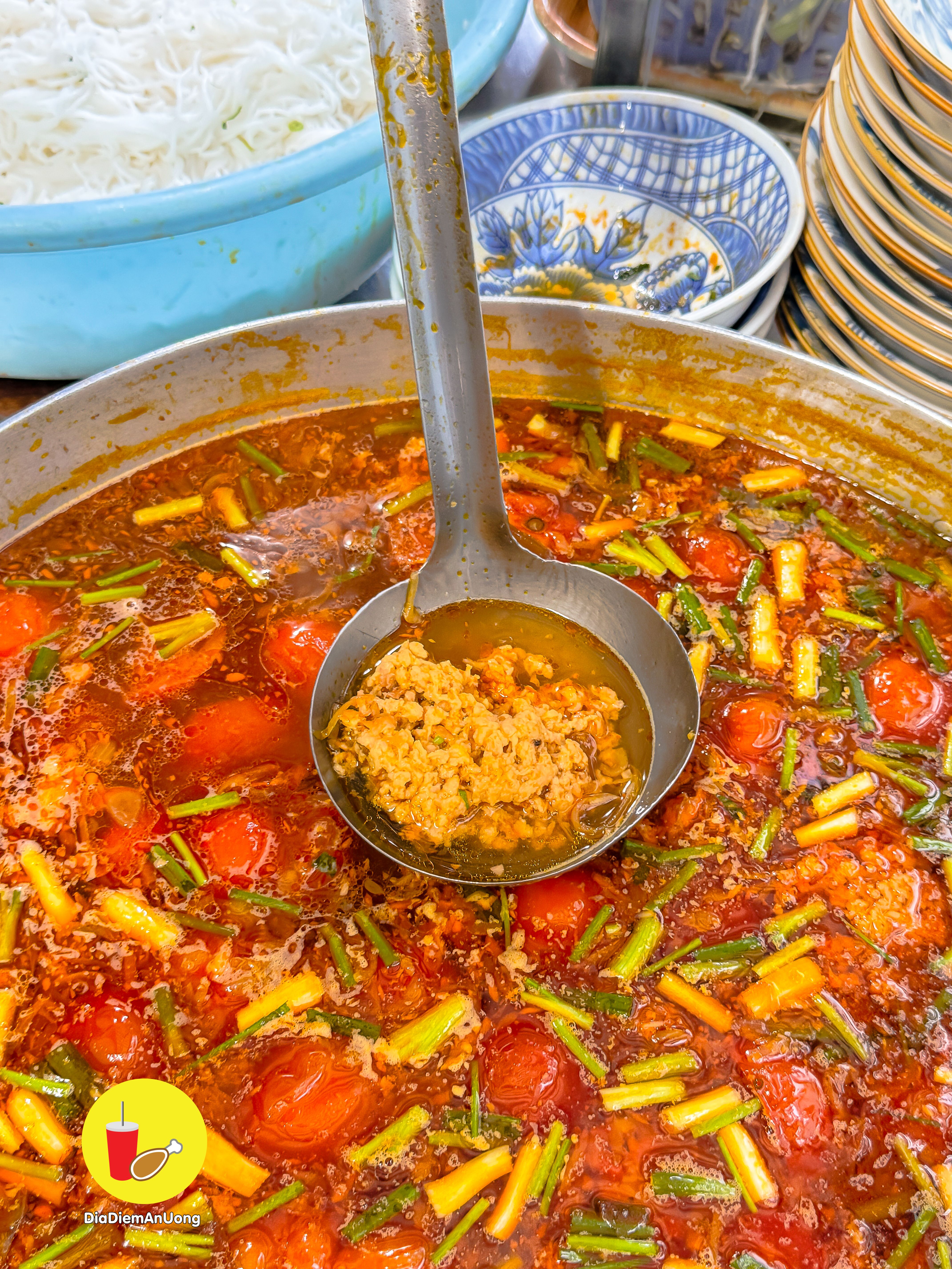 Sở hữu một nồi nước lèo thơm ngon ngào ngạt và hương vị vô cùng độc lạ nhờ vị ngọt của tôm khô, vị chua nhẹ của cà chua và độ giòn tan của tóp mỡ, mỗi tô bún riêu tại đây đều mang đến một trải nghiệm ẩm thực khó quên.