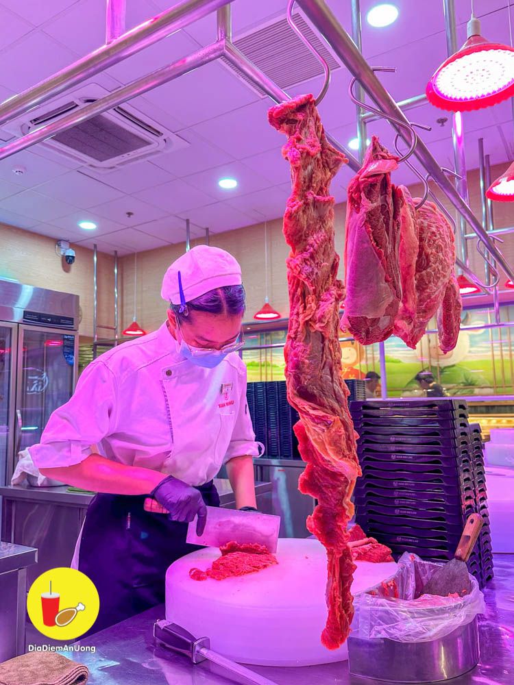 Mặc dù là buffet thịt bò ăn thả ga, nhưng tui thấy chất lượng vẫn đảm bảo. Vẫn là nguồn thịt bì tươi lấy về, cắt thái trong ngày, nói không với bò đông lạnh