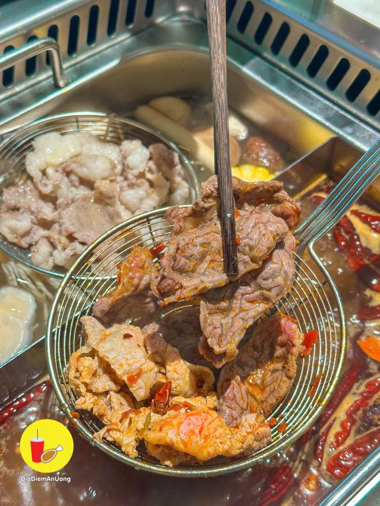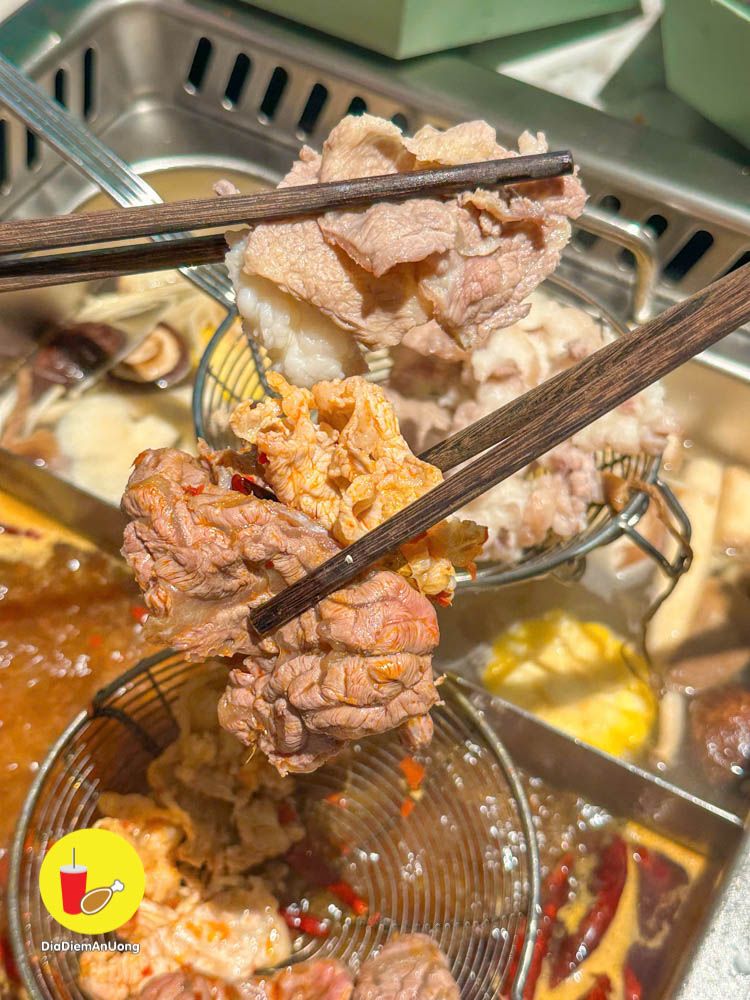 Nhúng với từng loại bò ta nói siêu ngon. Thịt bò thì mềm, không quá dai, thấm trọn vị nước lẩu
