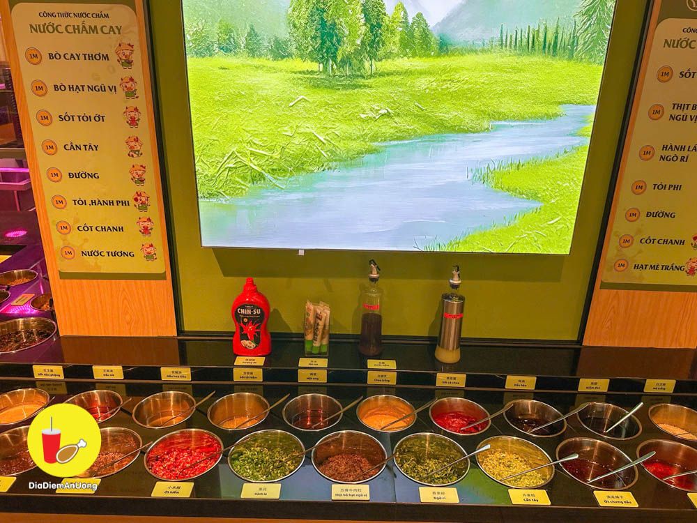 Đã ăn lẩu thì không thể bỏ qua nước chấm đúng không nè !!! Nhìn quầy line nước chấm là hết hồn á, quá nhiều luôn
