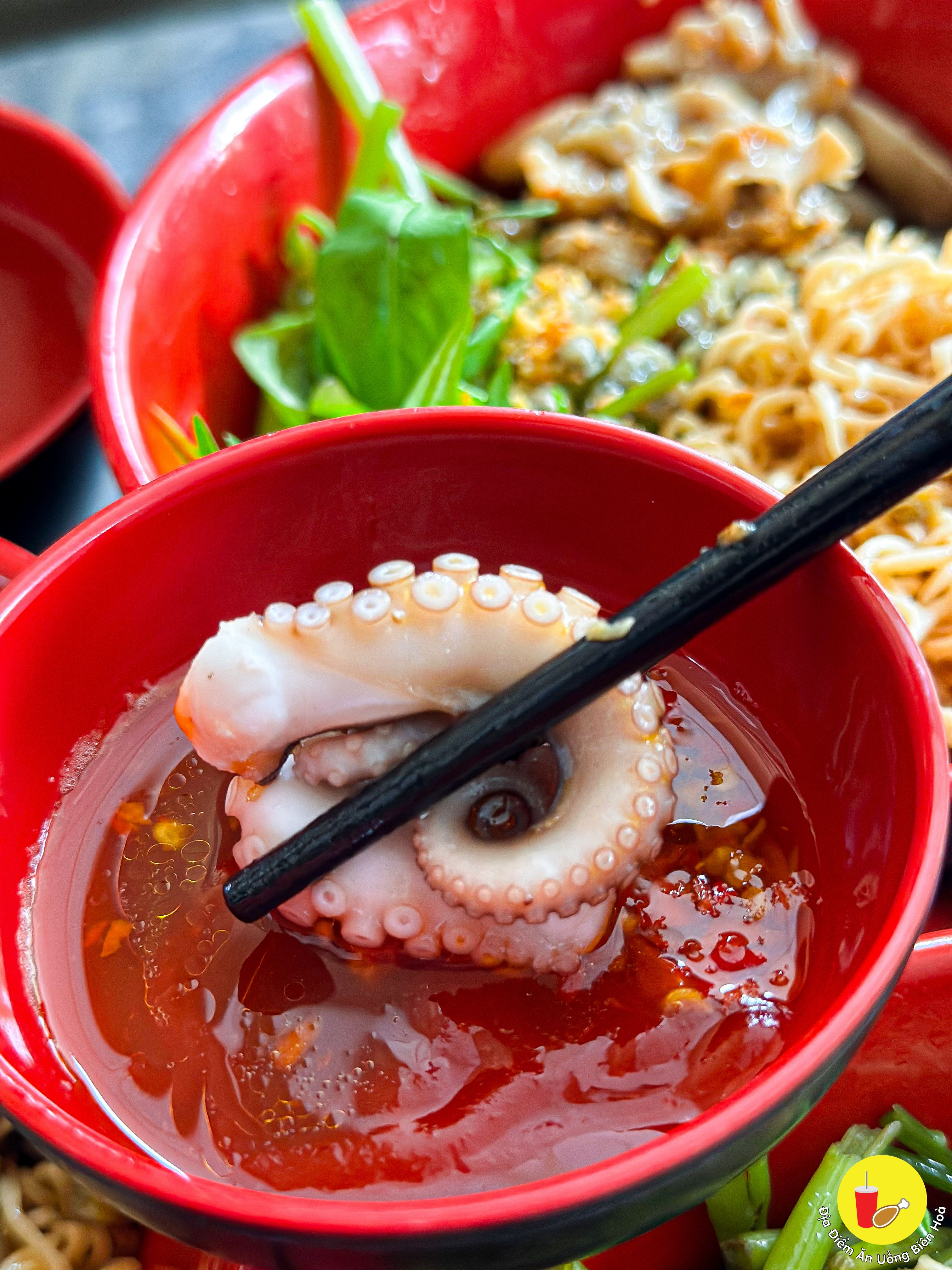 Tô mì ngập hến, thêm ốc móng tay lại còn có Bạch tuộc nữa chứ, bonus chén mắm me là chấm tới công chuyện luôn. Ốc hến bạch tuộc tươi nha, nhai sật sật.
