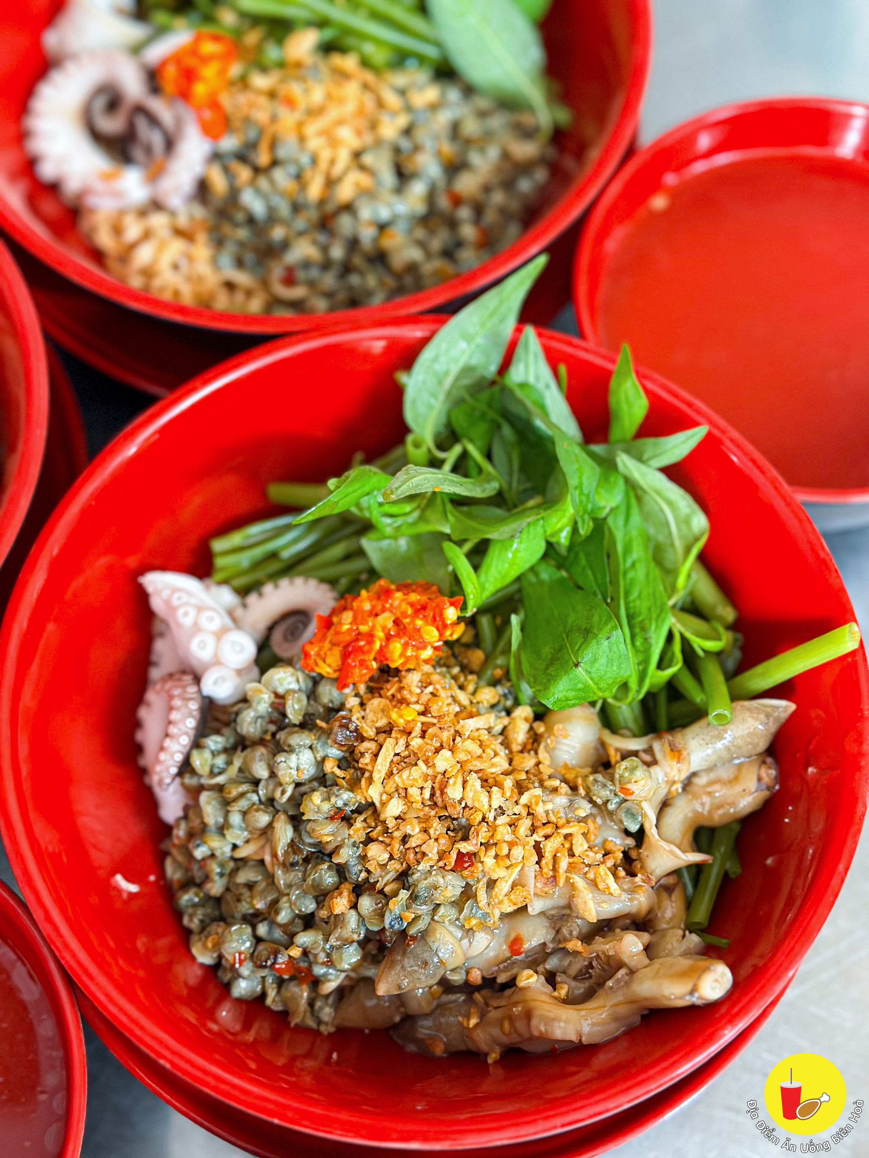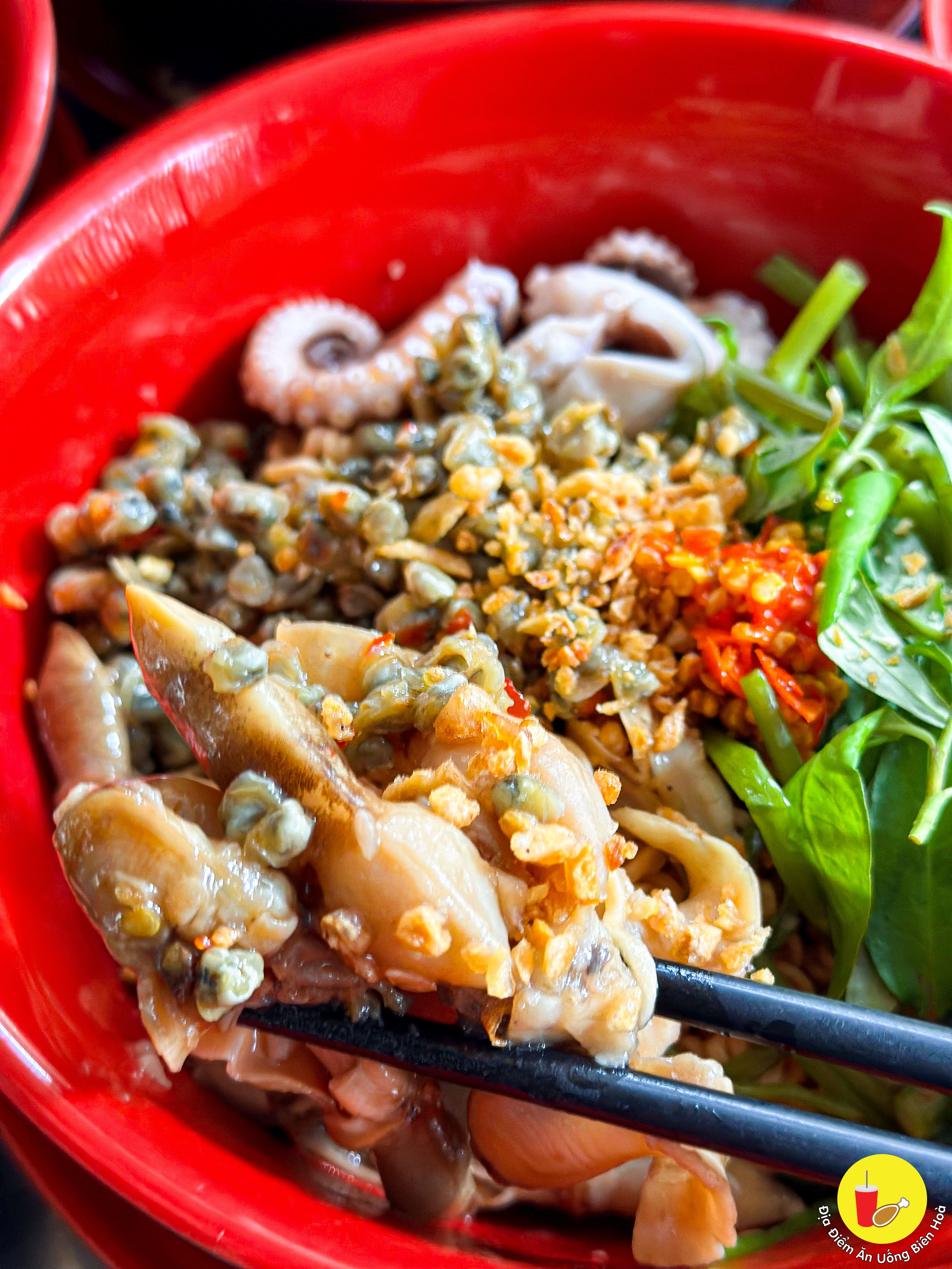 Quán này là quán mì ốc hến đầu tiên của Biên Hòa với nước lèo chua dễ ăn, thêm tí sa tế cay cay, bạch tuộc, hến, ốc cũng tươi và giòn, mì thì vừa chín tới ăn kèm rau muống luộc và rau răm, thêm sốt me, tương ớt là hết sẩy con bà 7