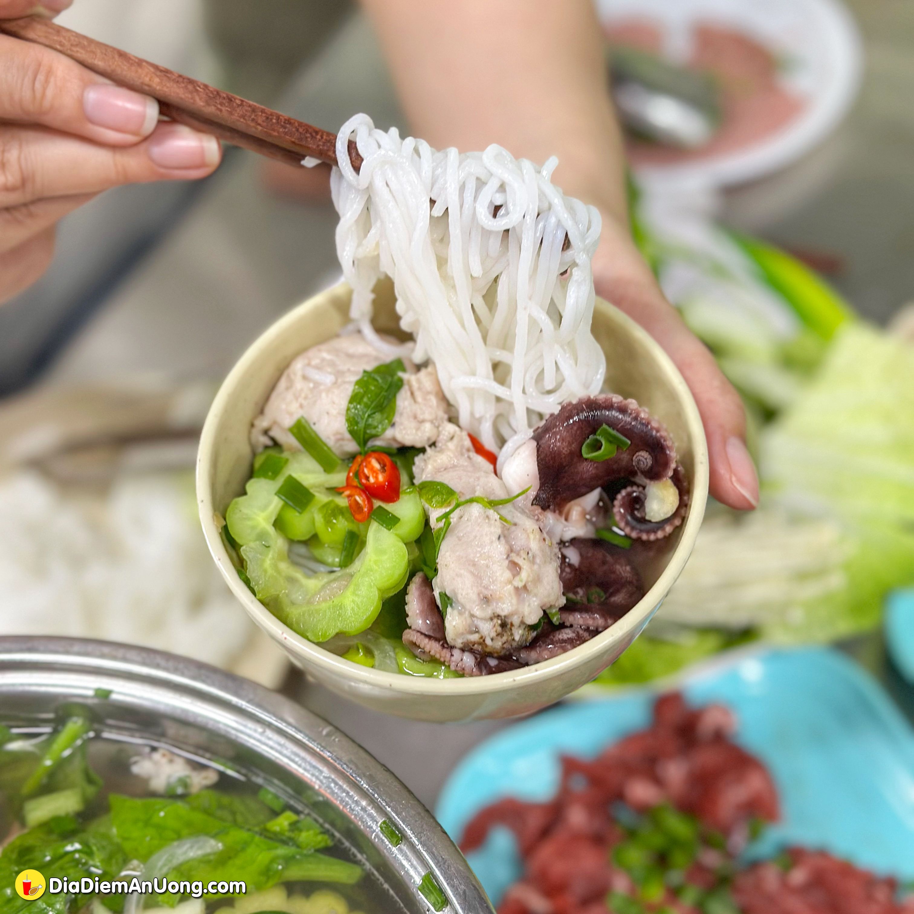Đặc biệt lẩu ở đây cô có cho thêm rau bồ ngót vào ăn cùng cũng bắt vị lắm. 👍
